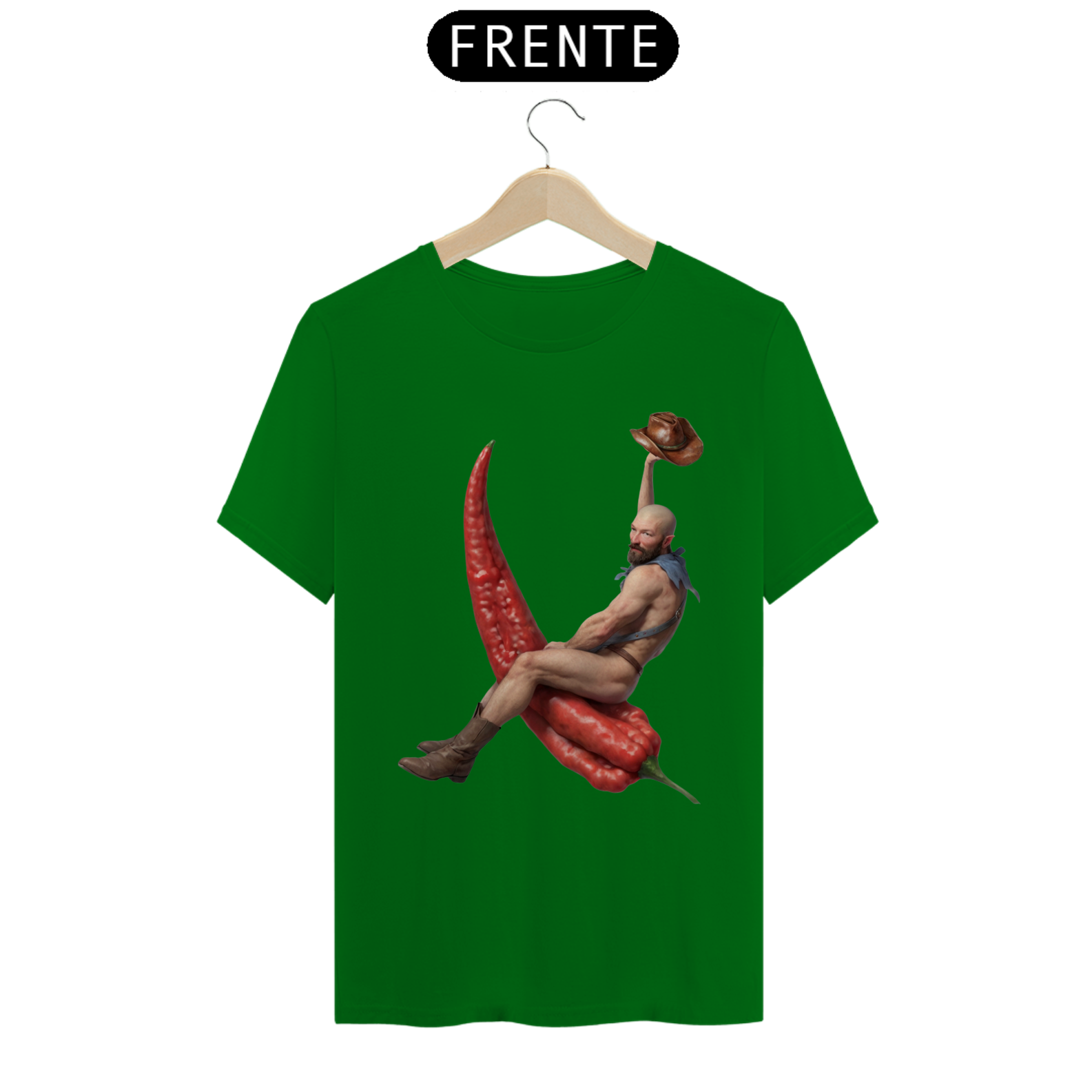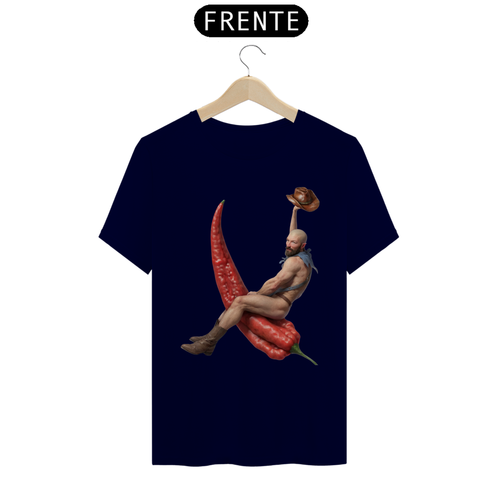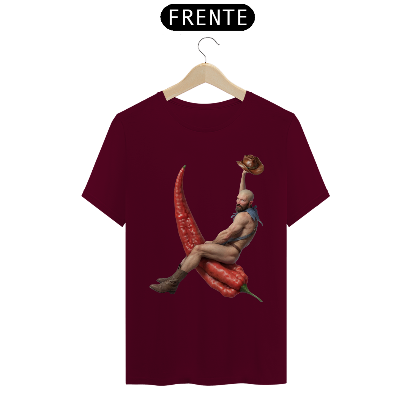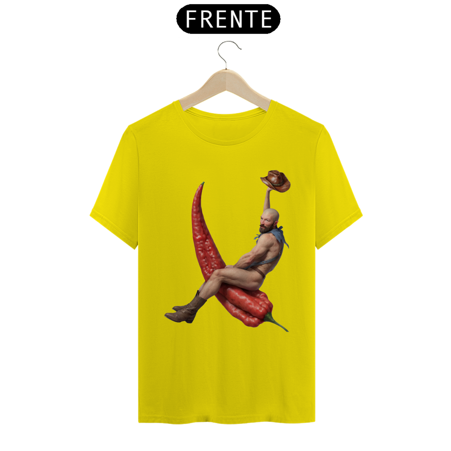 Esta estampa de camiseta apresenta um design único e ousado, mostrando um cowboy barbado montando uma pimenta chili em um estilo divertido e cheio de personalidade. Vestindo apenas botas e um lenço no pescoço, o cowboy exala confiança e charme, enquanto domina sua incomum montaria. Ideal para aqueles que apreciam moda com uma pitada de humor e irreverência, essa estampa é uma celebração da individualidade e da diversidade dentro da comunidade Gay Bear. Com sua combinação única de elementos ocidentais e um toque picante, essa camiseta certamente se destacará em qualquer ocasião.