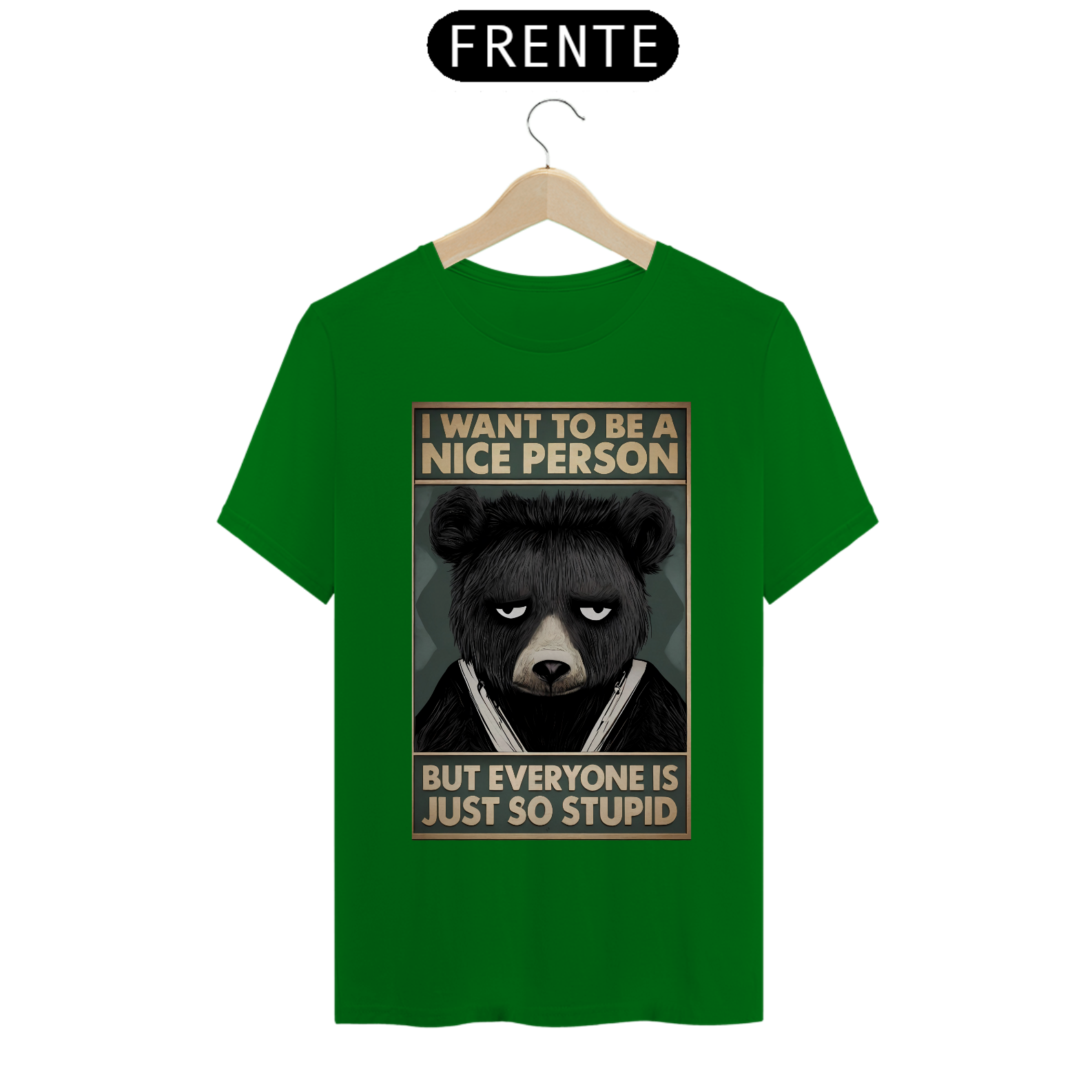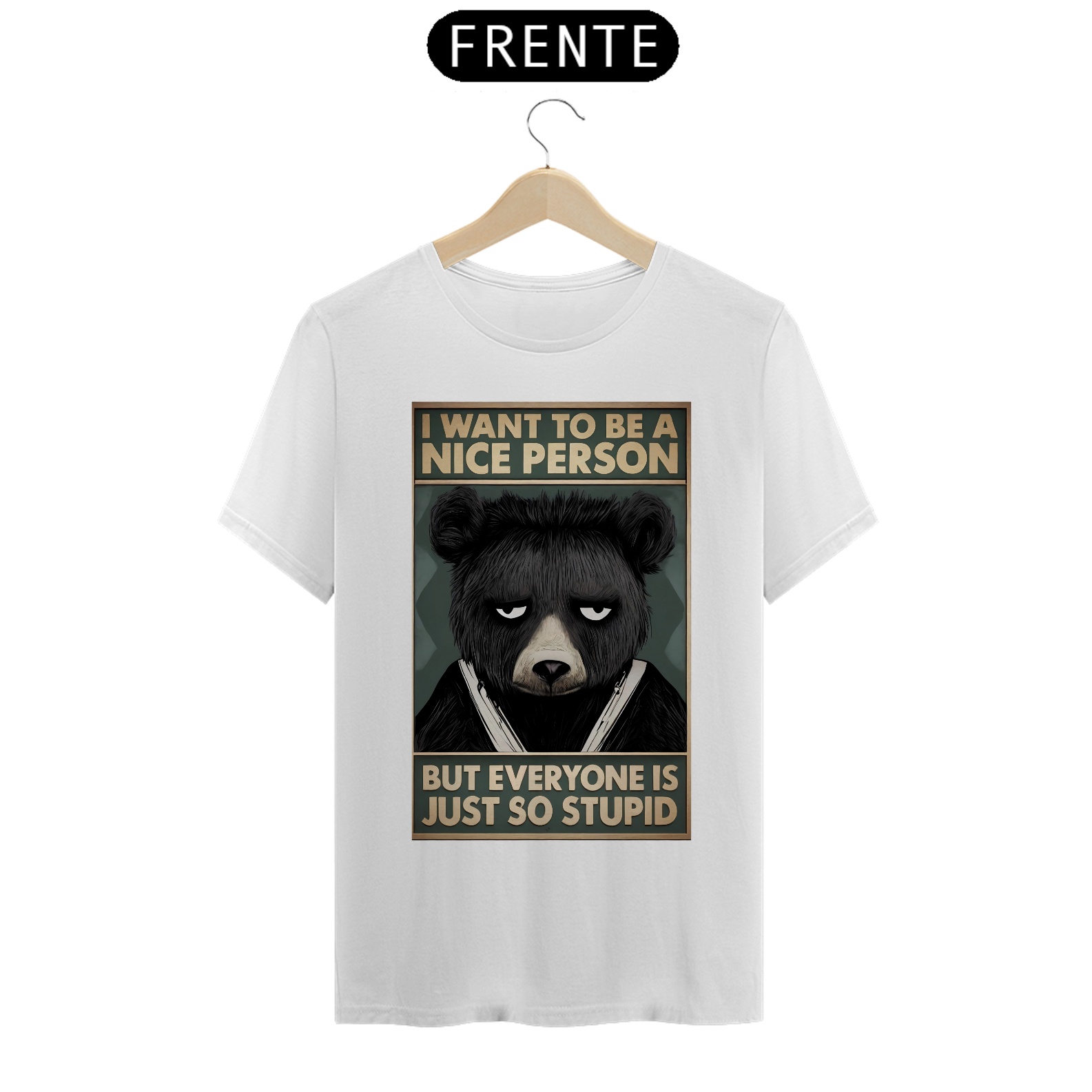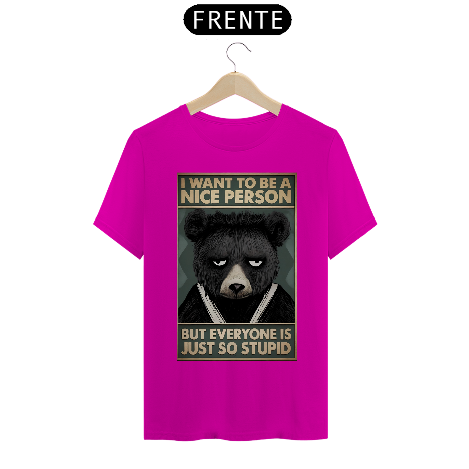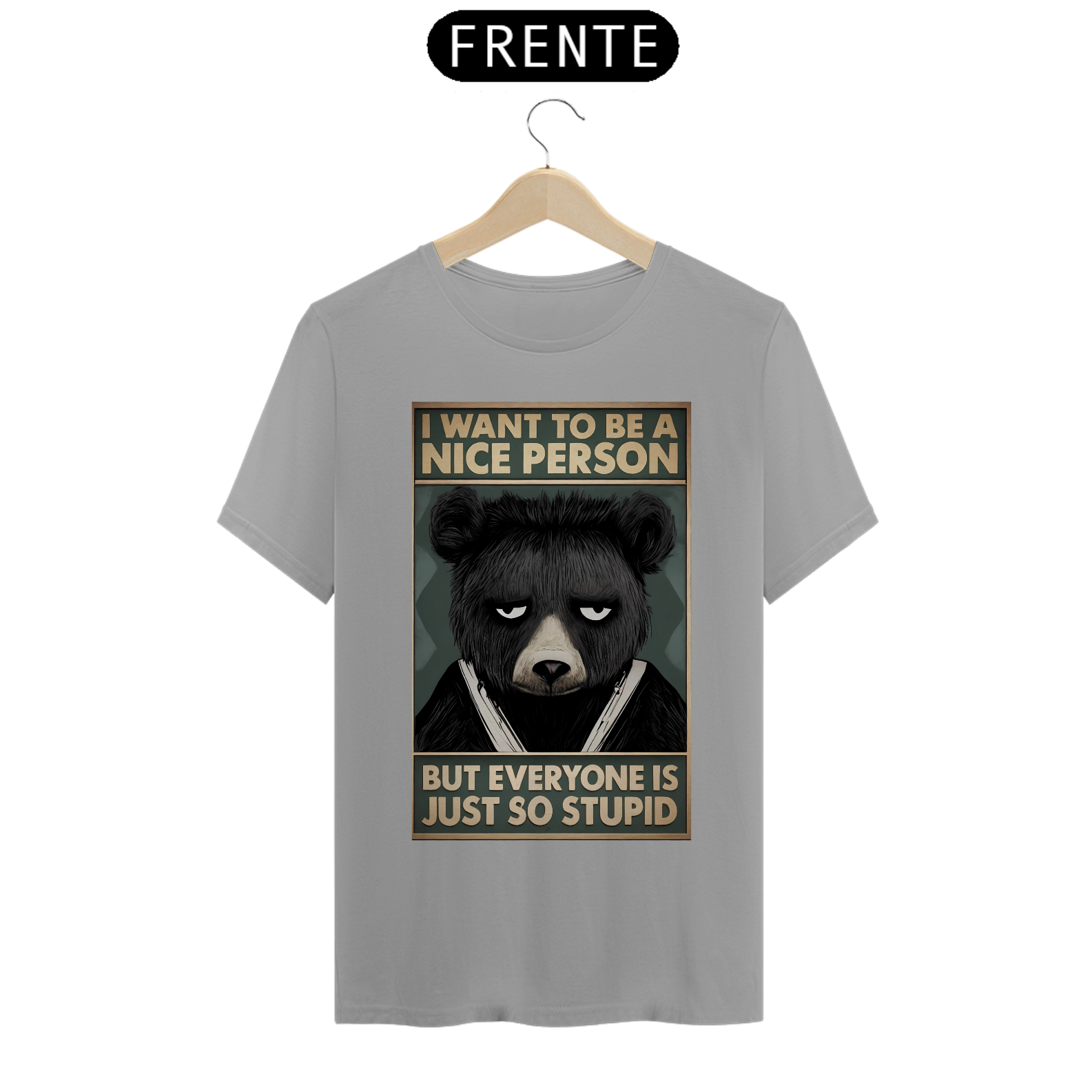 A estampa "Nice Bear" combina humor e atitude, sendo ideal para a comunidade Gay Bear. Com um urso de aparência mal-humorada e a frase "I want to be a nice person, but everyone is just so stupid", essa camiseta traz um toque de sarcasmo que muitos vão achar hilário e relacionável. O design capta perfeitamente aquela sensação de frustração com o mundo ao redor, mas de uma maneira divertida e bem-humorada. Esta estampa é perfeita para quem tem um senso de humor afiado e gosta de expressar suas opiniões de maneira criativa. A camiseta "Nice Bear" é ideal para eventos, encontros sociais ou simplesmente para o dia a dia, proporcionando um estilo único e descontraído. Com este design, você pode mostrar sua personalidade e ainda arrancar risadas de quem está ao seu redor.