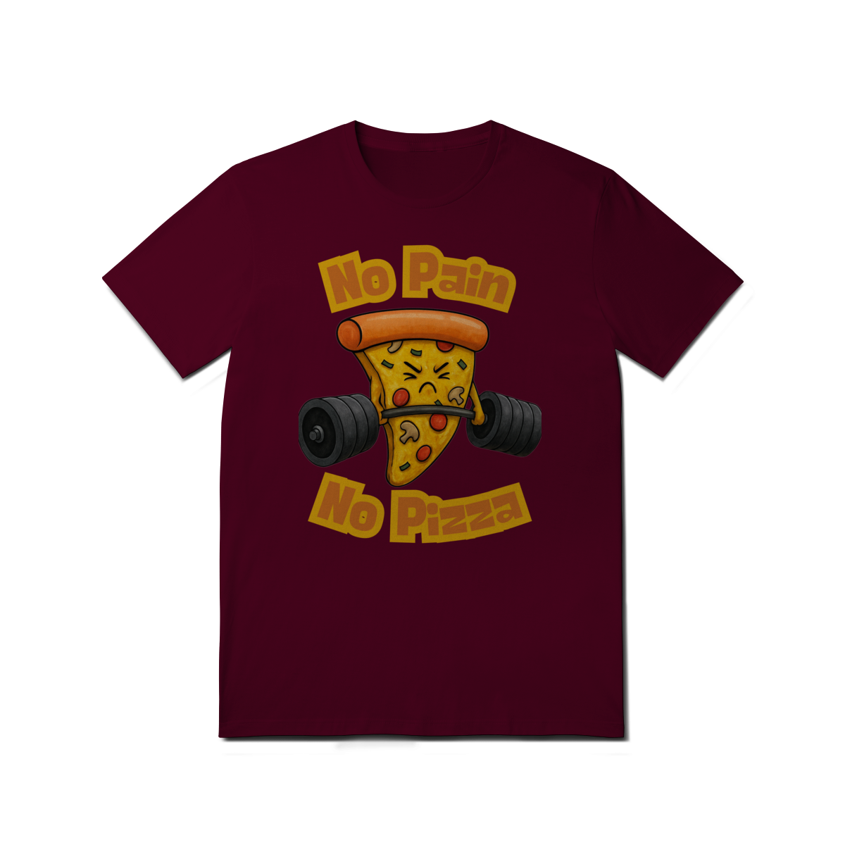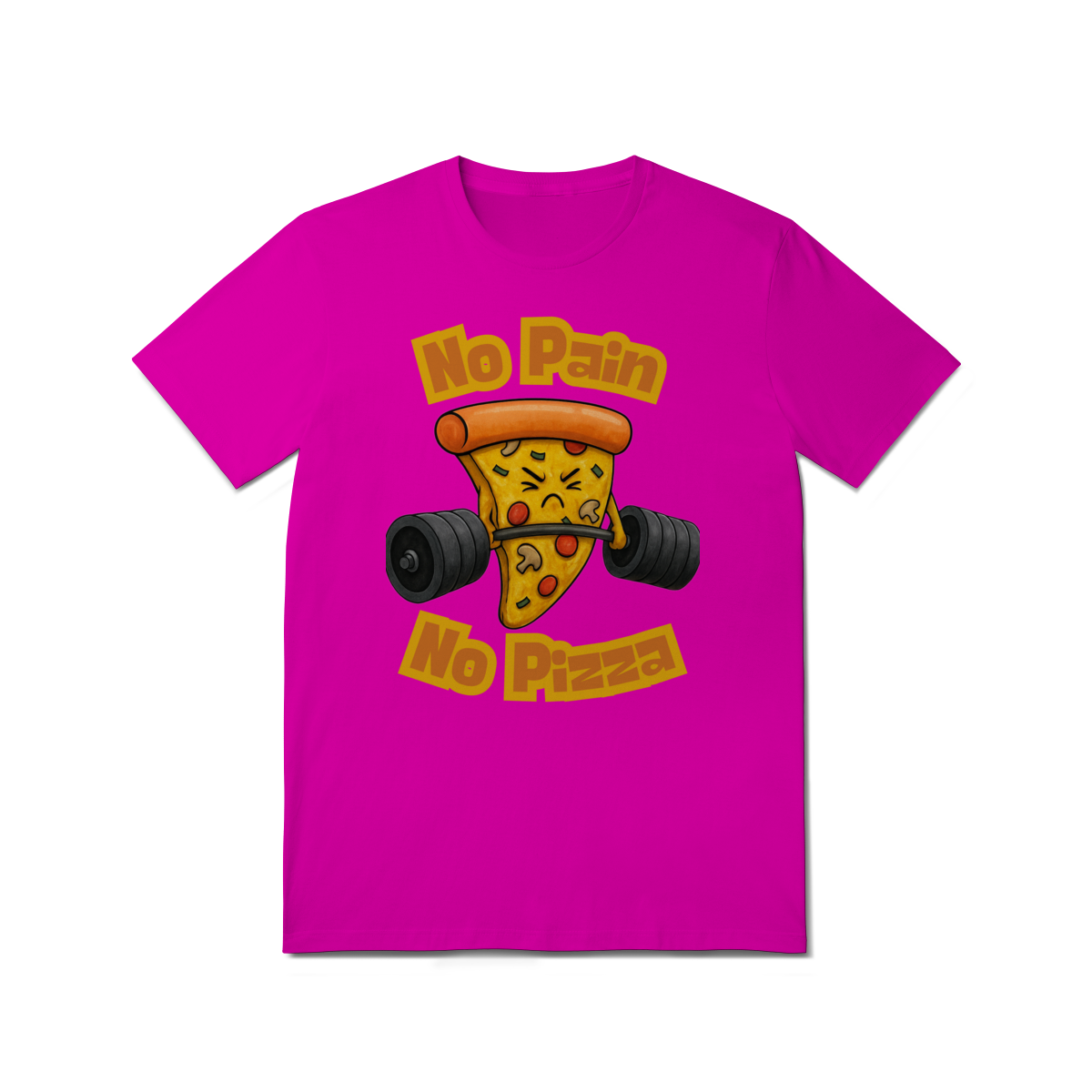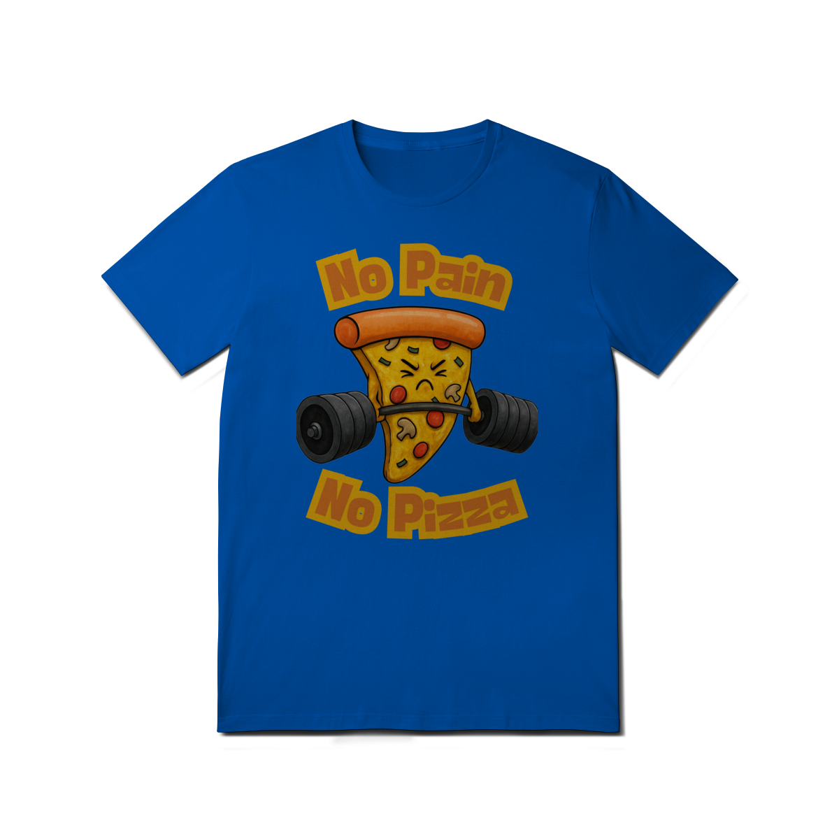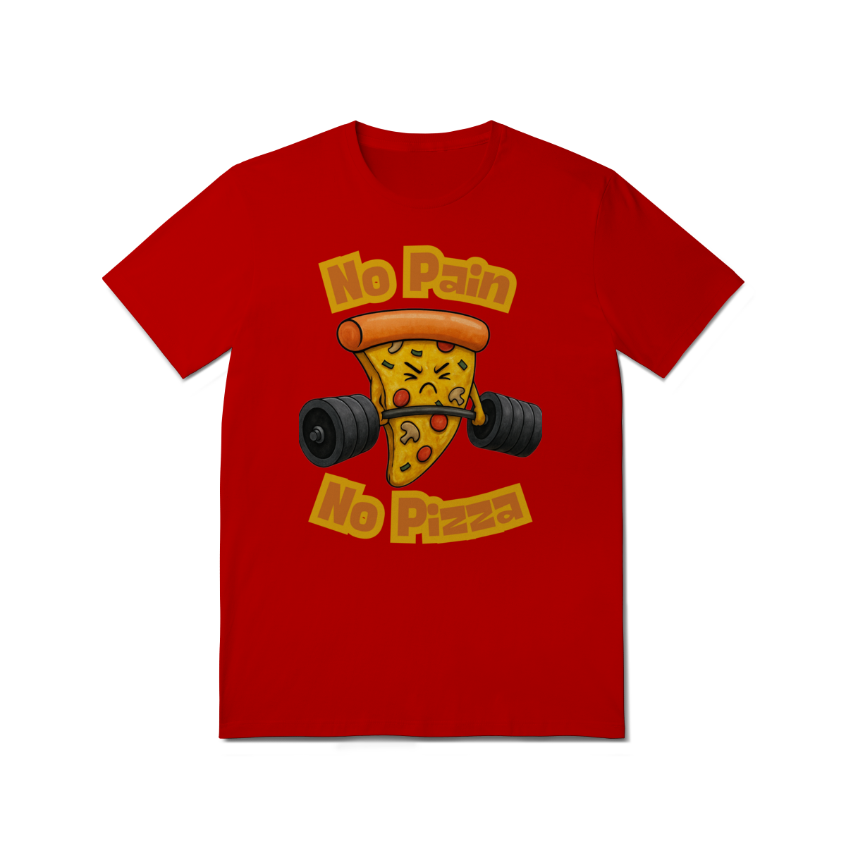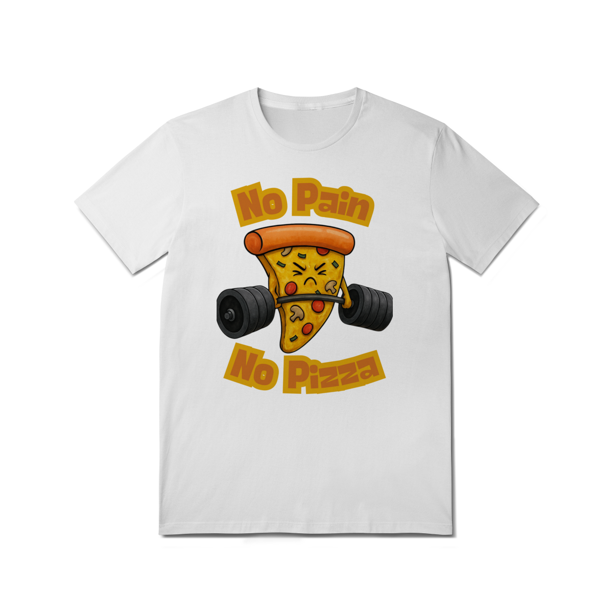 A estampa “No Pain No Pizza” traz uma fatia de pizza determinada levantando peso, acompanhada da frase inspiradora “No Pain No Pizza”. É uma brincadeira divertida com o lema fitness “No Pain No Gain”, perfeita para os ursos que curtem academia, bom humor e uma boa fatia depois do treino. A arte mistura fofura e força, ideal para quem leva o treino a sério, mas sem perder o sabor da vida.