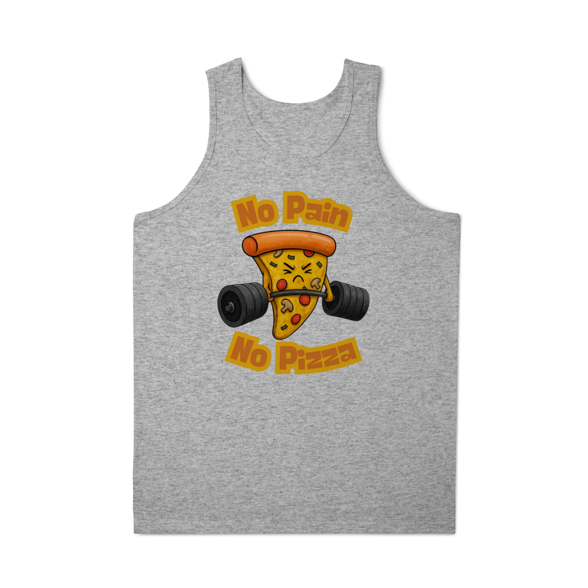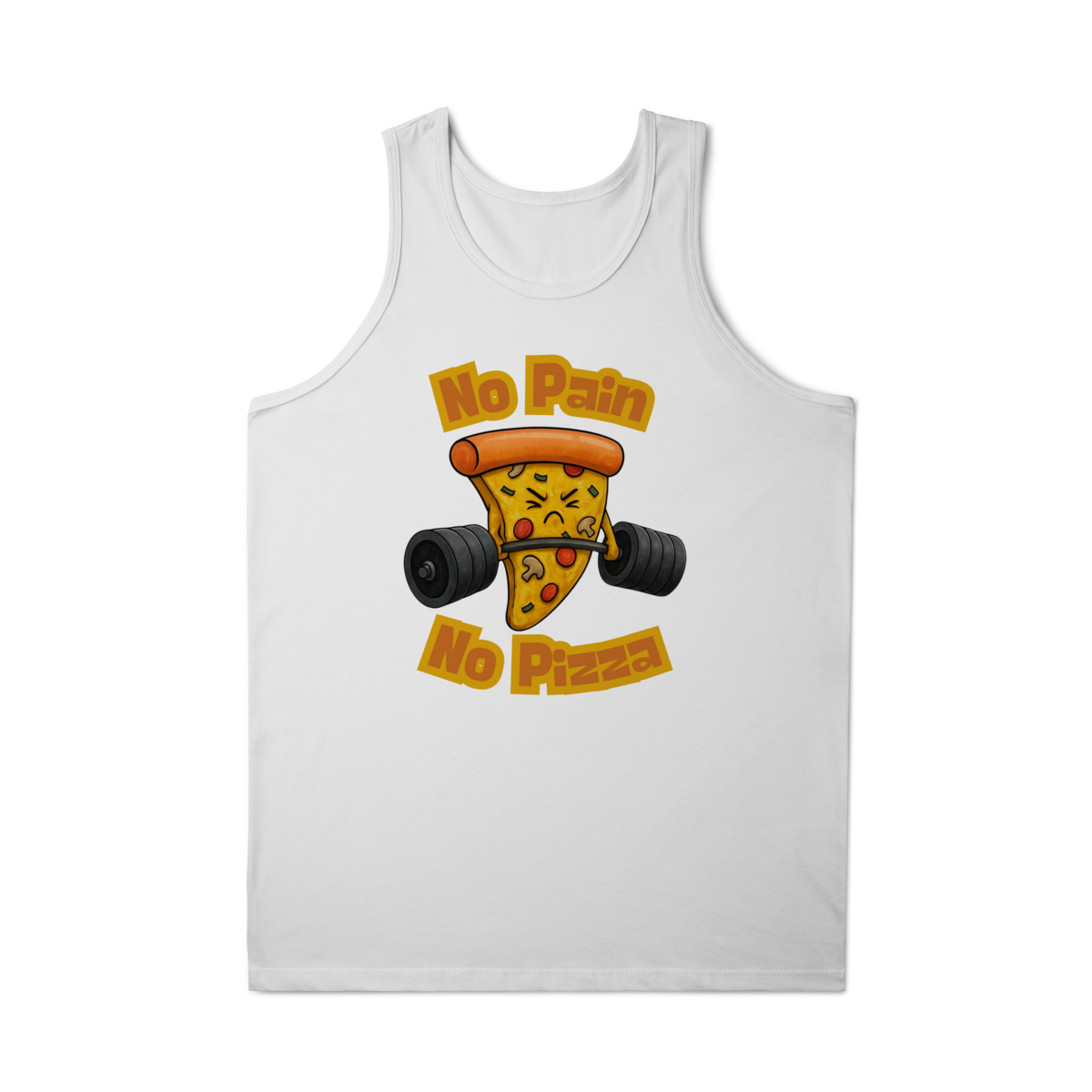 A estampa “No Pain No Pizza” traz uma fatia de pizza determinada levantando peso, acompanhada da frase inspiradora “No Pain No Pizza”. É uma brincadeira divertida com o lema fitness “No Pain No Gain”, perfeita para os ursos que curtem academia, bom humor e uma boa fatia depois do treino. A arte mistura fofura e força, ideal para quem leva o treino a sério, mas sem perder o sabor da vida.