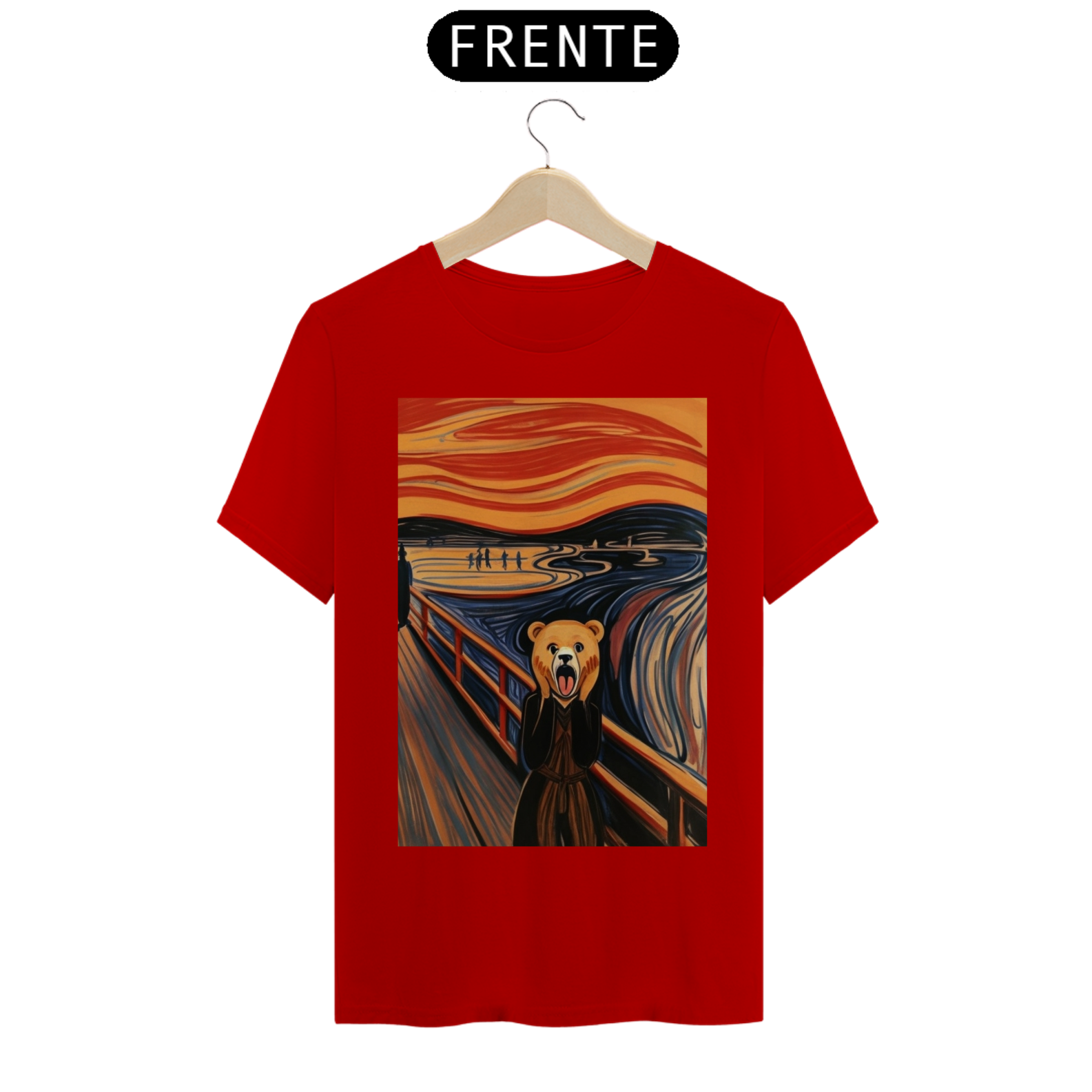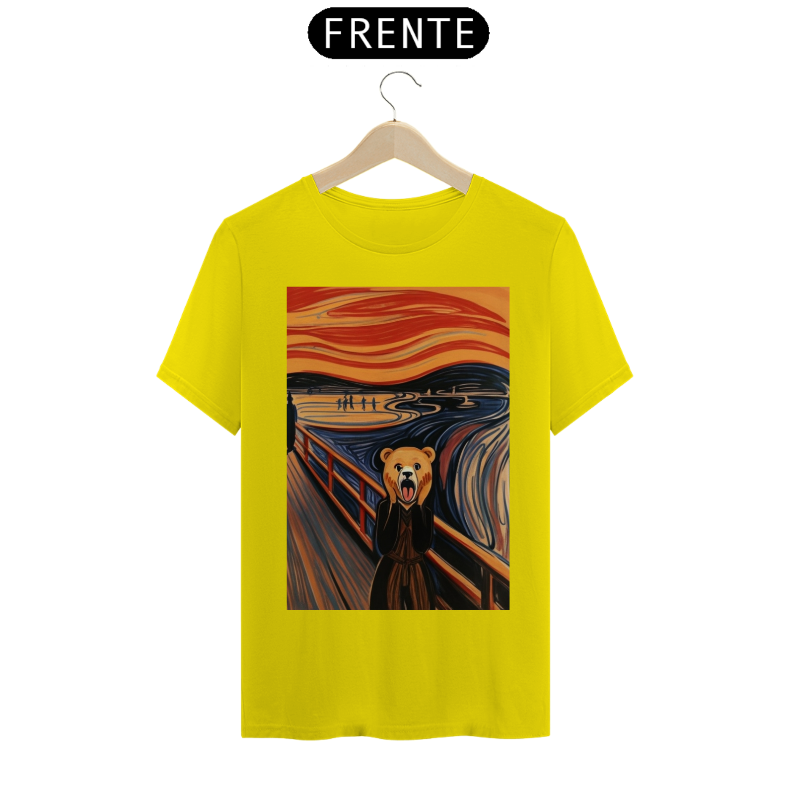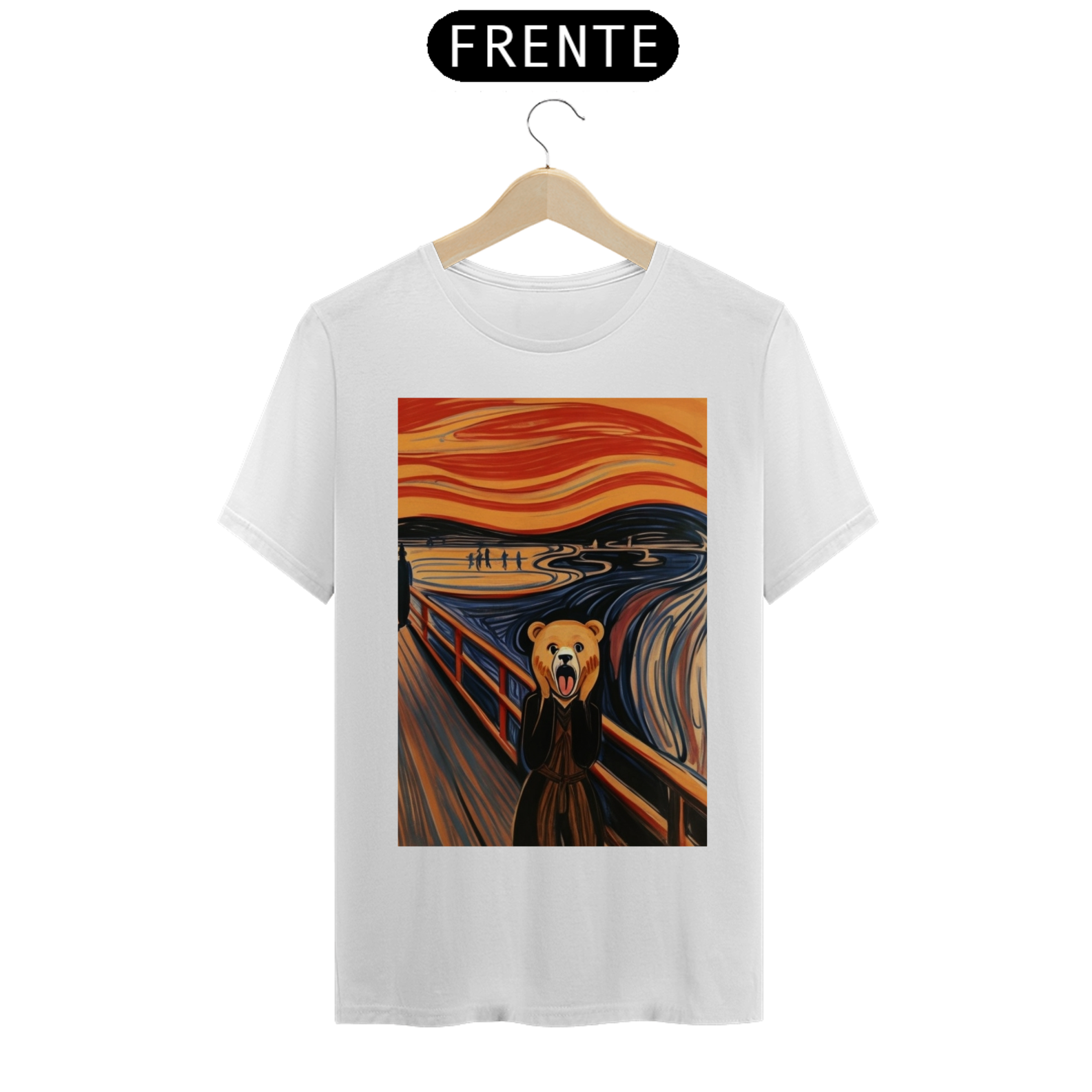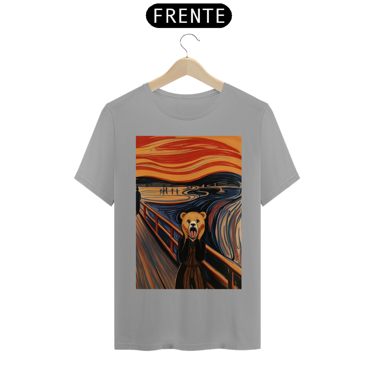 Apresentamos com empolgação nossa camiseta exclusiva que une a icônica obra de arte "O Grito" com a força e o orgulho da comunidade Gaybear. A estampa retrata a famosa cena de angústia substituindo o personagem central por um urso, voltada especialmente para a comunidade gay bear.
