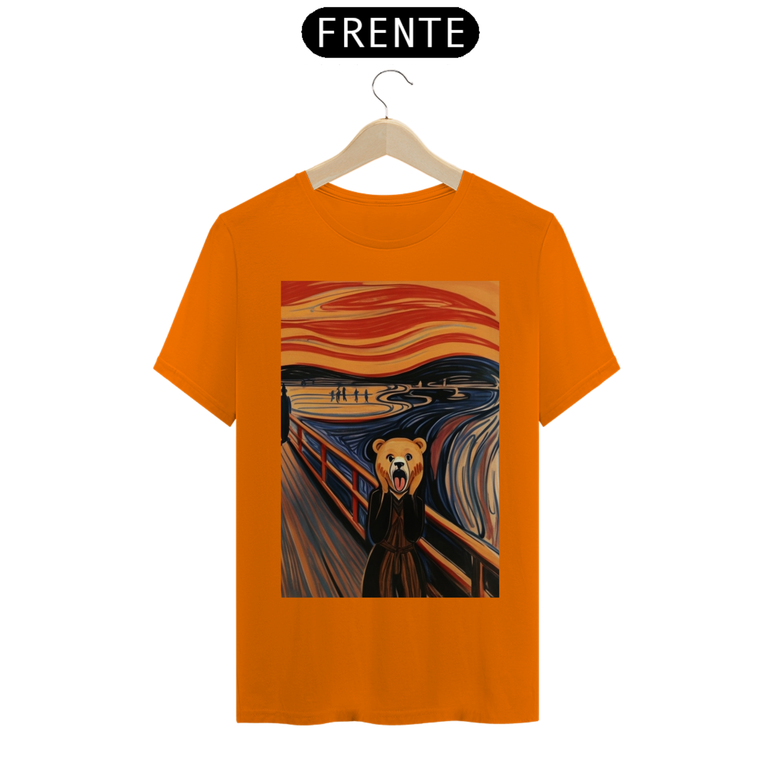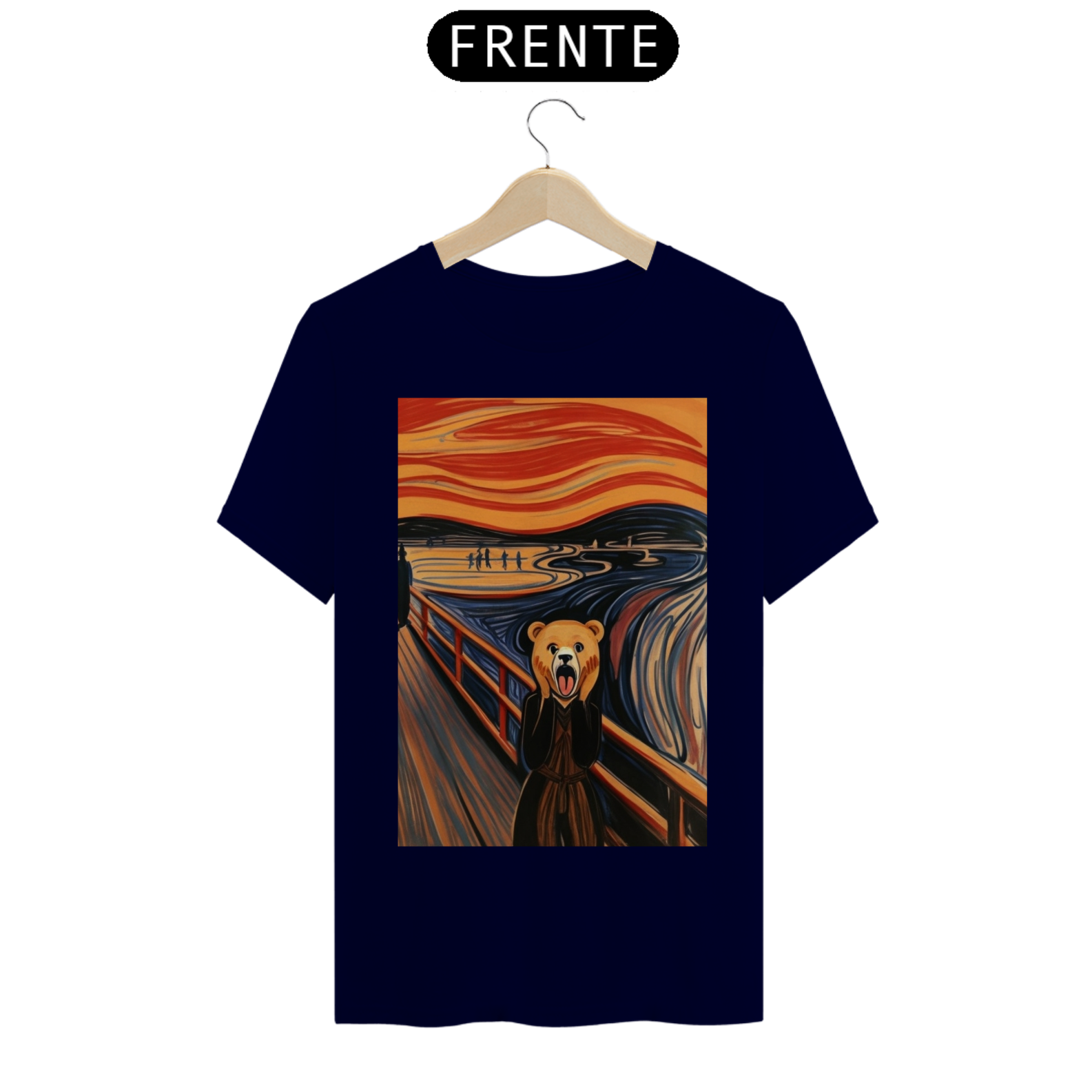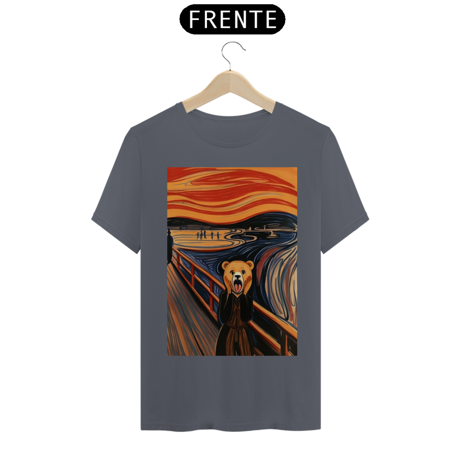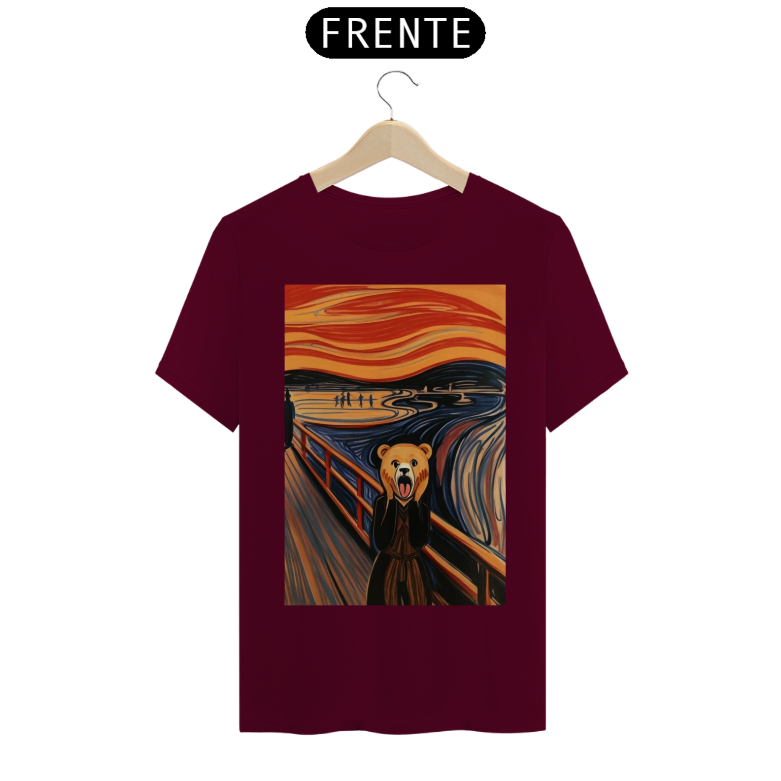 Apresentamos com empolgação nossa camiseta exclusiva que une a icônica obra de arte "O Grito" com a força e o orgulho da comunidade Gaybear. A estampa retrata a famosa cena de angústia substituindo o personagem central por um urso, voltada especialmente para a comunidade gay bear.