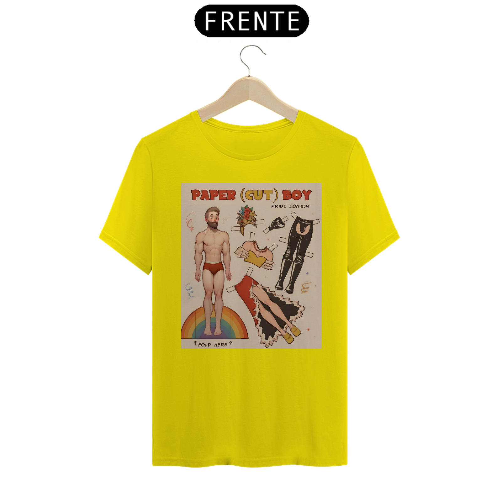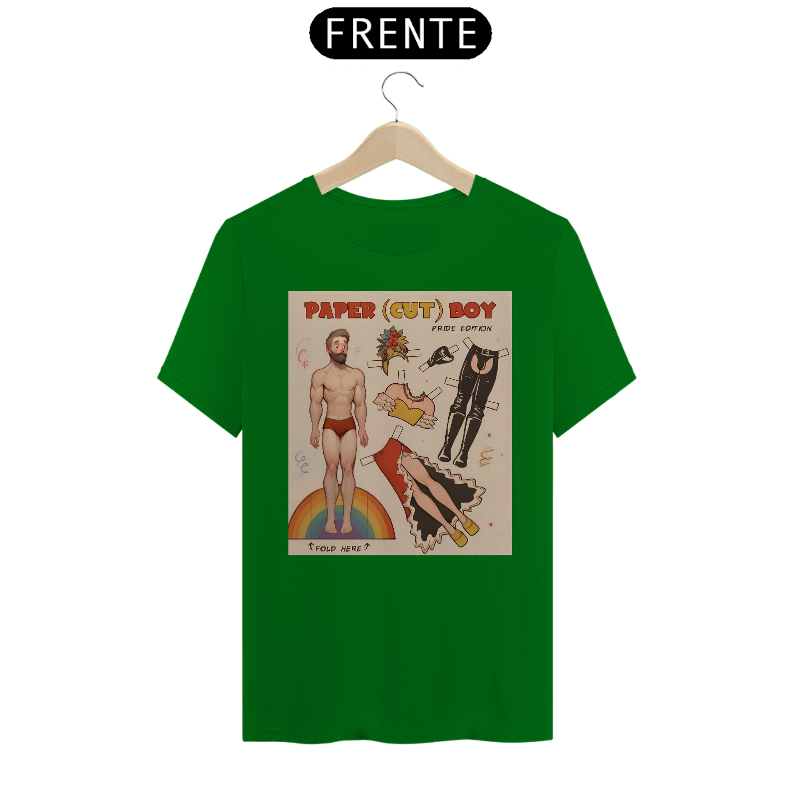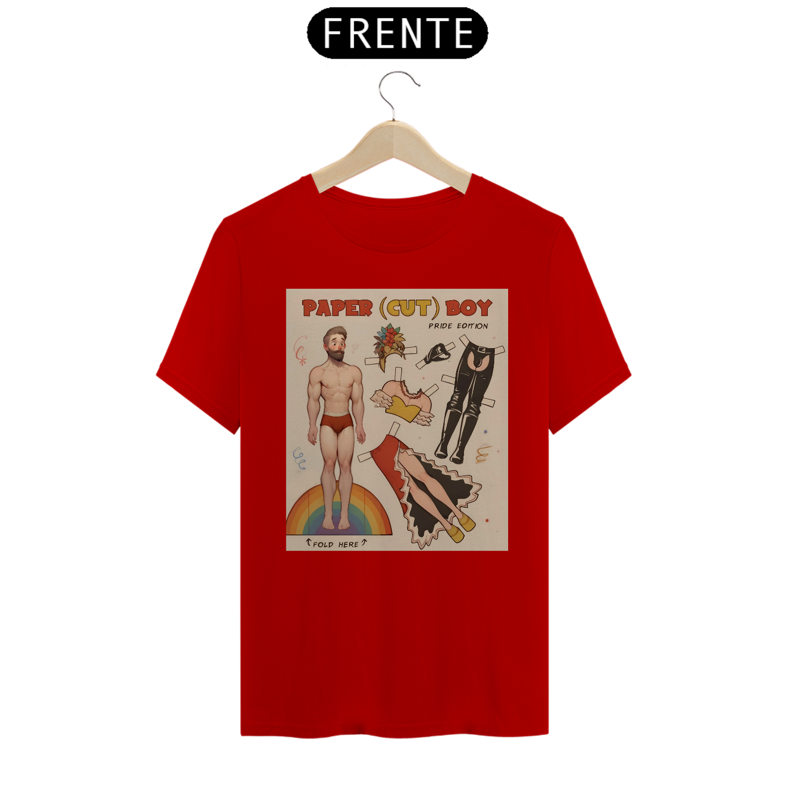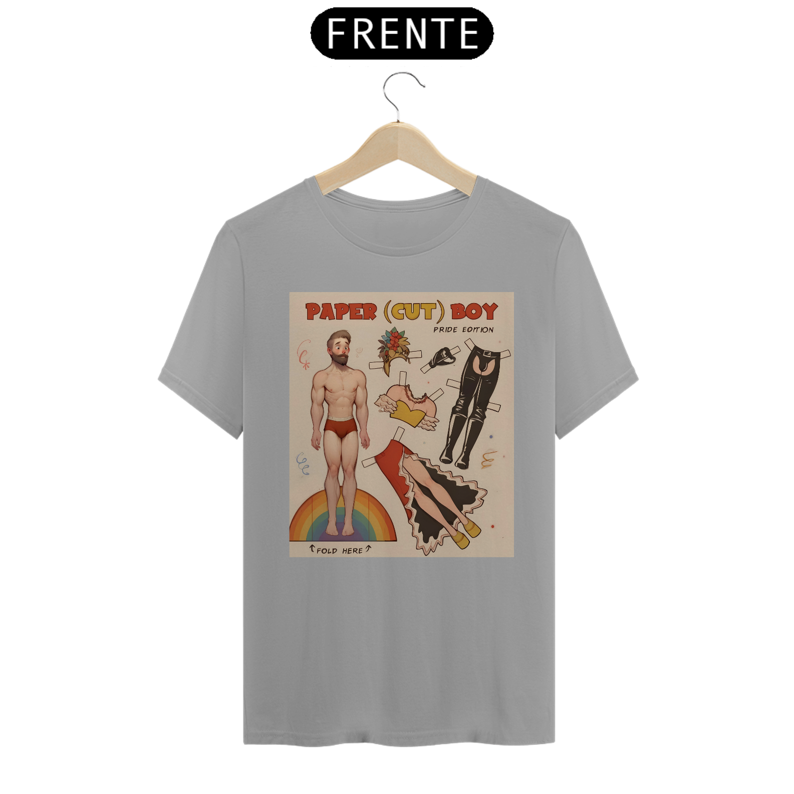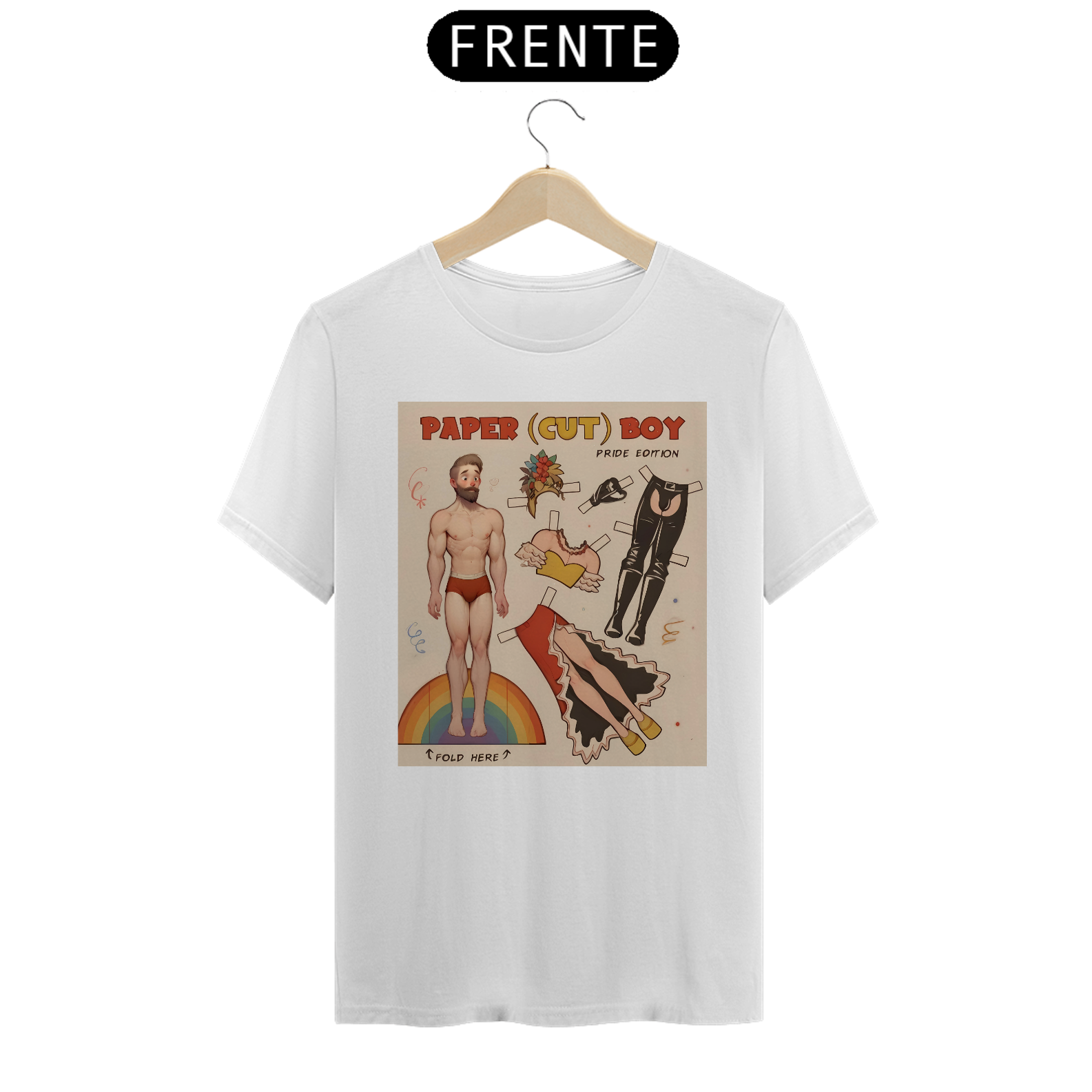 A estampa de camiseta "Paper Boy" é uma celebração vibrante e inclusiva para a comunidade Gay Bear. Inspirada nos clássicos bonecos de papel, esta arte mostra um homem musculoso com várias opções de roupas e acessórios que vão desde um look festivo com saia e flores até um conjunto de couro ousado. A base da estampa é um arco-íris, símbolo universal do orgulho LGBTQ+, destacando a importância da diversidade e da autoexpressão. Ideal para paradas de orgulho, festas temáticas ou uso diário, esta camiseta combina humor e empoderamento. Com esta estampa, você exibe sua identidade com orgulho e celebra a liberdade de ser quem você é dentro da comunidade.