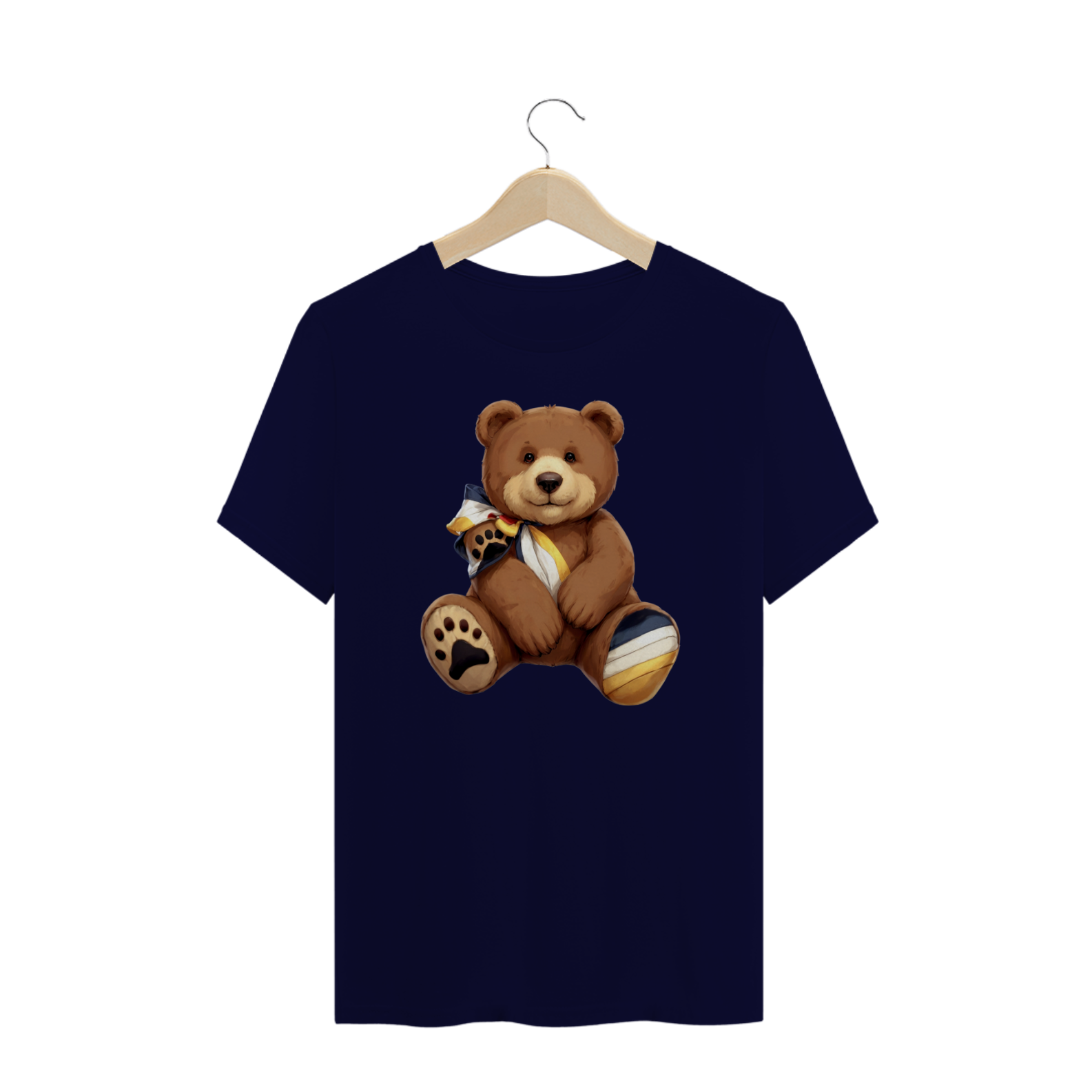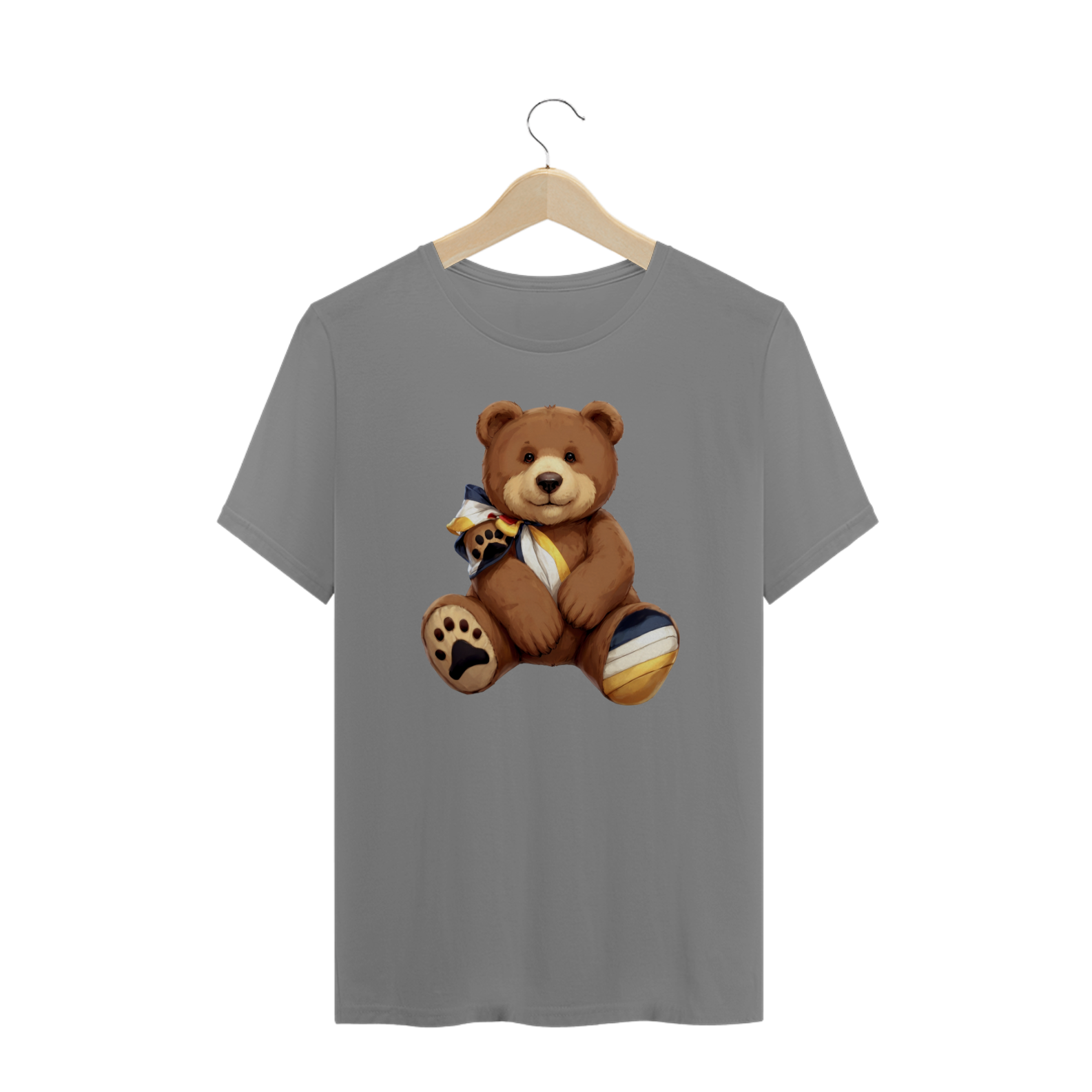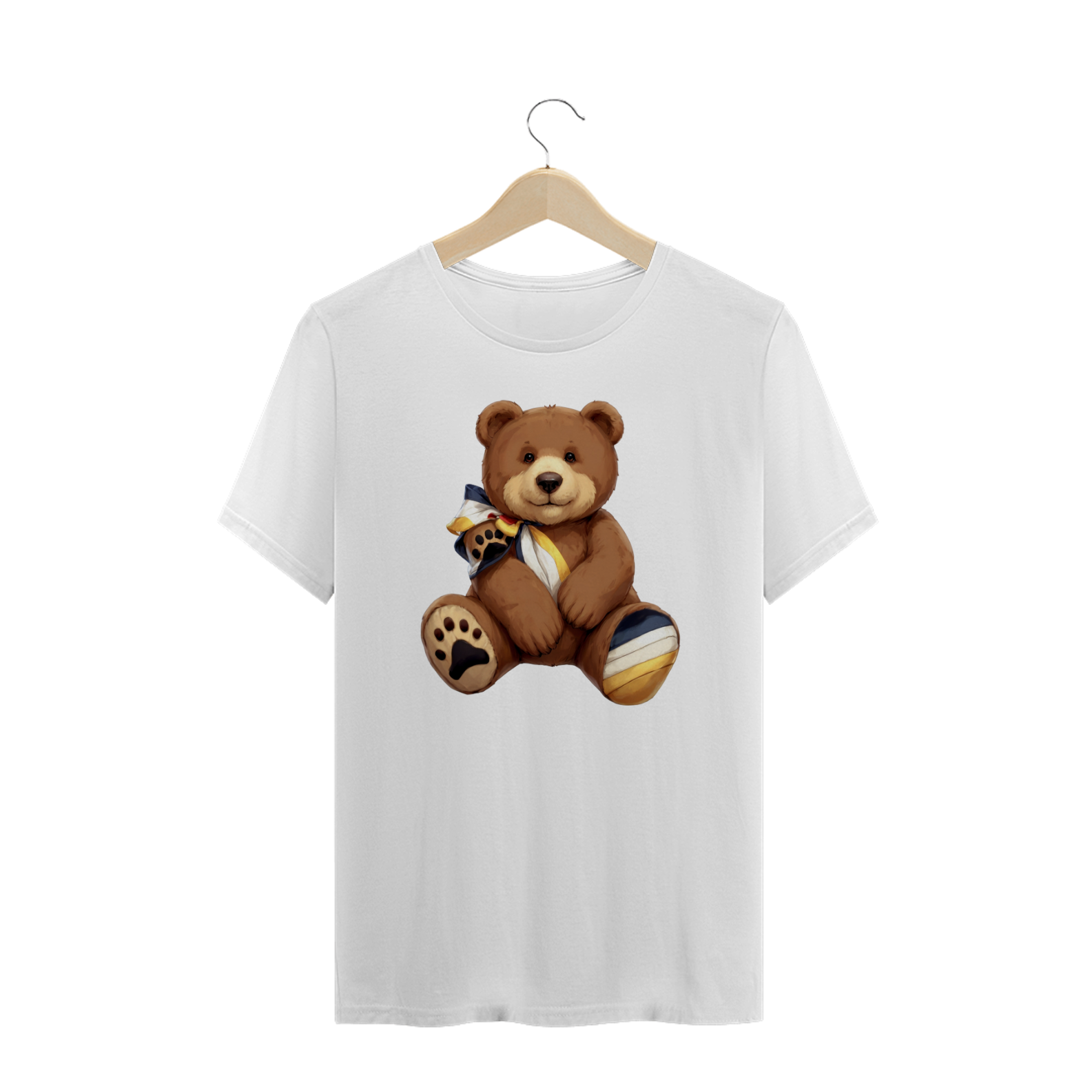 Esta camiseta encantadora apresenta um adorável urso de pelúcia marrom, adornado com um laço nas cores vibrantes da bandeira da comunidade Gay Bear em seu pescoço. Uma impressão de pata de urso colorida com as mesmas tonalidades adorna um de seus pés, simbolizando o orgulho e a união dentro da comunidade. Perfeita para aqueles que desejam expressar seu apoio e pertencimento, esta estampa é uma celebração da diversidade e da camaradagem entre os ursos LGBTQ+.