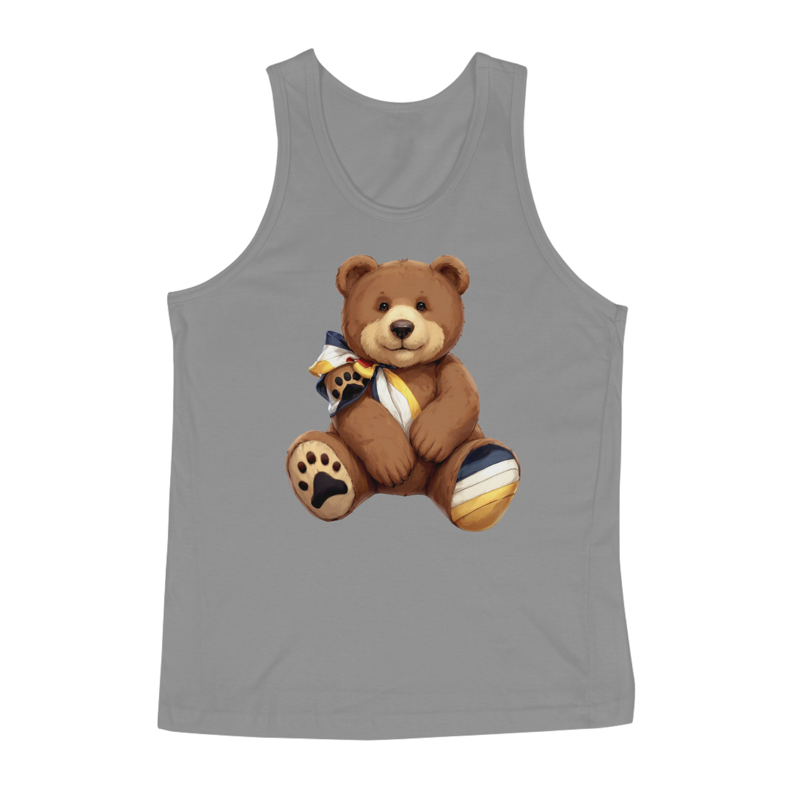 Esta camiseta encantadora apresenta um adorável urso de pelúcia marrom, adornado com um laço nas cores vibrantes da bandeira da comunidade Gay Bear em seu pescoço. Uma impressão de pata de urso colorida com as mesmas tonalidades adorna um de seus pés, simbolizando o orgulho e a união dentro da comunidade. Perfeita para aqueles que desejam expressar seu apoio e pertencimento, esta estampa é uma celebração da diversidade e da camaradagem entre os ursos LGBTQ+.