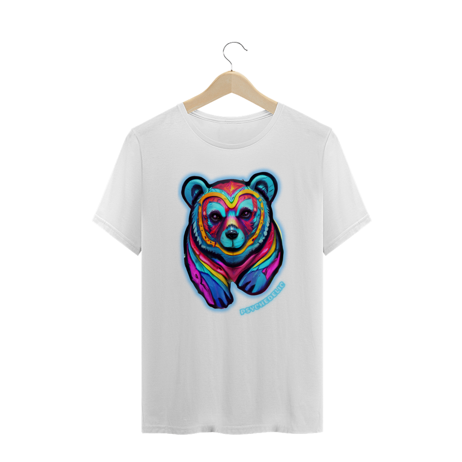 Esta estampa de camiseta apresenta um urso vibrante e psicodélico, combinando uma paleta de cores intensas e contrastantes que certamente chamarão a atenção em qualquer ocasião. As tonalidades de azul, rosa, amarelo e roxo se misturam harmoniosamente, criando um efeito visual deslumbrante que destaca a imagem do urso com um toque artístico único. Perfeita para quem busca expressar seu estilo e personalidade de forma ousada e colorida, esta estampa é uma celebração da diversidade e da alegria de viver. Voltada especialmente para a comunidade Gay Bear, esta camiseta não só simboliza o orgulho e a identidade, mas também exala um espírito de diversão e autenticidade. Ideal para eventos, festas ou simplesmente para o dia a dia, a estampa "Psychedelic Bear" é uma escolha que combina moda e significado.