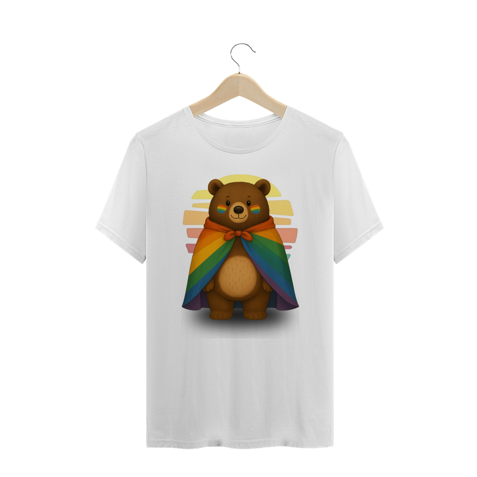 Conheça o Rainbow Flag Bear, o ursinho mais fofo e orgulhoso da internet! Com bochechas pintadas com a bandeira do arco-íris, uma capa LGBTQIA+ vibrante e um sorriso acolhedor, essa estampa é um símbolo de amor, representatividade e resistência com muita ternura. Ideal para quem quer vestir orgulho com leveza e estilo. A estampa “Rainbow Flag Bear” é perfeita para quem procura camiseta gay fofa, moda LGBTQIA+, estampa com urso arco-íris ou presentes inclusivos. Um visual alegre, ativista e cheio de cor para mostrar que o amor sempre vence — e com muito carinho!