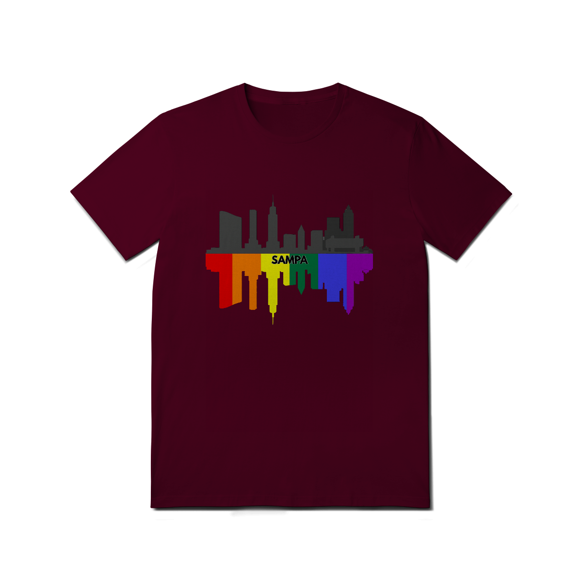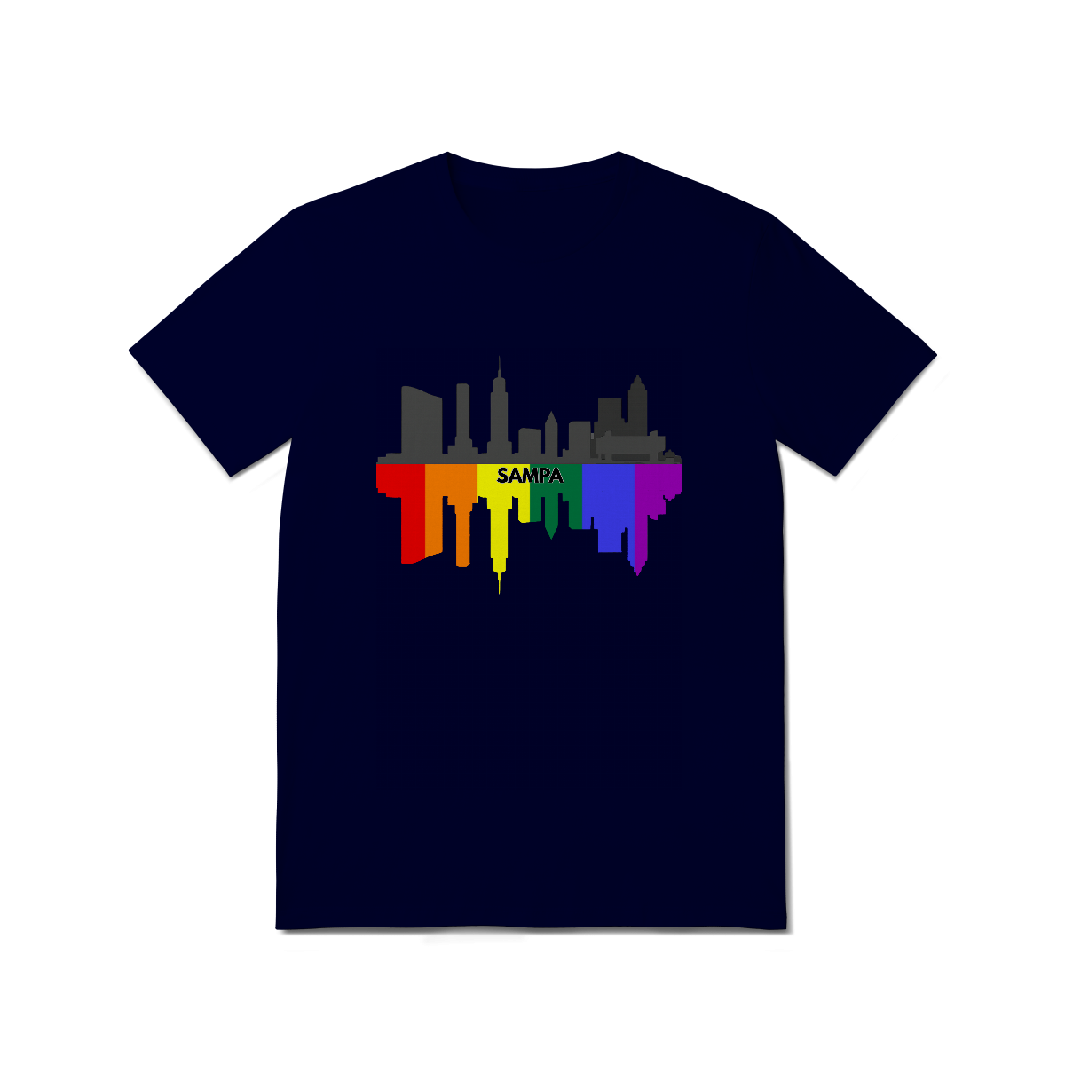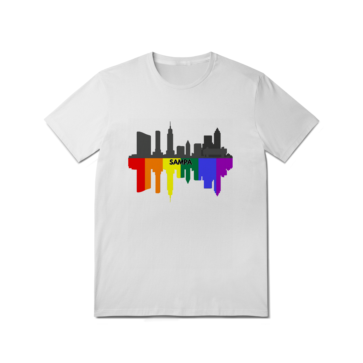 Esta estampa celebra a cidade de São Paulo com uma representação estilizada de seu skyline em preto e cinza, refletido em um espelhamento vibrante nas cores da bandeira LGBTQIA+. No centro, o nome "Sampa" destaca a alma urbana e orgulhosa da maior metrópole da América Latina, que abriga uma das maiores e mais importantes comunidades Gay Bear do mundo. Ideal para ursos paulistanos ou apaixonados pela cidade que nunca dorme, essa camiseta é perfeita para eventos LGBTQIA+, Parada do Orgulho, encontros bear e para quem deseja exibir seu amor por São Paulo com muito estilo, diversidade e representatividade. Uma fusão de urbanidade e orgulho queer que veste bem em qualquer lugar.