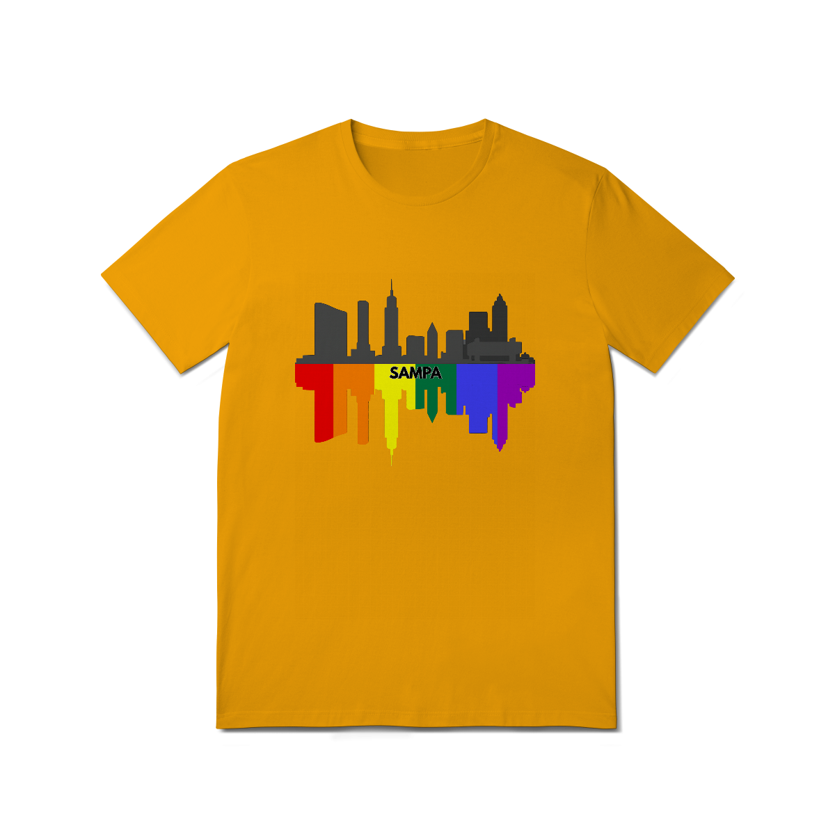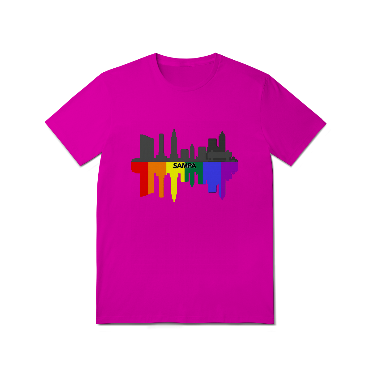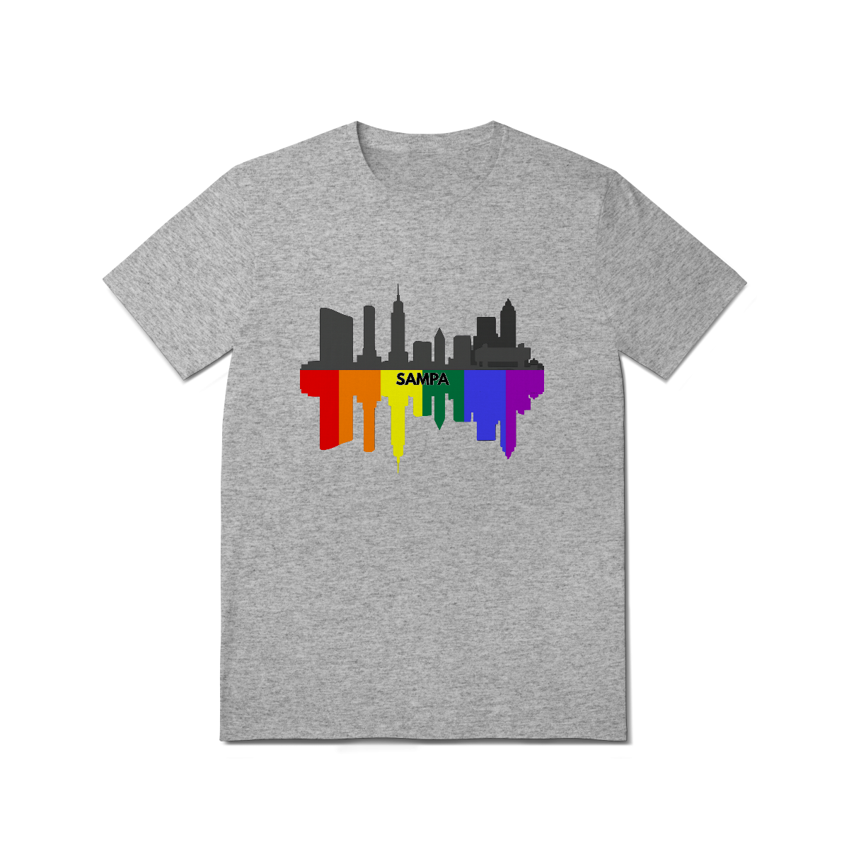 Esta estampa celebra a cidade de São Paulo com uma representação estilizada de seu skyline em preto e cinza, refletido em um espelhamento vibrante nas cores da bandeira LGBTQIA+. No centro, o nome "Sampa" destaca a alma urbana e orgulhosa da maior metrópole da América Latina, que abriga uma das maiores e mais importantes comunidades Gay Bear do mundo. Ideal para ursos paulistanos ou apaixonados pela cidade que nunca dorme, essa camiseta é perfeita para eventos LGBTQIA+, Parada do Orgulho, encontros bear e para quem deseja exibir seu amor por São Paulo com muito estilo, diversidade e representatividade. Uma fusão de urbanidade e orgulho queer que veste bem em qualquer lugar.