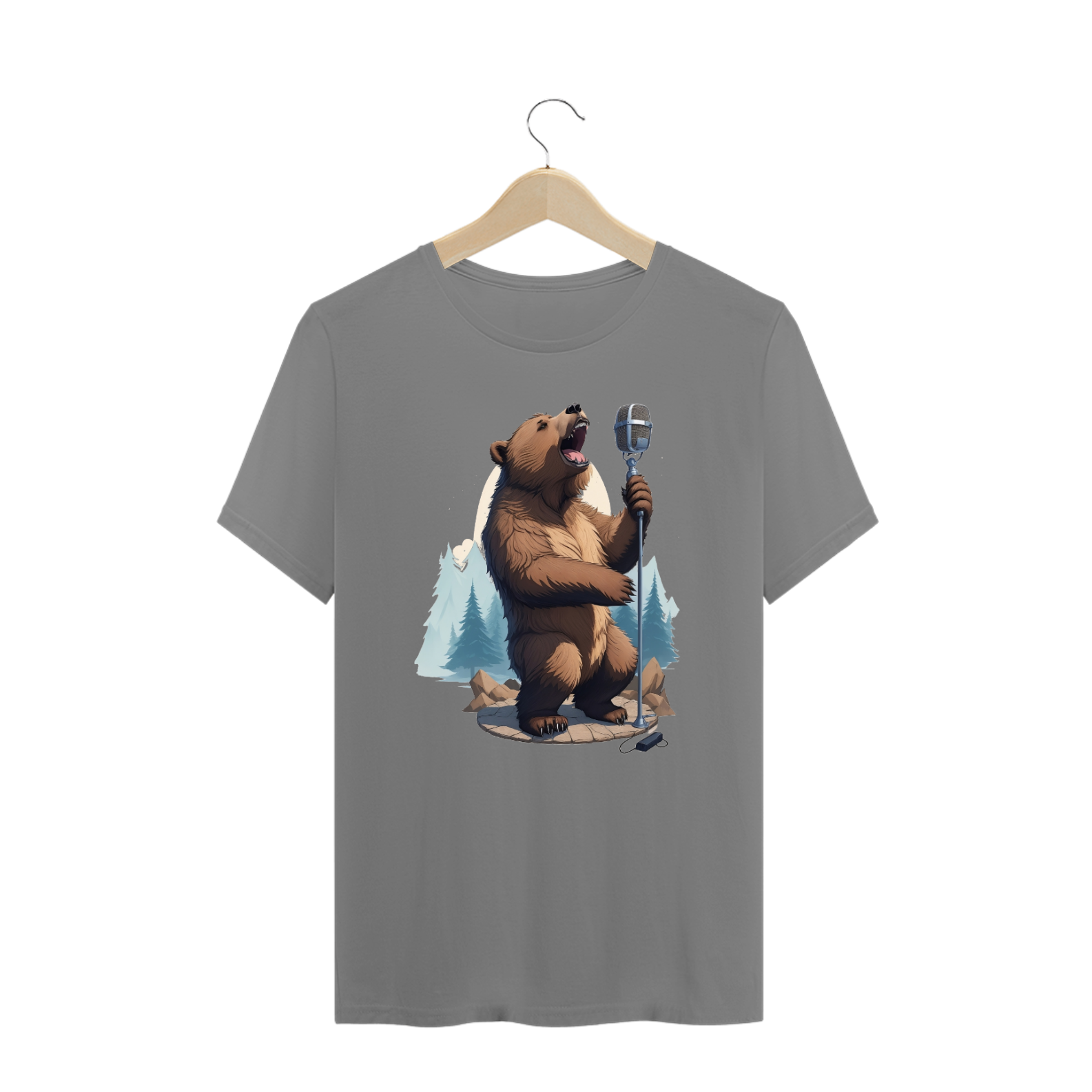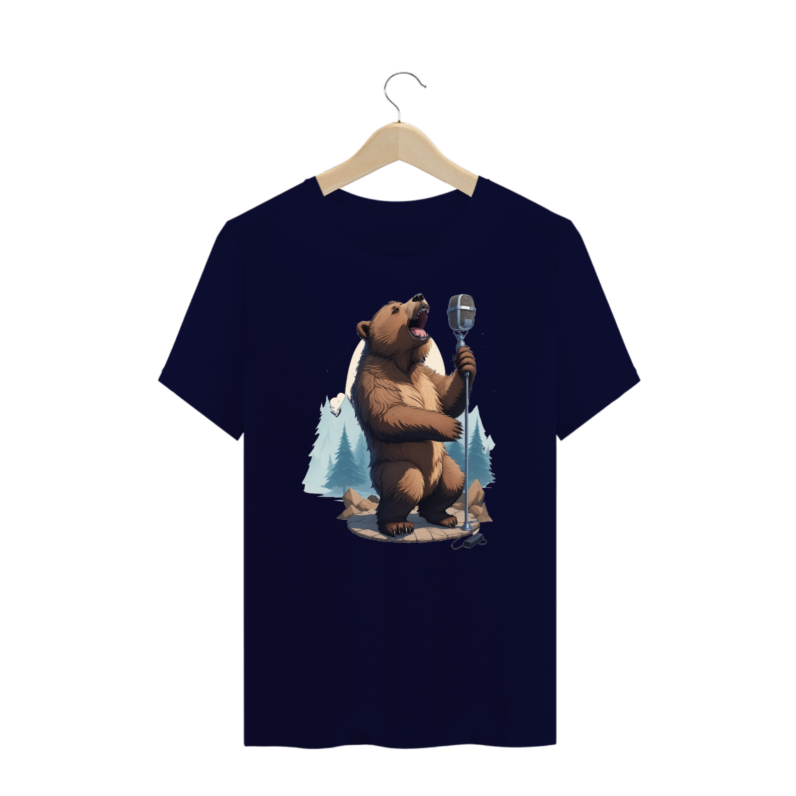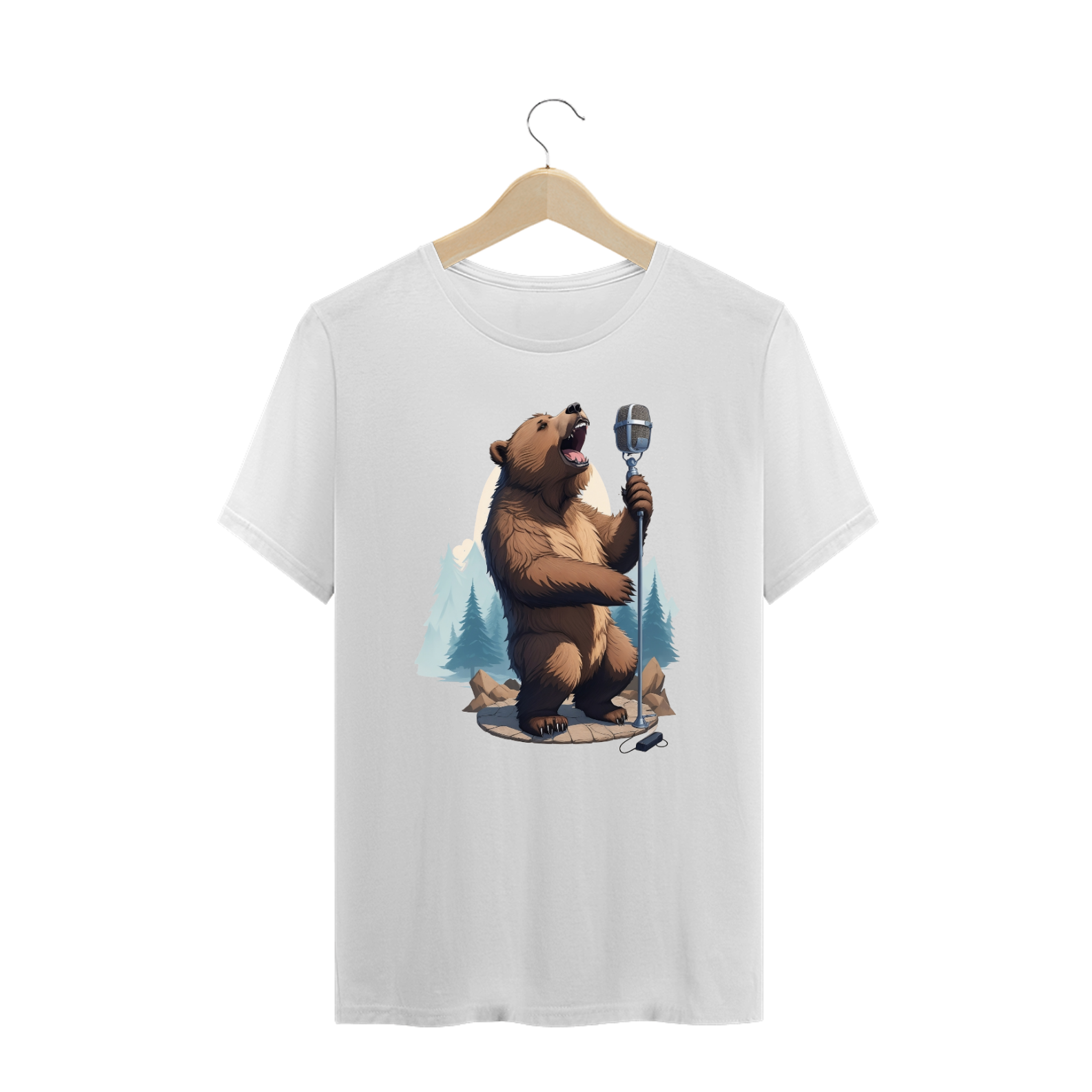 Apresentamos uma estampa que é uma celebração da música, da natureza e da comunidade Gaybear. Neste design encantador, um urso talentoso canta com paixão em um microfone de pedestal vintage, enquanto o cenário de floresta exibe a beleza da natureza.