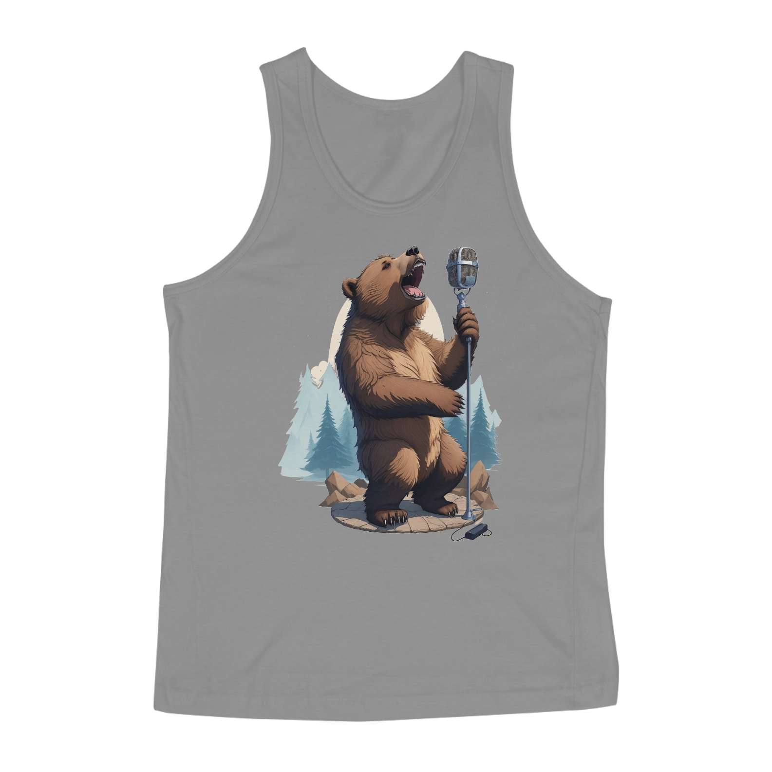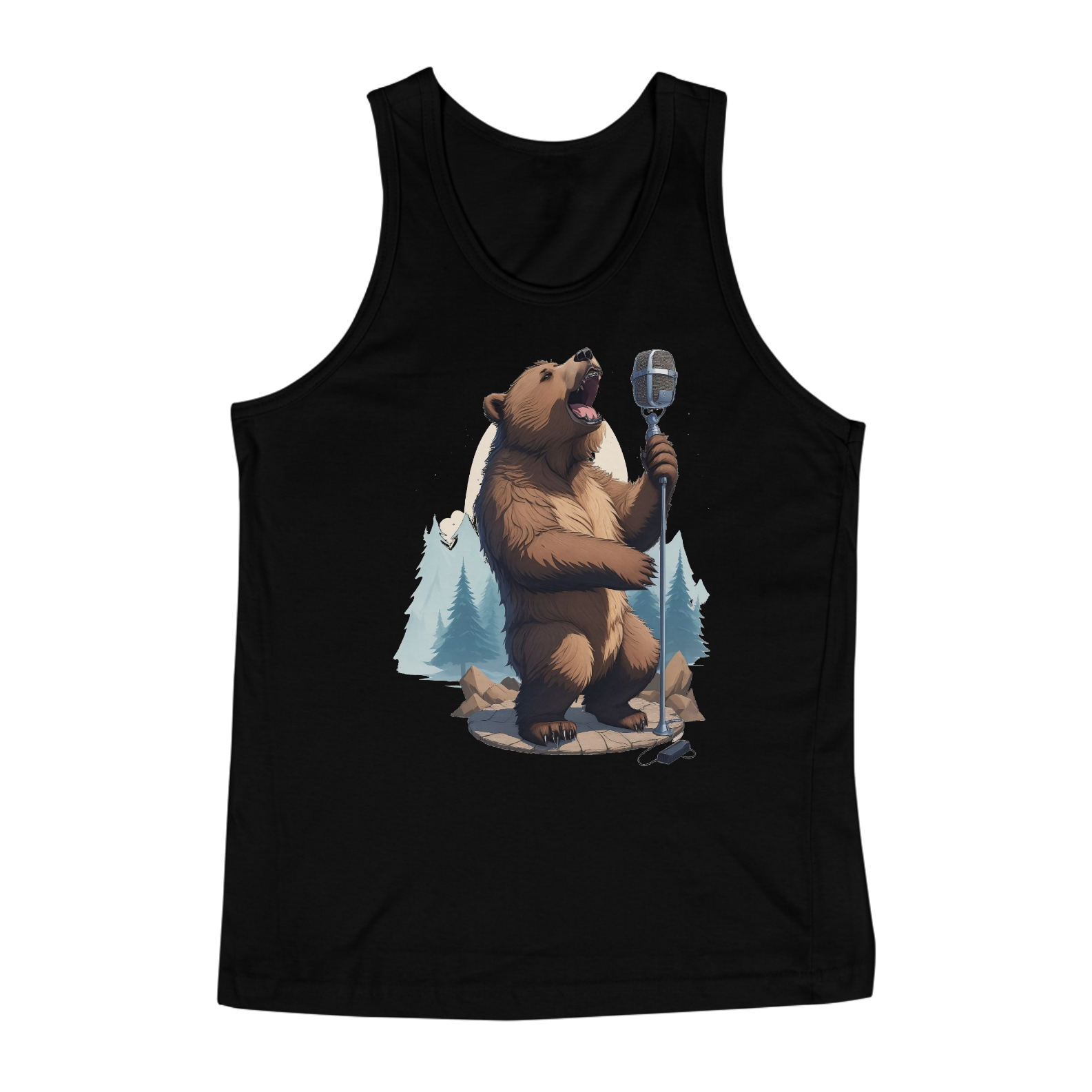 Apresentamos uma estampa que é uma celebração da música, da natureza e da comunidade Gaybear. Neste design encantador, um urso talentoso canta com paixão em um microfone de pedestal vintage, enquanto o cenário de floresta exibe a beleza da natureza.