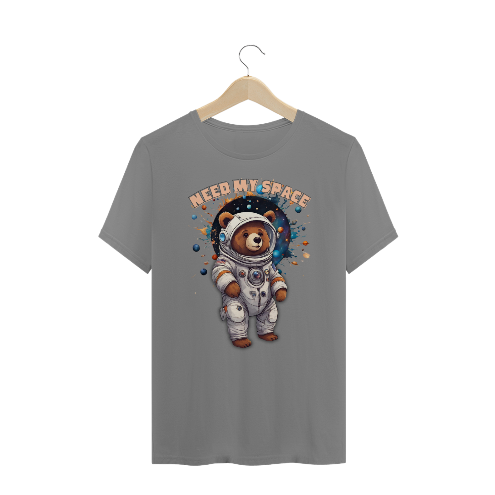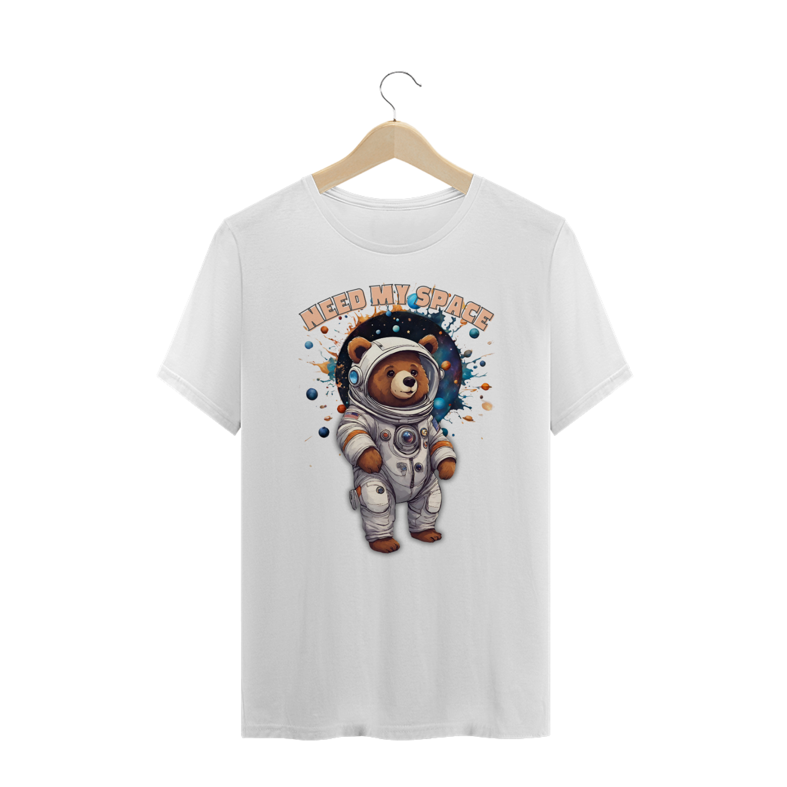 A estampa "Space Bear" é uma celebração divertida e fofa da individualidade e do orgulho da comunidade Gay Bear. Com um urso vestido de astronauta em meio a planetas e estrelas, acompanhado da frase "Need My Space", este design capta o espírito aventureiro e a necessidade de espaço pessoal, ao mesmo tempo em que adiciona um toque de humor. A combinação de cores vivas e detalhes espaciais faz com que esta peça se destaque, sendo perfeita para quem valoriza a combinação de estilo e personalidade. Ideal para o dia a dia ou eventos temáticos, a estampa "Space Bear" é mais do que uma simples camiseta; é uma declaração de orgulho e independência.