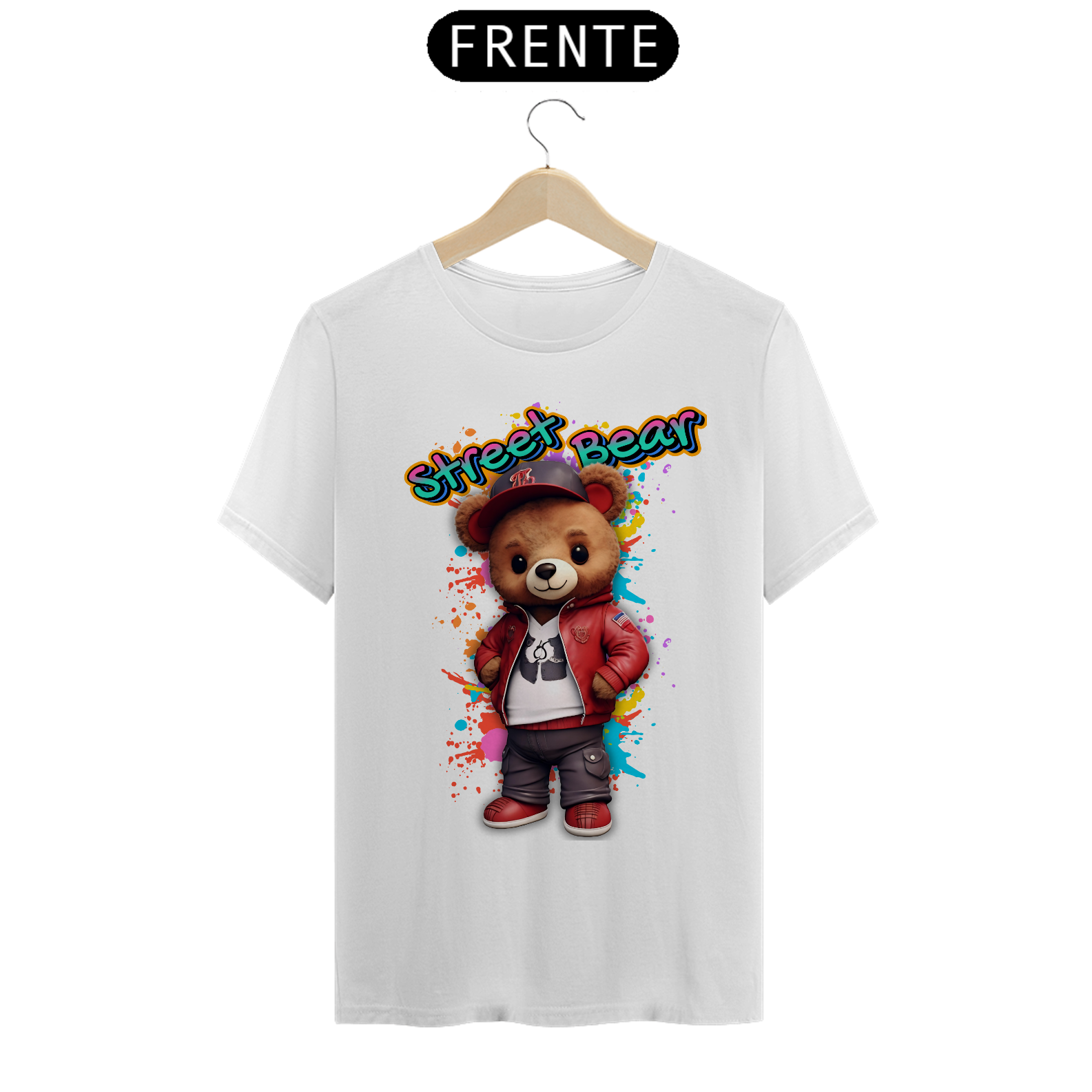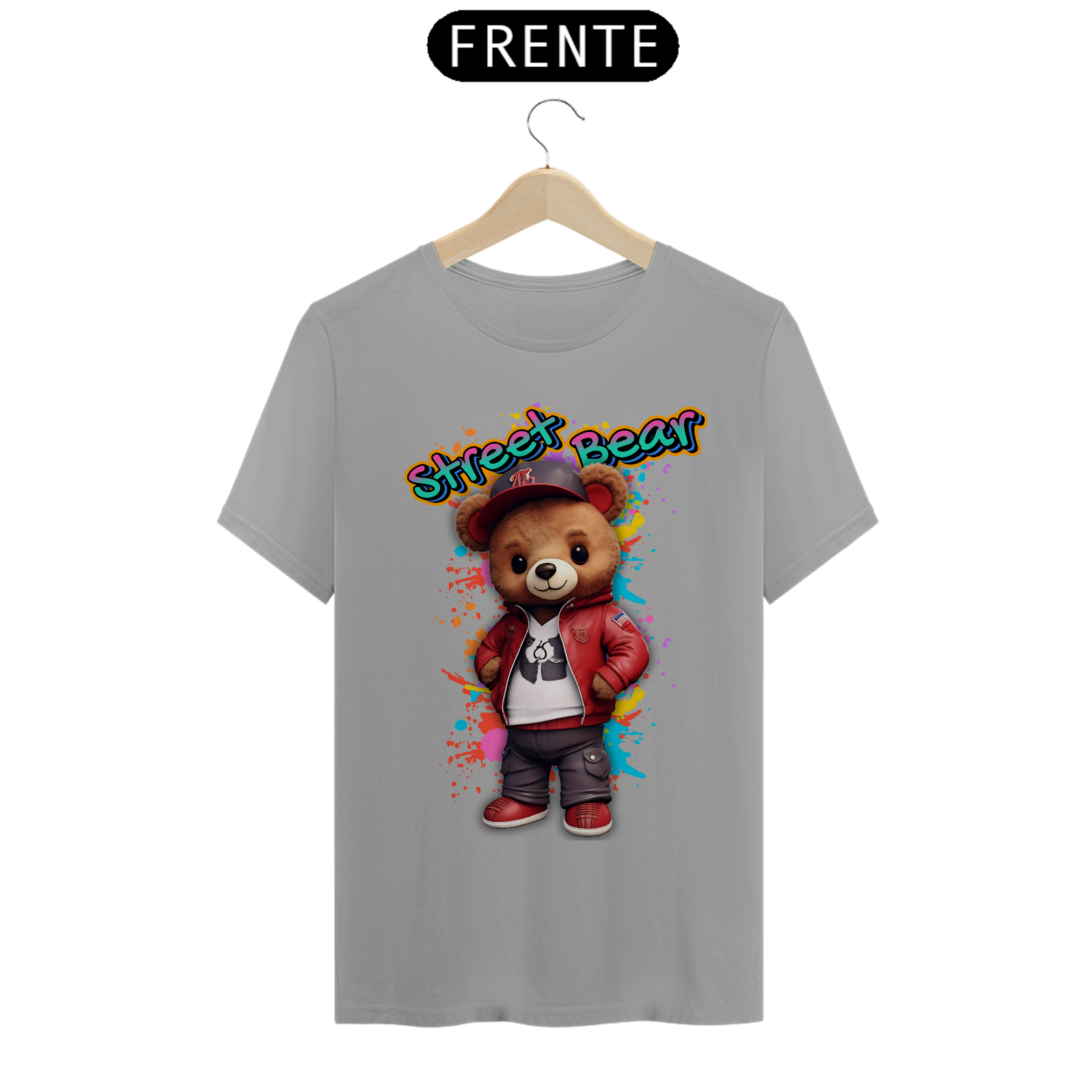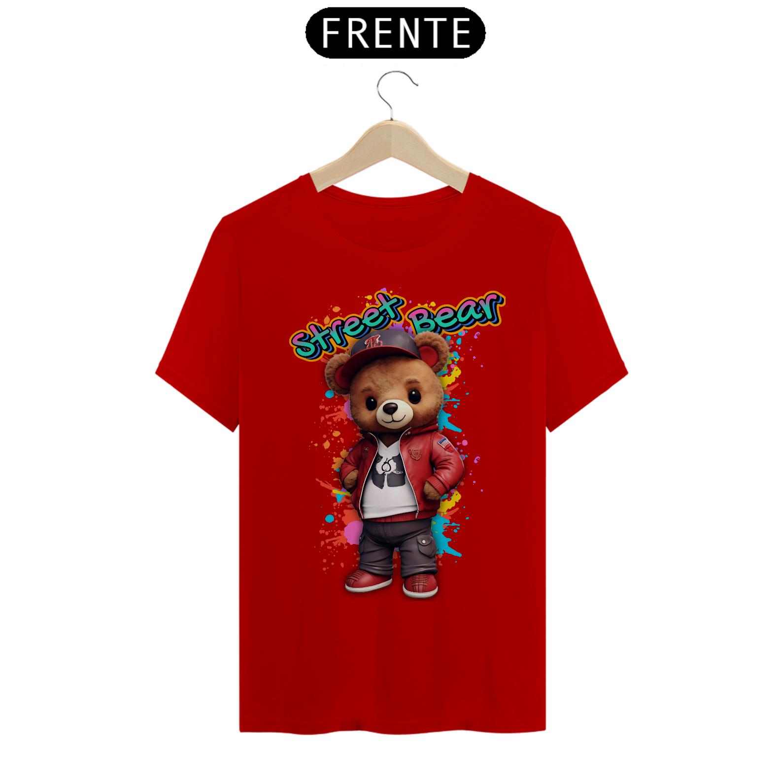 A estampa "Street Teddy" traz uma vibe urbana e descolada para a comunidade Gay Bear. Nesta arte vibrante, um urso adorável veste uma jaqueta vermelha estilosa, tênis combinando e um boné, tudo sobre um fundo colorido e grafitado que destaca o estilo de rua e a atitude descontraída. Esta estampa é perfeita para quem quer mostrar seu lado moderno e divertido, combinando o charme do mundo dos ursos com a moda urbana. Ideal para festas, eventos da comunidade ou para um look casual cheio de personalidade, a camiseta "Street Teddy" é uma peça única que celebra a diversidade e o espírito jovem da comunidade Gay Bear. Com esta estampa, você leva consigo a energia vibrante das ruas e o orgulho de ser quem você é.