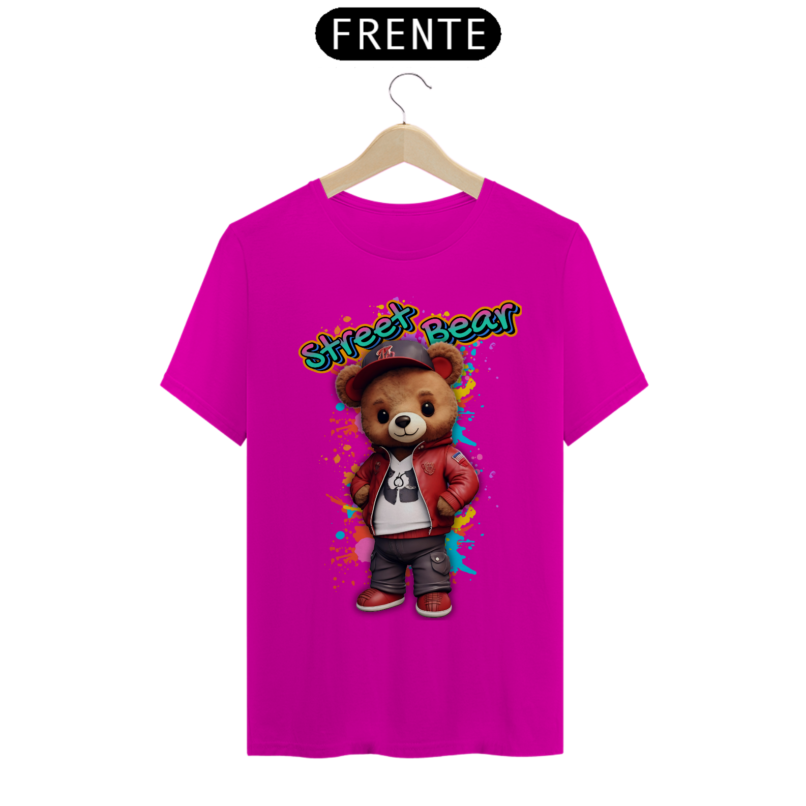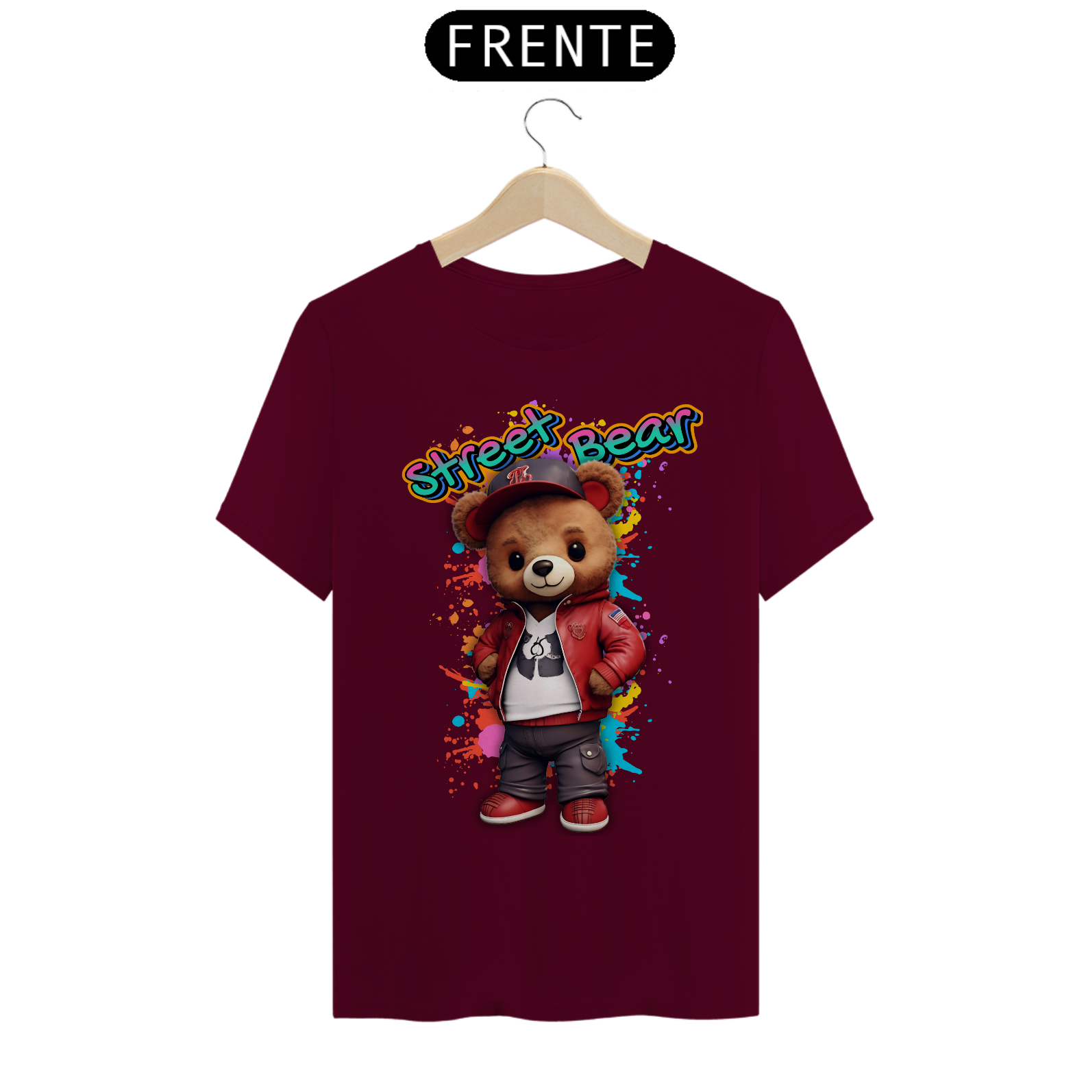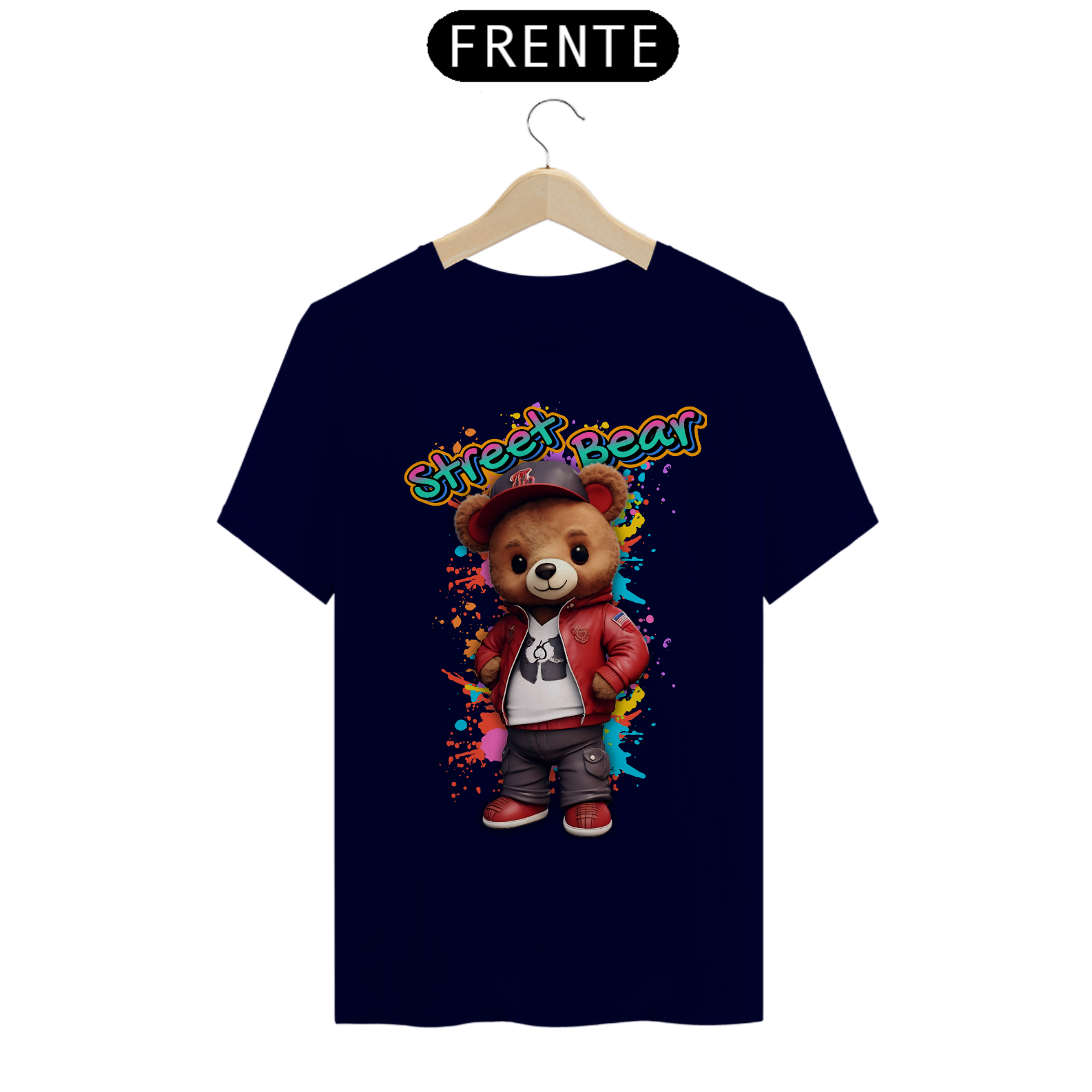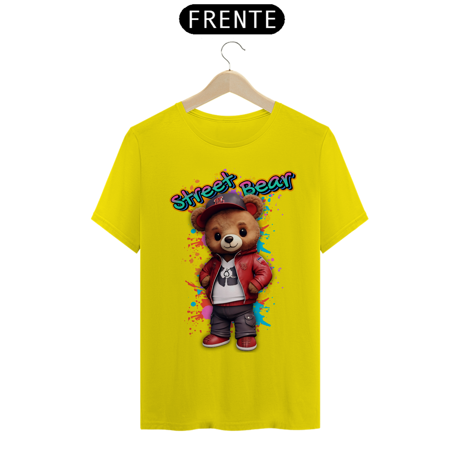 A estampa "Street Teddy" traz uma vibe urbana e descolada para a comunidade Gay Bear. Nesta arte vibrante, um urso adorável veste uma jaqueta vermelha estilosa, tênis combinando e um boné, tudo sobre um fundo colorido e grafitado que destaca o estilo de rua e a atitude descontraída. Esta estampa é perfeita para quem quer mostrar seu lado moderno e divertido, combinando o charme do mundo dos ursos com a moda urbana. Ideal para festas, eventos da comunidade ou para um look casual cheio de personalidade, a camiseta "Street Teddy" é uma peça única que celebra a diversidade e o espírito jovem da comunidade Gay Bear. Com esta estampa, você leva consigo a energia vibrante das ruas e o orgulho de ser quem você é.