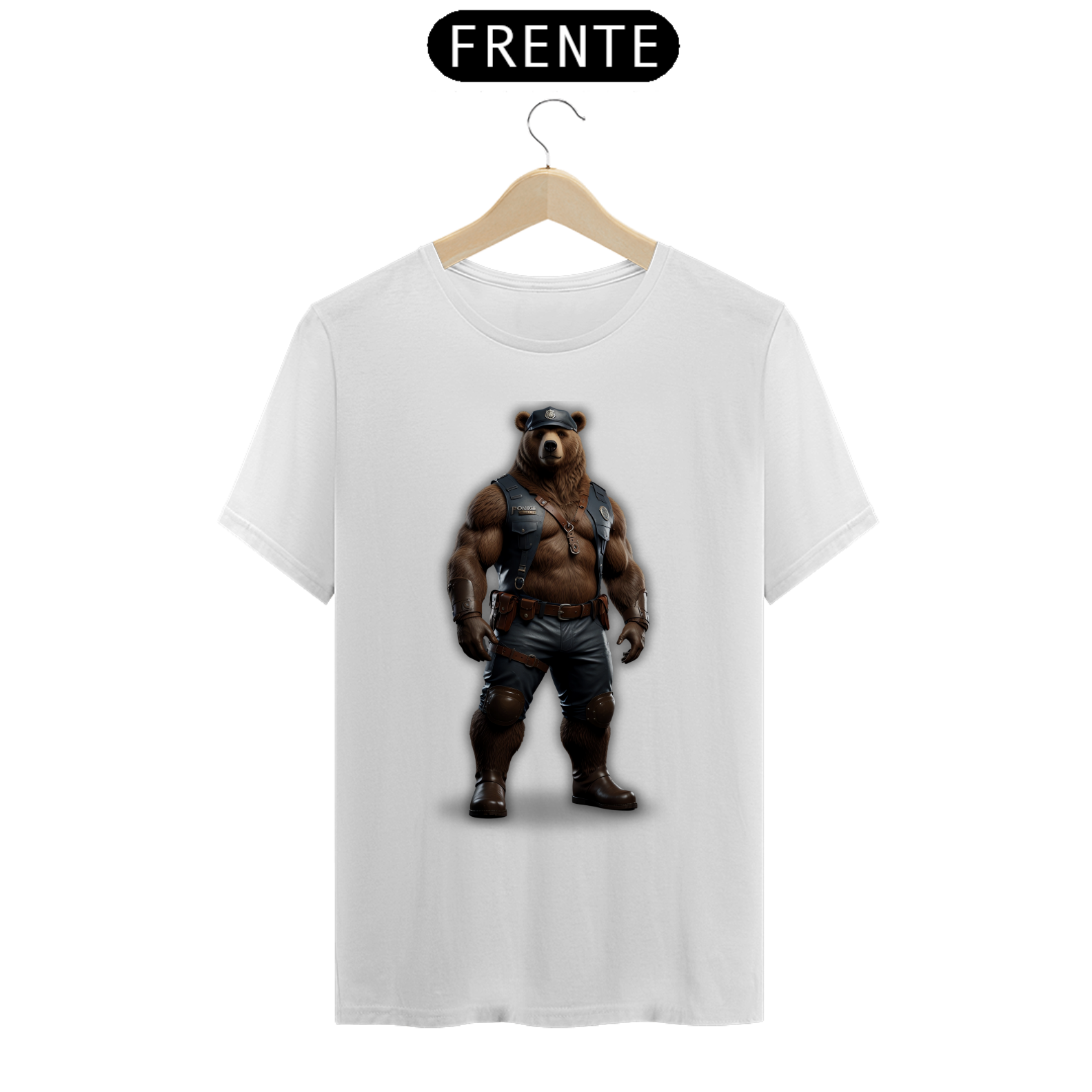 Esta estampa única e vibrante foi criada especialmente para a comunidade Gay Bear, apresentando um urso antropomórfico musculoso trajado como policial, com elementos de couro e acessórios que evocam força e estilo. Combinando simbolismos de poder e masculinidade, a imagem celebra a diversidade e a confiança dentro da cultura Bear, transmitindo um visual marcante e impactante. Ideal para festas, encontros ou eventos LGBTQIA+, essa camiseta exala orgulho e autenticidade, além de servir como uma peça de afirmação visual para membros e aliados da comunidade. Use esta estampa para destacar sua personalidade e celebrar a união dentro do movimento Bear.