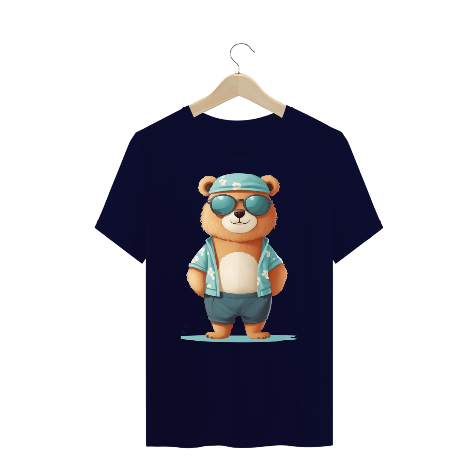 specialmente elaborada para a vibrante comunidade Gaybear. Neste design estiloso, um ursinho cativante se destaca com sua camisa floral azul, deixando o peito à mostra com orgulho, um boné azul e um par de óculos de sol. Essa imagem é uma celebração da autenticidade, da autoexpressão e do amor próprio, valores essenciais para a comunidade.