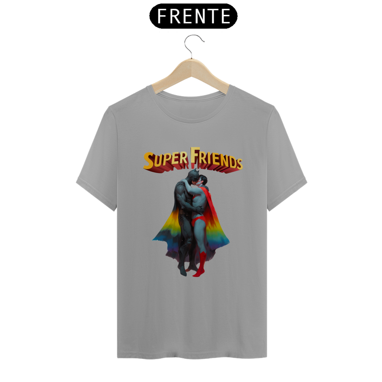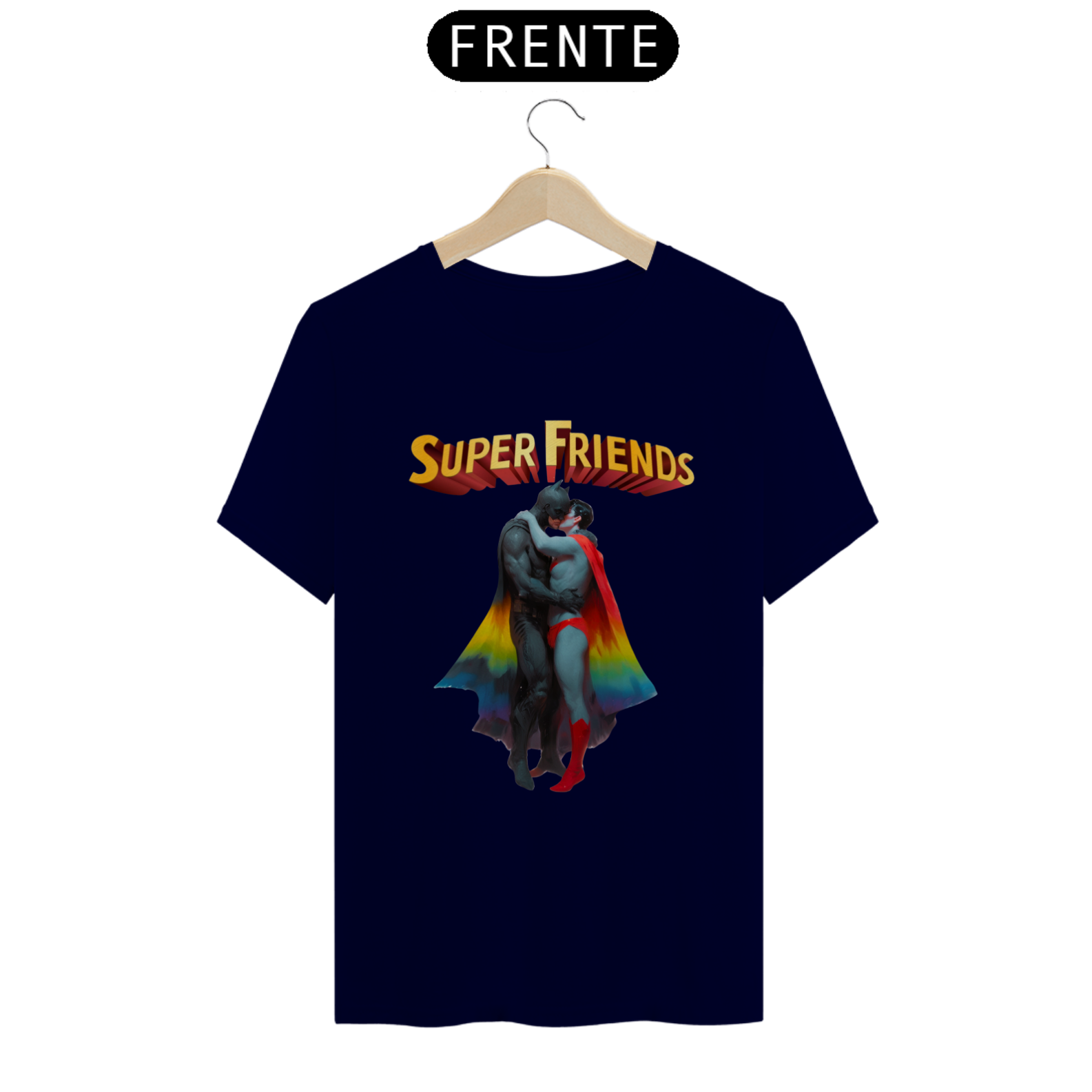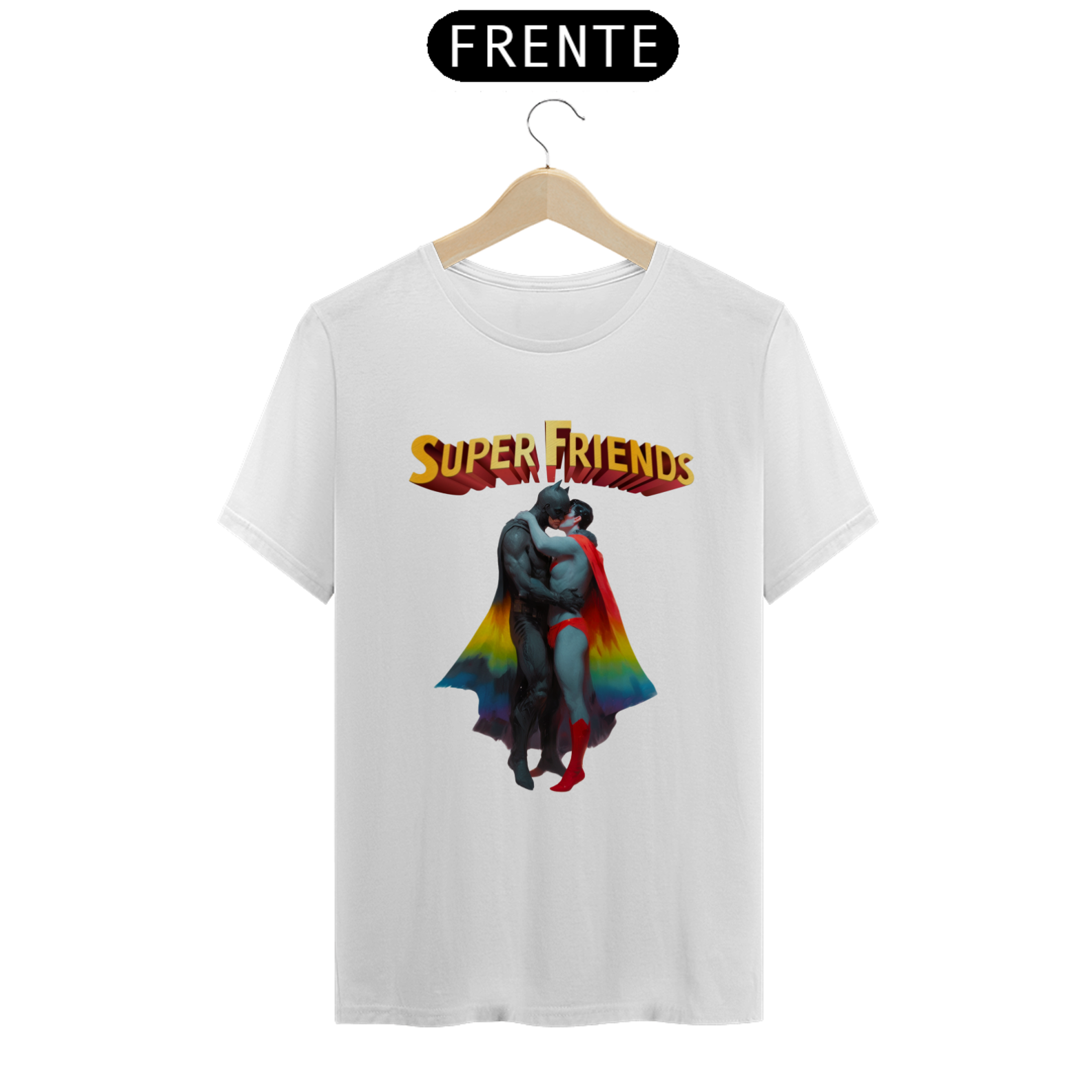 Liberte seu lado heróico com esta estampa ousada e empoderadora, que mostra Batman e Superman abraçados e se beijando apaixonadamente. Esta representação única e provocadora é uma celebração do amor e da diversidade dentro da comunidade Gay Bear, unindo ícones de super-heróis com uma mensagem de igualdade e aceitação. Esta camiseta é uma declaração corajosa de orgulho LGBTQ+ e uma afirmação do direito de amar livremente, independentemente de quem você seja.