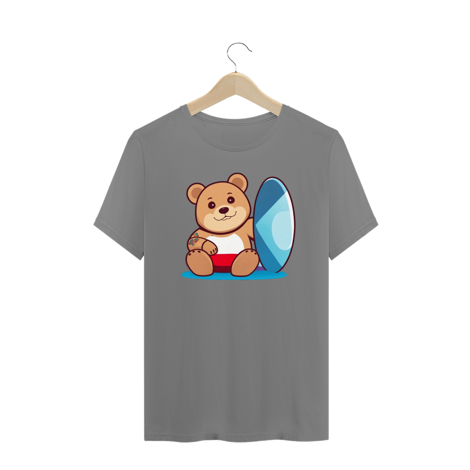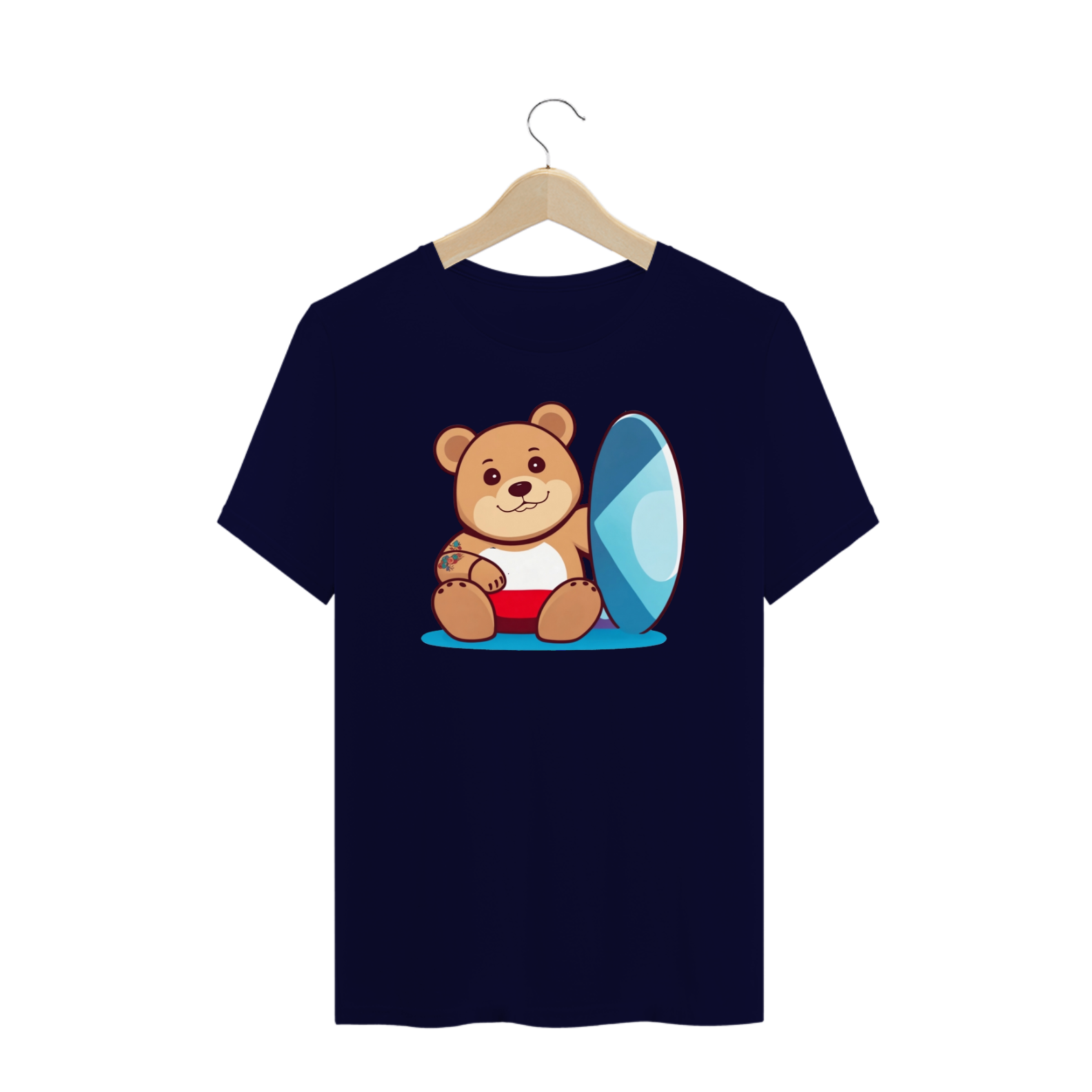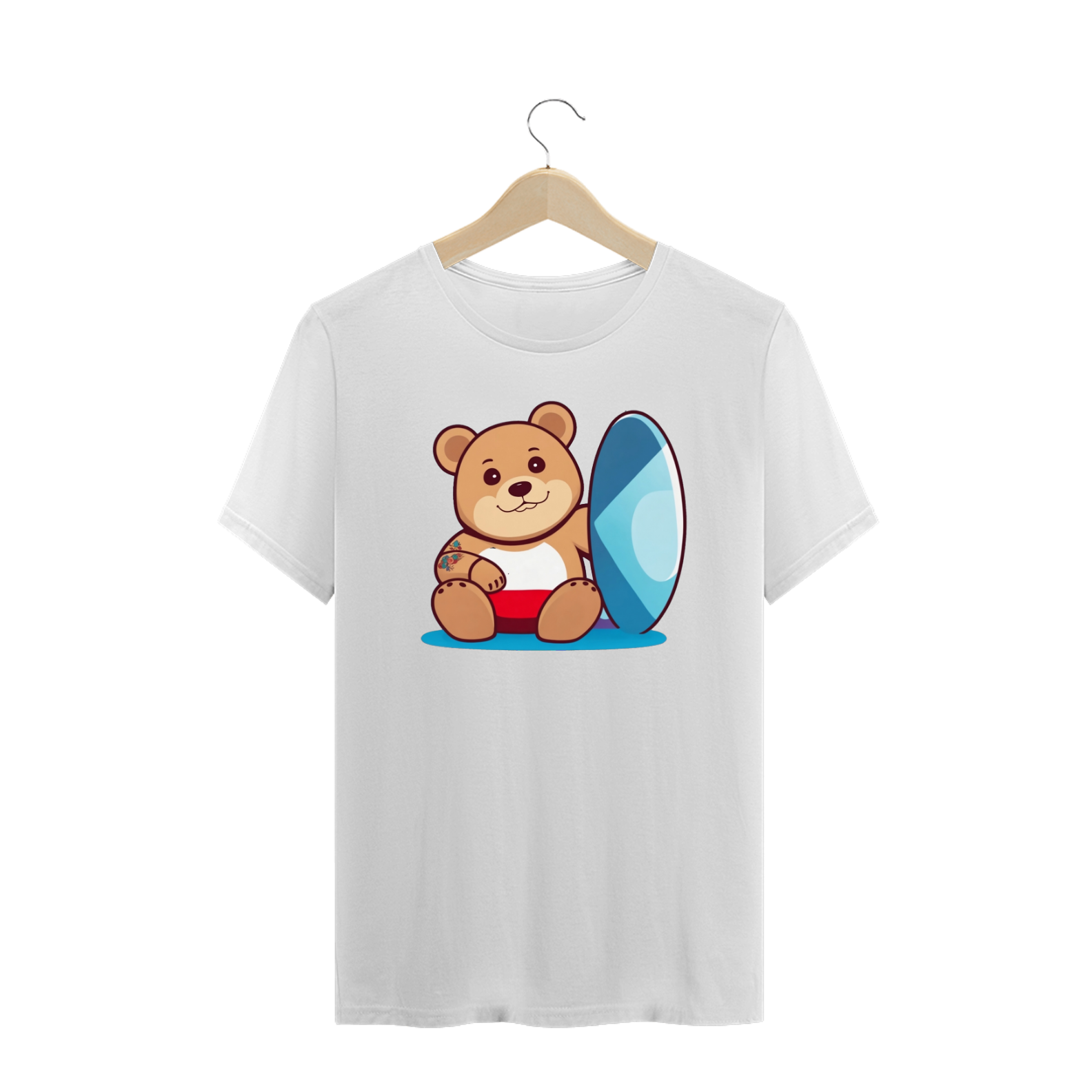 Sentado com conforto ao lado de uma prancha de surf azul vibrante, esse urso está pronto para enfrentar as ondas da vida com confiança e orgulho. A prancha de surf simboliza o espírito aventureiro e o amor pelo ar livre que ressoam na comunidade.