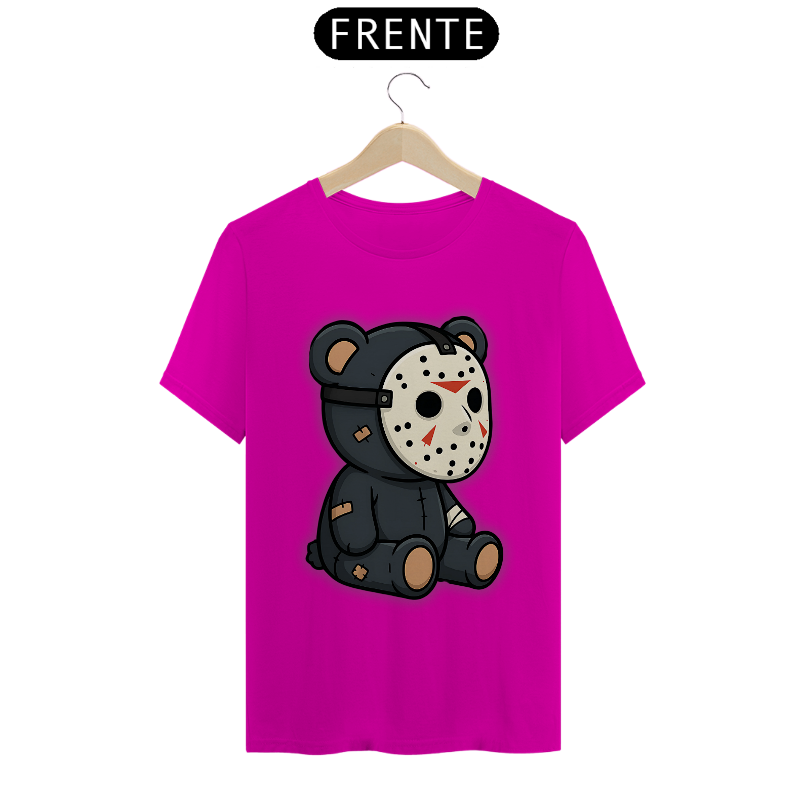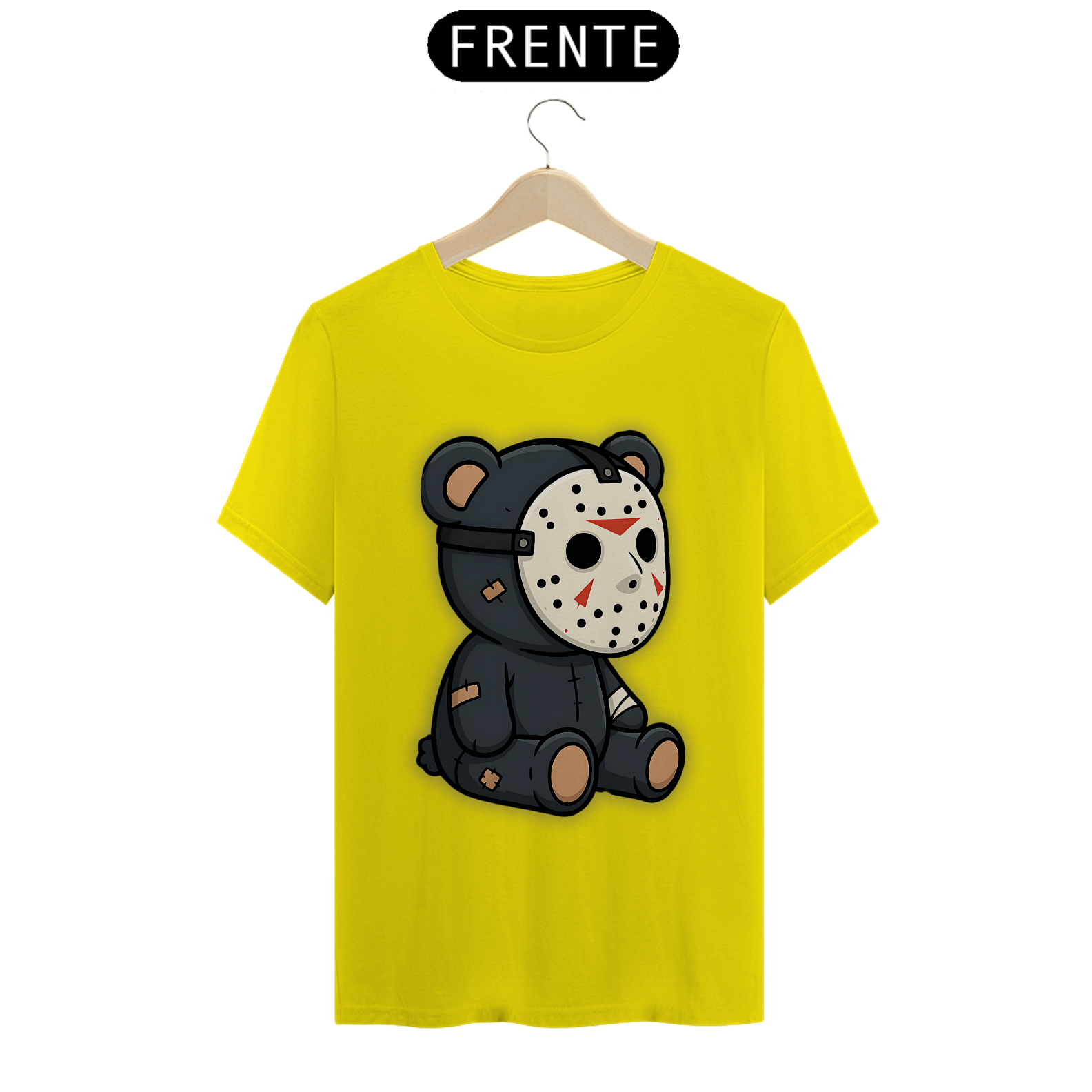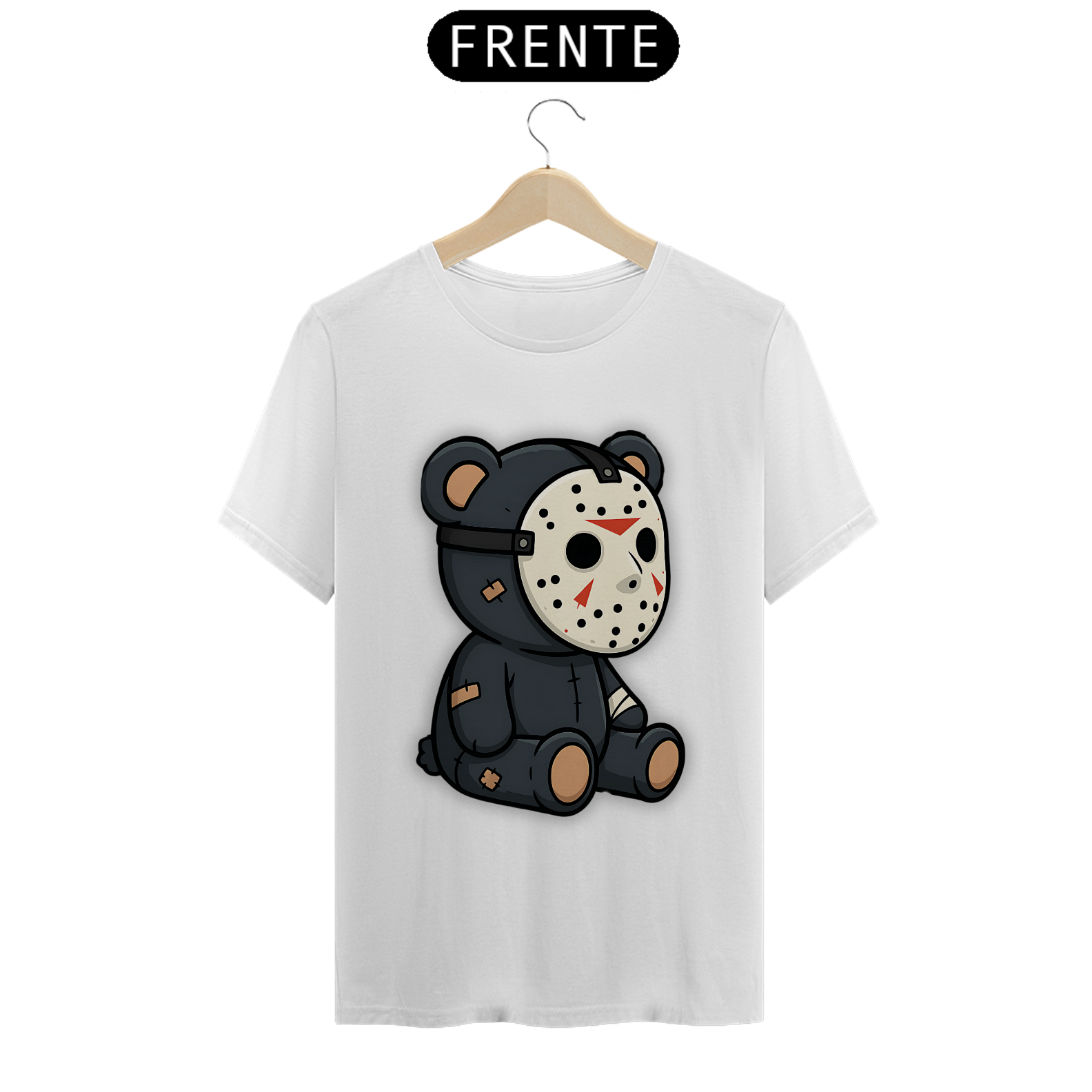 A estampa Teddy Jason Bear traz uma combinação perfeita de fofura e terror, unindo o estilo ursinho ao emblemático vilão Jason. Ele apresenta um urso de pelúcia com máscara de hóquei, remendos pelo corpo e um visual sinistro, porém adorável. Uma combinação cheia de personalidade, perfeita para a comunidade Gay Bear que quer expressar seu estilo de forma ousada, descontraída e cheia de atitude. Com essa camiseta, você revela o seu lado fofo, peludo e ao mesmo tempo um pouquinho selvagem. Uma peça perfeita para buscar online com expressões como “camiseta gay bear de terror”, “urso Jason fofo”, “estampa bear Halloween” e “moda gay urso”. Uma combinação perfeita de doçura e rebeldia para o seu guarda-roupa!