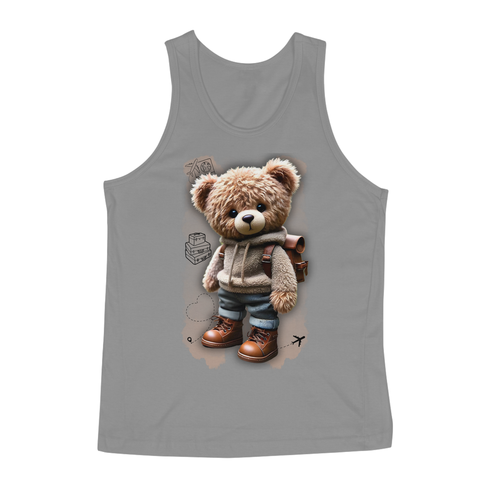 A estampa "Travelling Teddy Bear" é uma celebração da aventura e da fofura, pensada especialmente para a comunidade Gay Bear. Com um urso de pelúcia estilizado em trajes de viagem, completo com mochila e botas, esta estampa é perfeita para aqueles que têm um espírito aventureiro e amam explorar o mundo com estilo. Os detalhes adicionam um toque encantador e acolhedor, ideal para aqueles que se identificam com a comunidade bear e querem expressar seu amor por viagens e descoberta. A "Travelling Teddy Bear" é ideal para quem ama viajar e quer levar consigo um pouco de fofura e carinho em suas aventuras, tornando-se uma peça de destaque no guarda-roupa de qualquer bear que adora explorar o mundo.