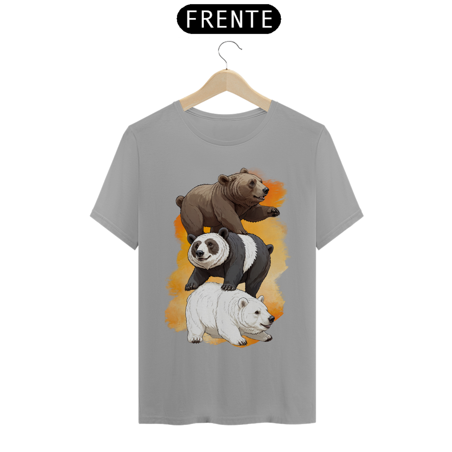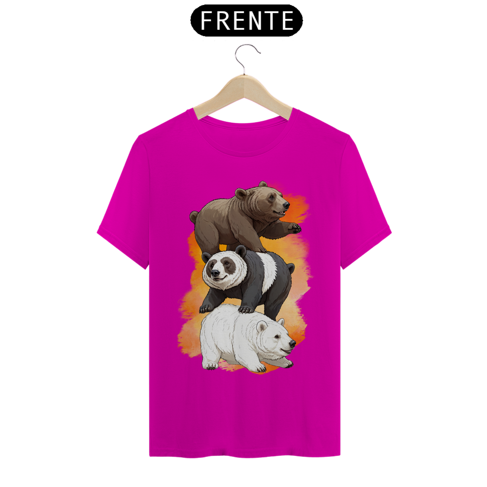 Esta estampa de camiseta apresenta uma adorável cena de três ursinhos - um Grizzly, um Panda e um Polar - formando uma pilha afetuosa, um sobre o outro. A imagem transmite uma mensagem de união e diversidade na comunidade Gay Bear, destacando a beleza da variedade de cores e espécies. Ideal para aqueles que celebram a pluralidade e a solidariedade entre os membros da comunidade Gay Bear, esta estampa é uma expressão visual encantadora de amor e camaradagem. Seja para eventos comunitários ou uso diário, essa camiseta é uma escolha alegre e inclusiva.