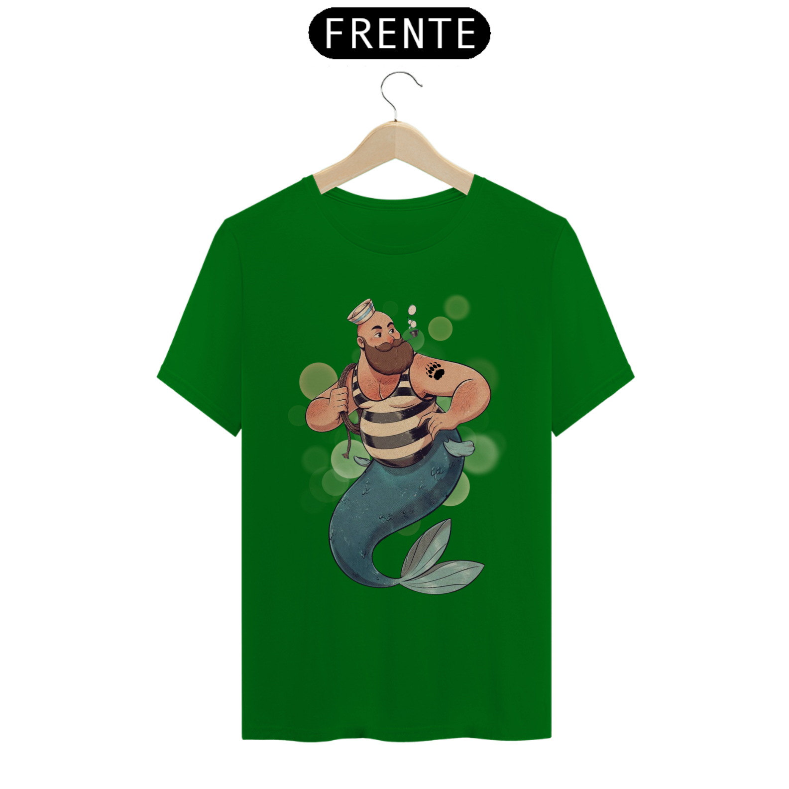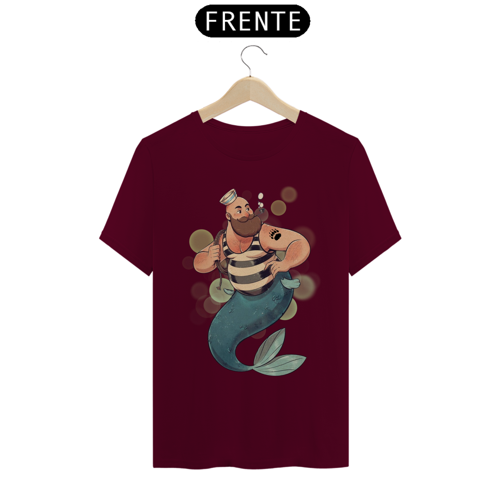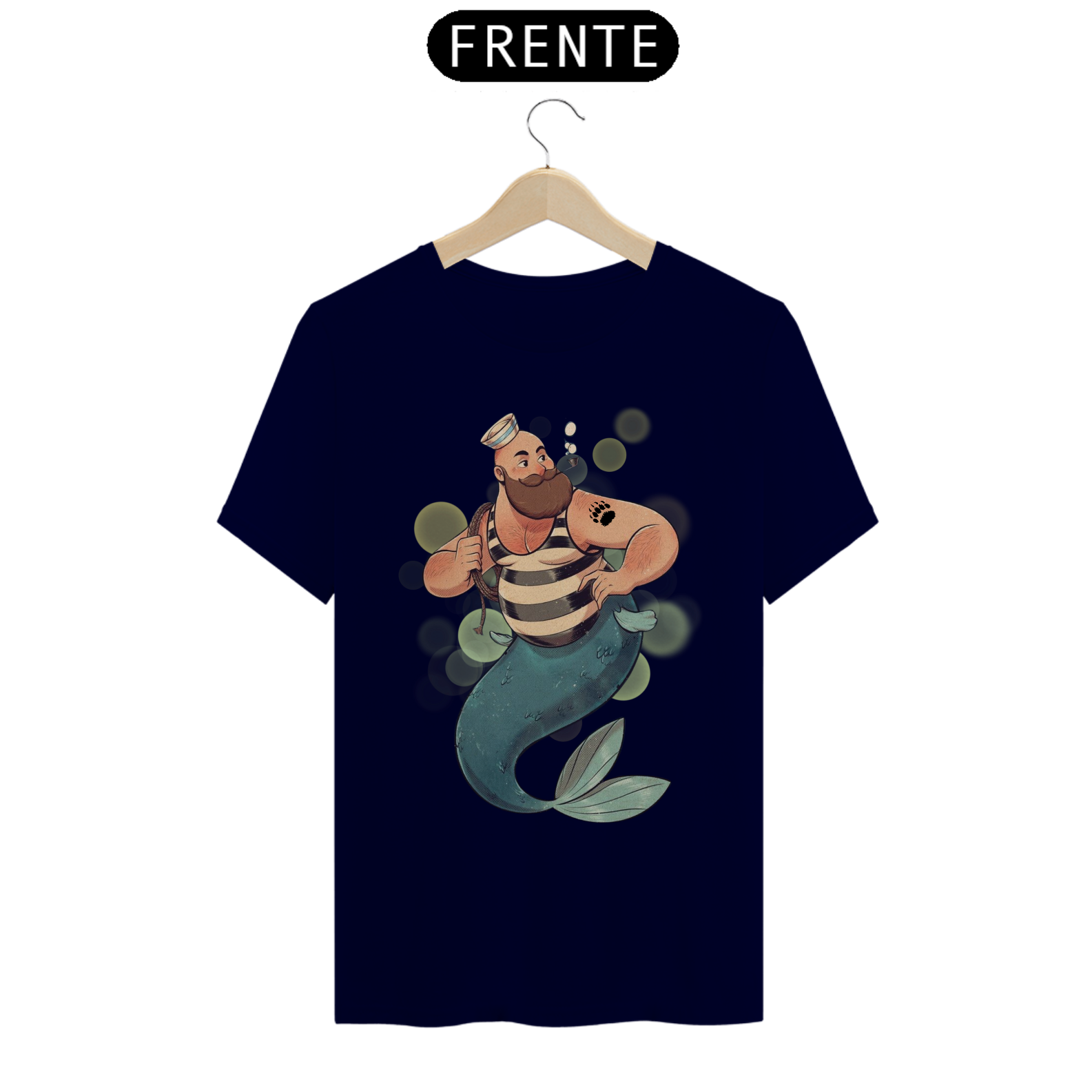 A representação única deste Tritão marinheiro, com suas características físicas distintivas e sua tatuagem de pata de urso, é uma expressão autêntica de identidade e orgulho para a comunidade Gay Bear. Esta estampa é um lembrete poderoso da beleza encontrada na diversidade e na aceitação de si mesmo.