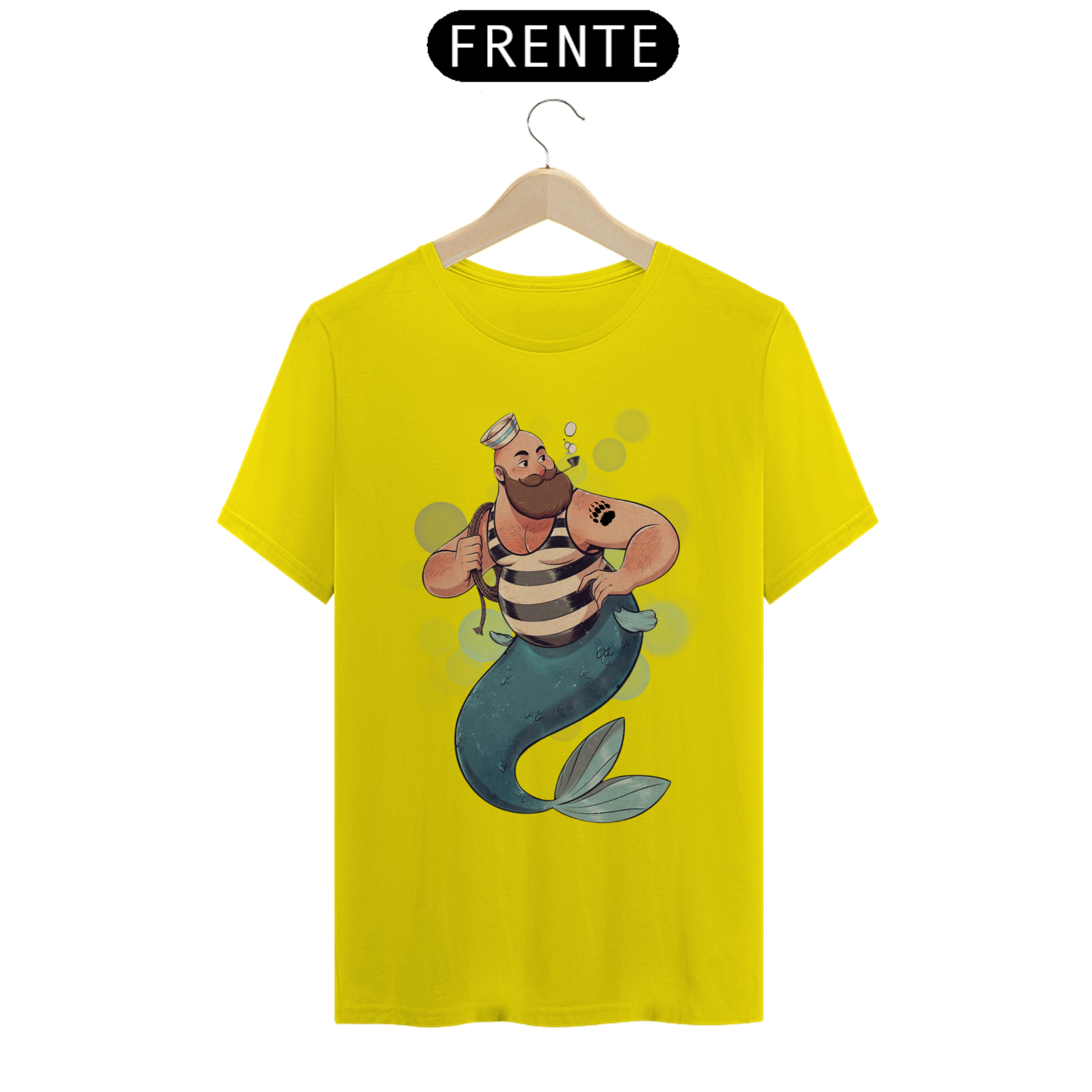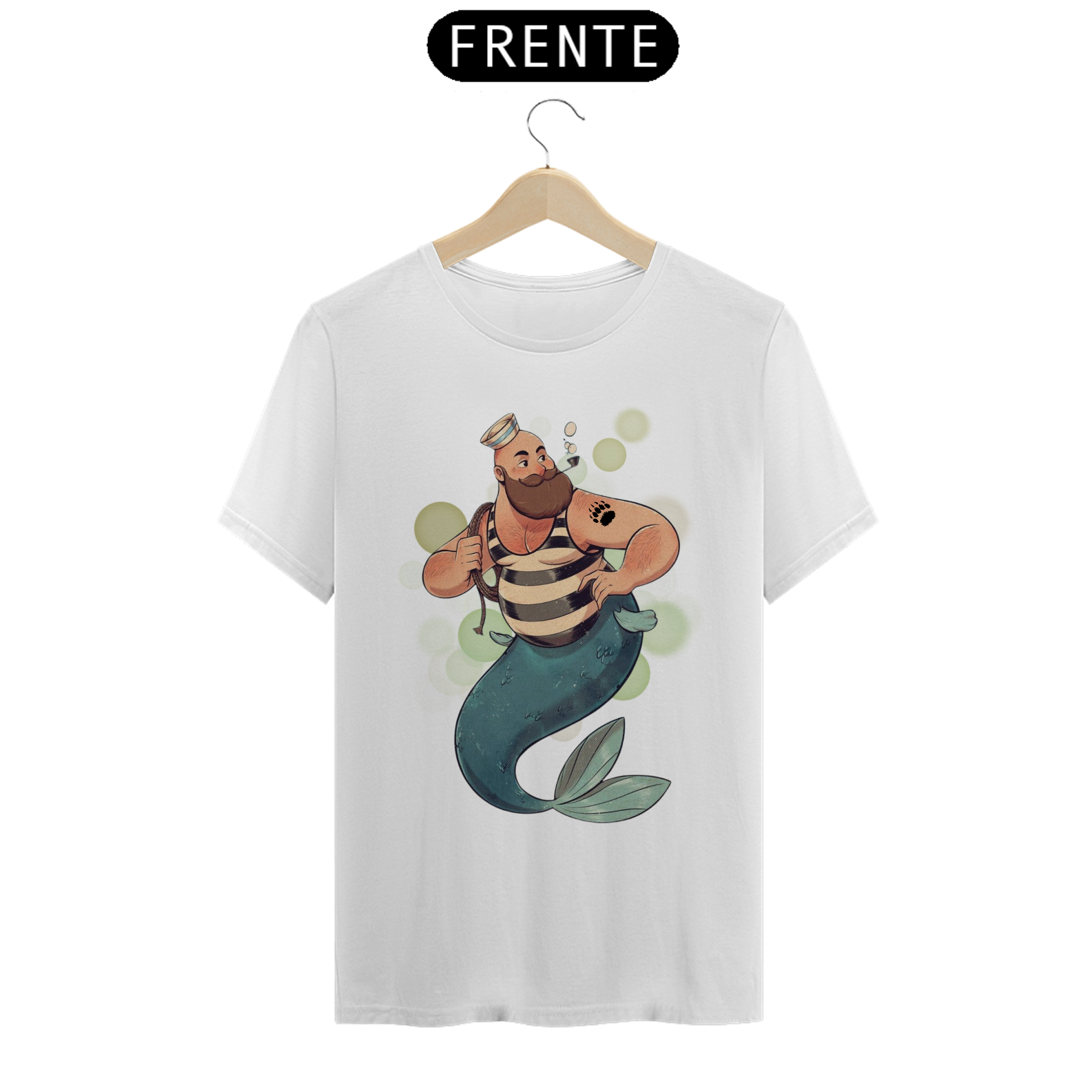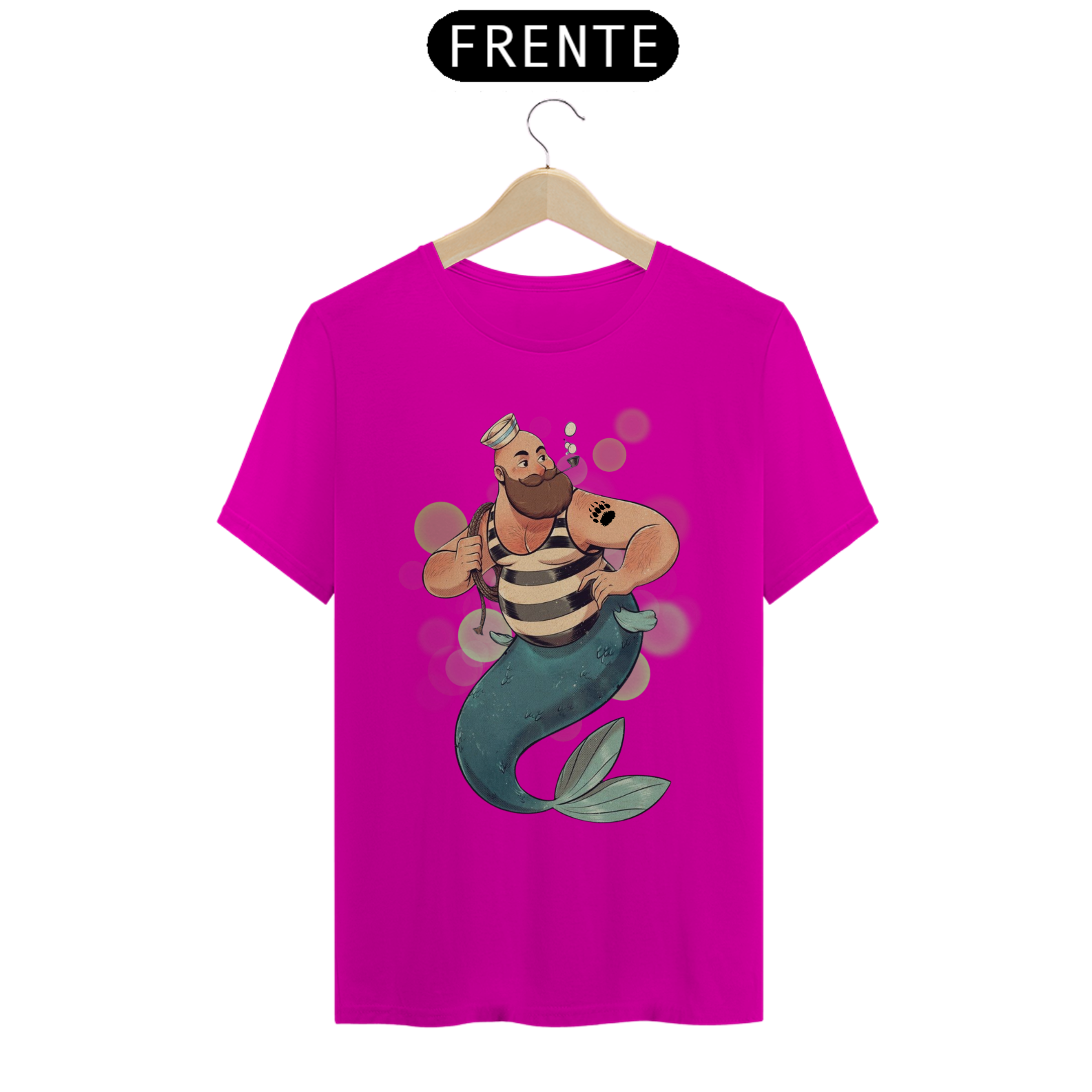 A representação única deste Tritão marinheiro, com suas características físicas distintivas e sua tatuagem de pata de urso, é uma expressão autêntica de identidade e orgulho para a comunidade Gay Bear. Esta estampa é um lembrete poderoso da beleza encontrada na diversidade e na aceitação de si mesmo.