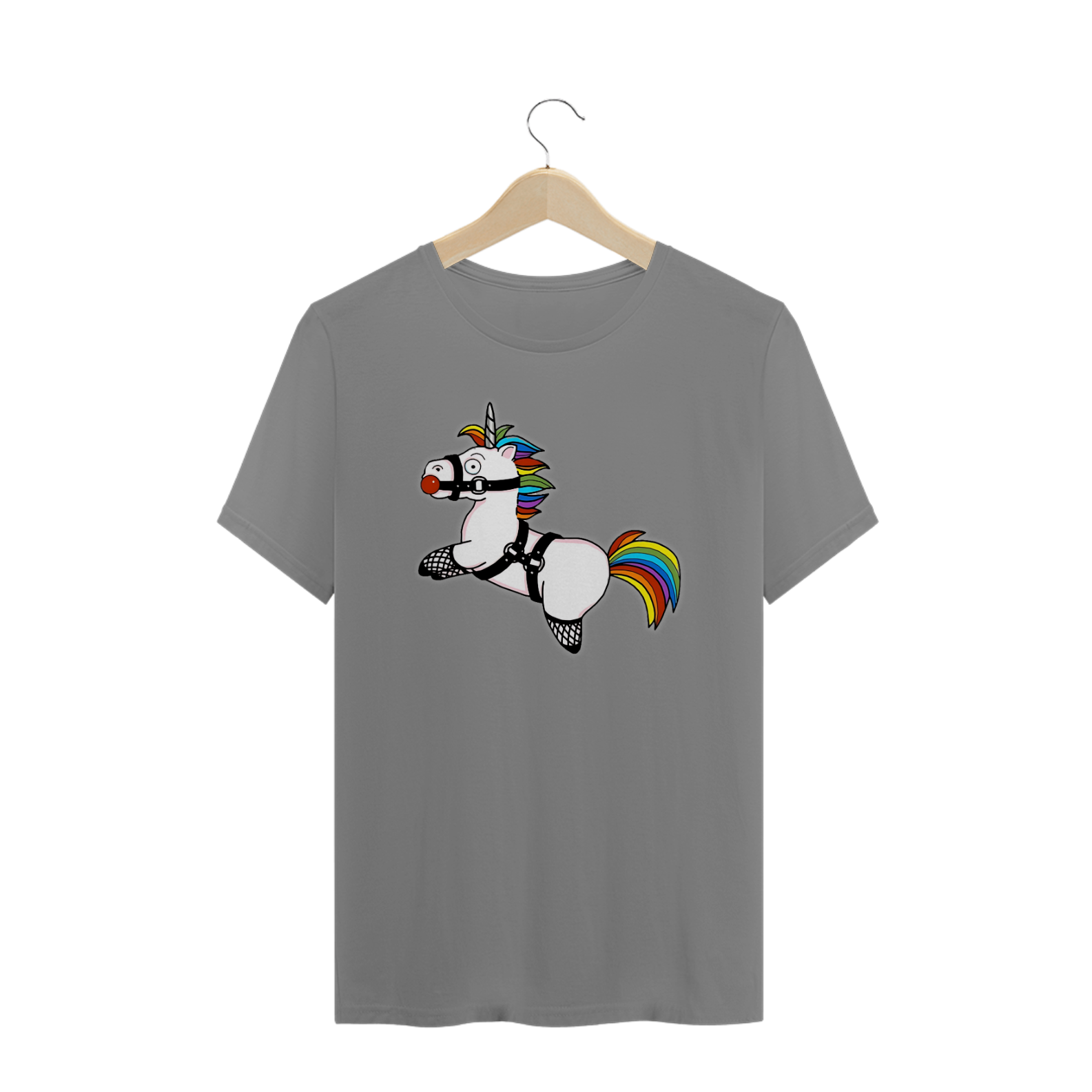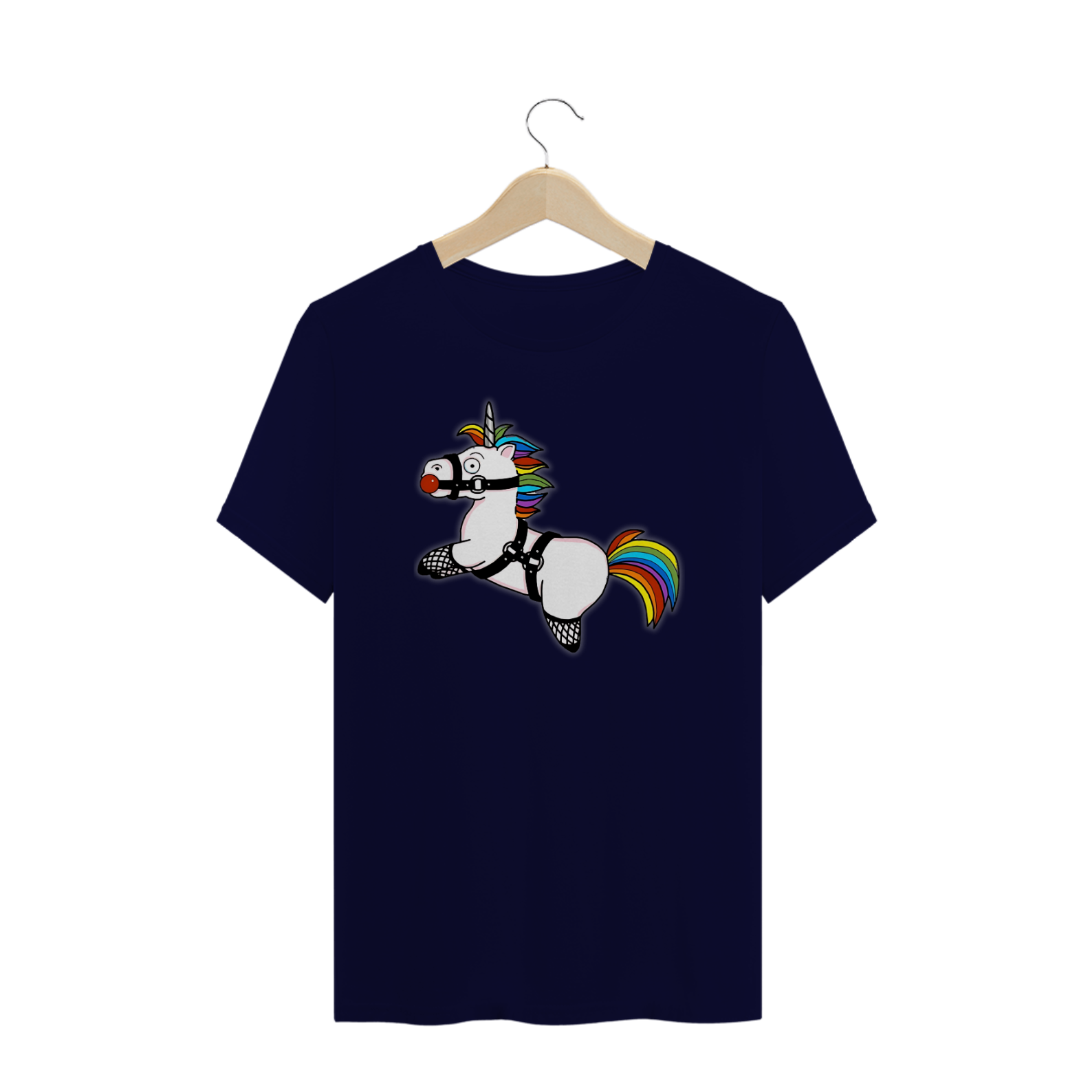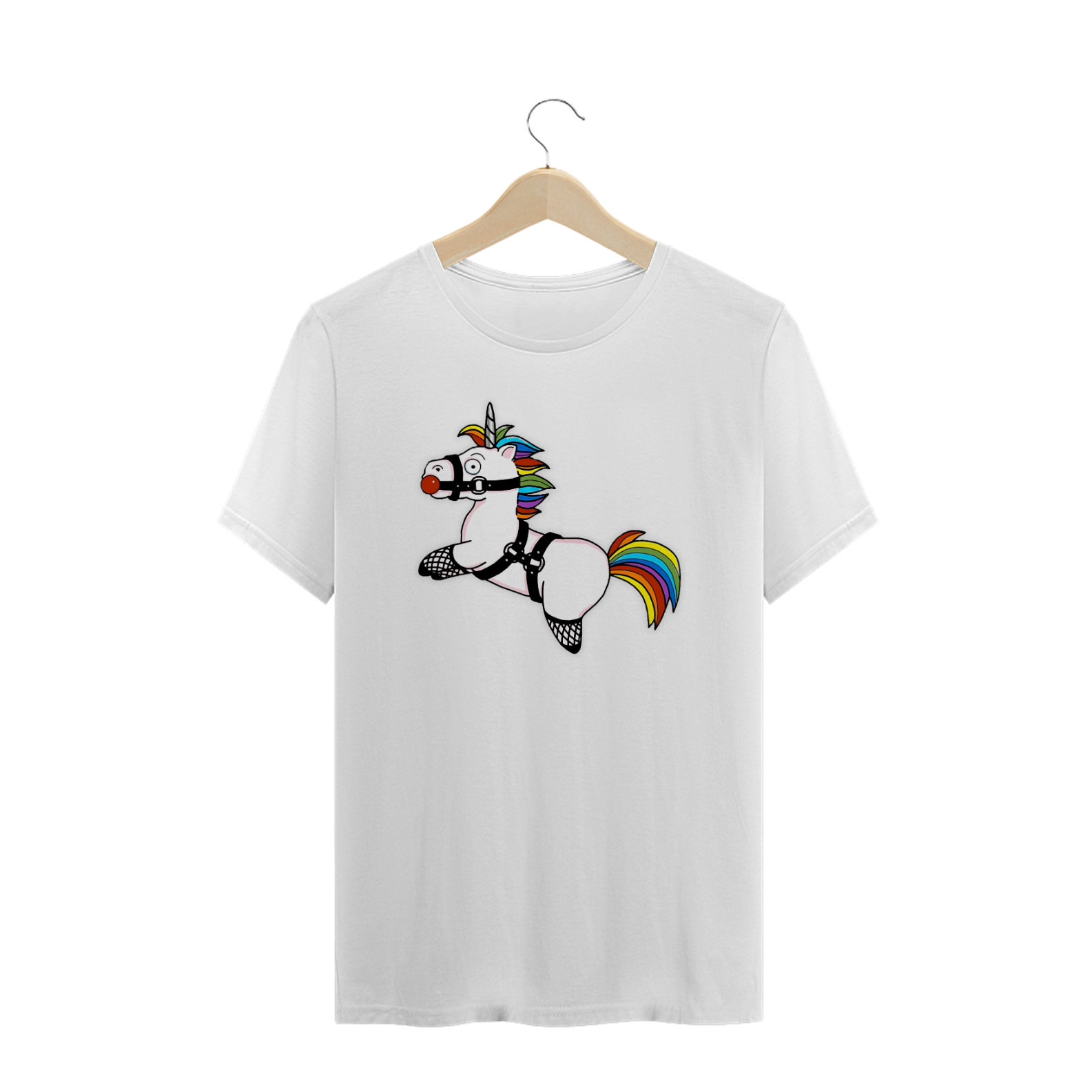 Esta estampa de camiseta é uma expressão ousada e divertida da identidade dentro da comunidade Gay Bear, apresentando a silhueta de um unicórnio fofo com a crina e o rabo nas cores vibrantes do arco-íris. Vestido com um harness, gag ball e meia arrastão, este unicórnio revela sua inclinação pelo BDSM de forma única e cheia de estilo. Ao vestir essa camiseta, você não apenas celebra sua individualidade e preferências, mas também promove uma mensagem de aceitação e liberdade sexual dentro da comunidade LGBTQ+.