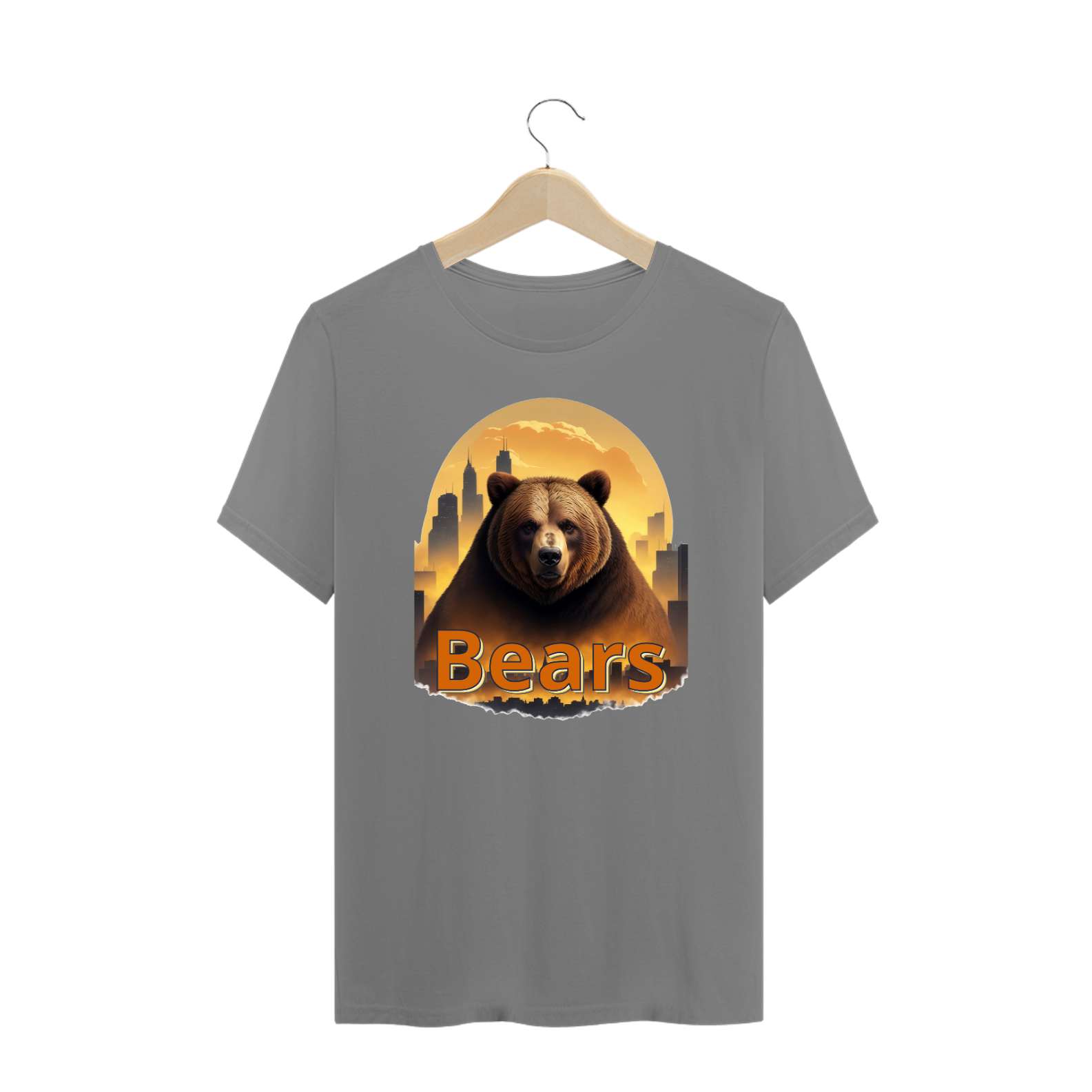 Apresentamos uma estampa que é um tributo à comunidade Gaybear e à celebração de sua identidade. Neste design cativante, a cabeça de um urso se destaca em contraste com um cenário urbano de cidade. A palavra "Bears" está em destaque com um efeito 3D, nas cores da vibrante bandeira Gaybear.