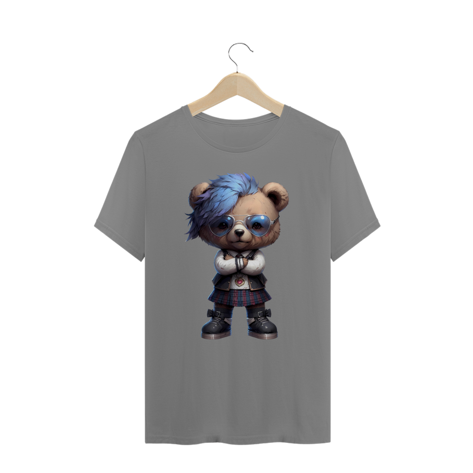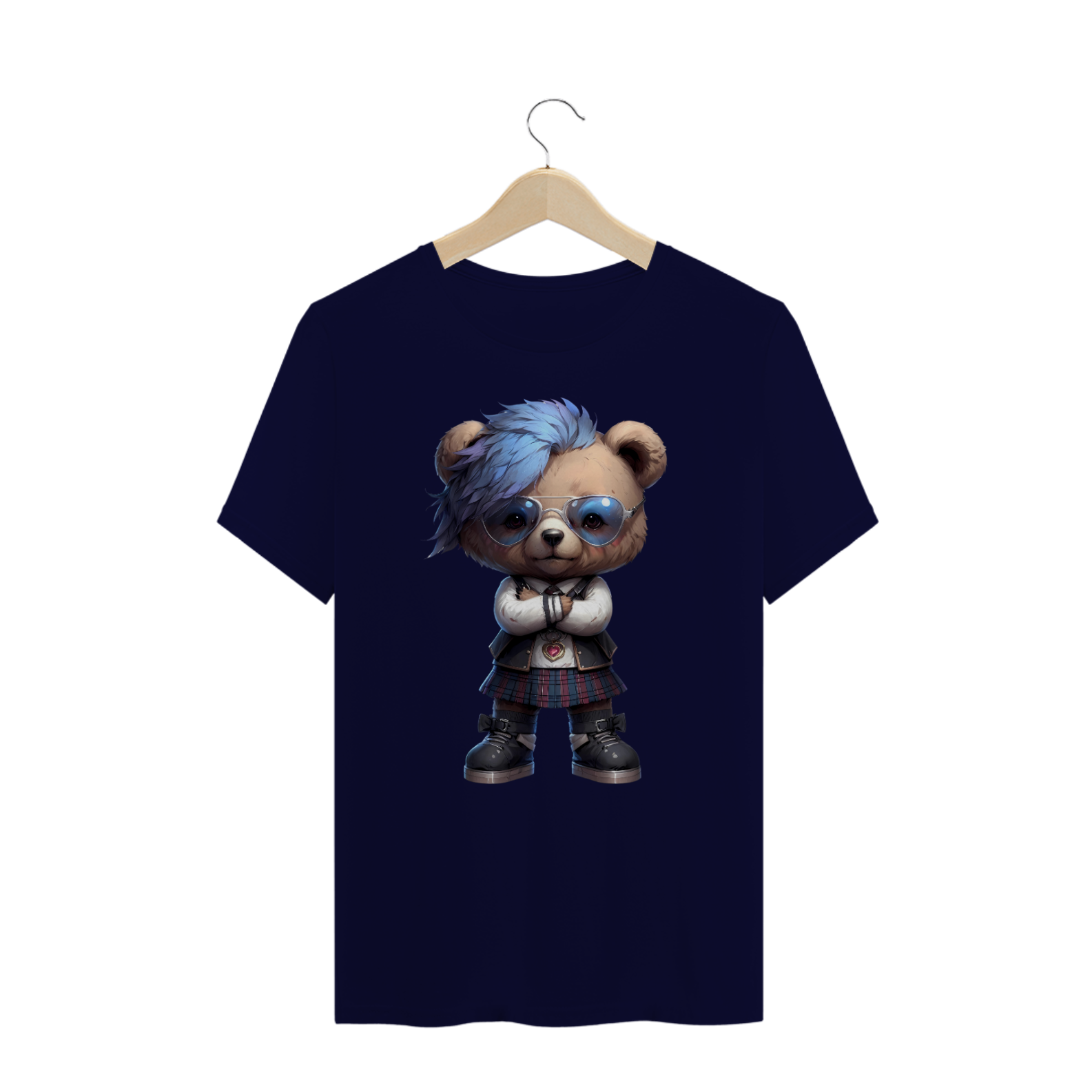 A estampa de camiseta "Ursinho Estiloso" é perfeita para a comunidade Gay Bear que adora unir fofura com atitude. O design apresenta um ursinho carismático com cabelo azul vibrante, óculos estilosos e uma roupa detalhada que inclui uma saia xadrez e um colete, complementados por botas descoladas. Esta estampa é ideal para aqueles que desejam expressar sua personalidade única e seu estilo autêntico, destacando-se em qualquer evento ou encontro social. Com esta camiseta, você não apenas celebra a sua identidade, mas também transmite uma mensagem de confiança e originalidade. Vista esta estampa para mostrar seu lado divertido e estiloso, e conquiste olhares admirados por onde passar.
