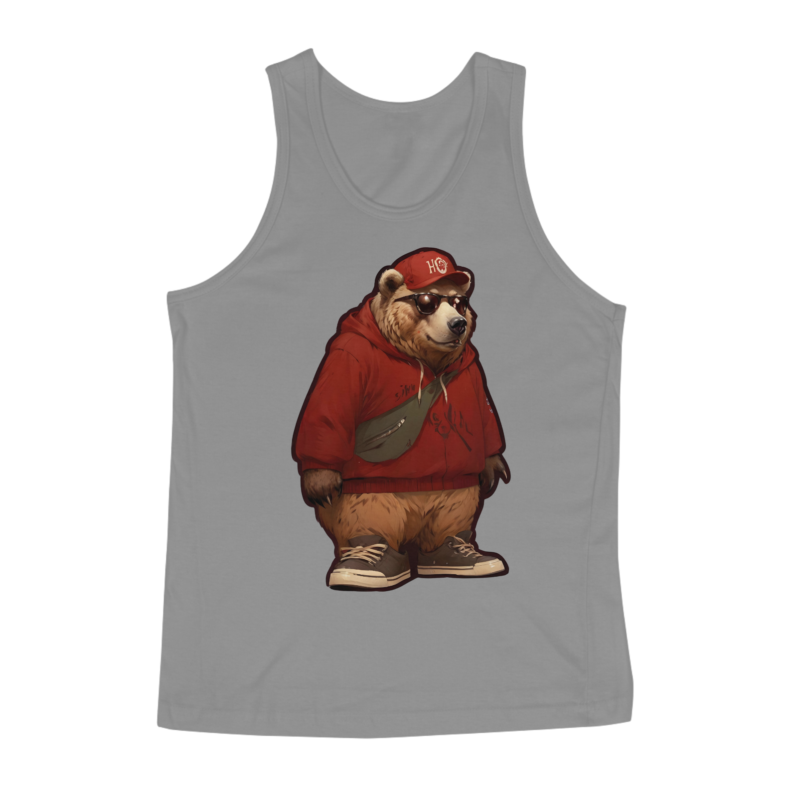 Essa estampa de camiseta apresenta um urso estiloso vestindo roupas de streetwear, incluindo um moletom vermelho, boné, óculos de sol e tênis. O visual descolado do urso transmite uma vibe moderna e urbana, perfeita para aqueles que apreciam a moda e a cultura contemporânea. A combinação de elementos casuais e confortáveis com um toque de ousadia torna esta estampa única e atraente. Voltada para a comunidade Gay Bear, esta estampa celebra a diversidade e o estilo individual. Ideal para quem busca uma peça de roupa que represente orgulho e autenticidade, a camiseta é uma declaração de identidade e moda.