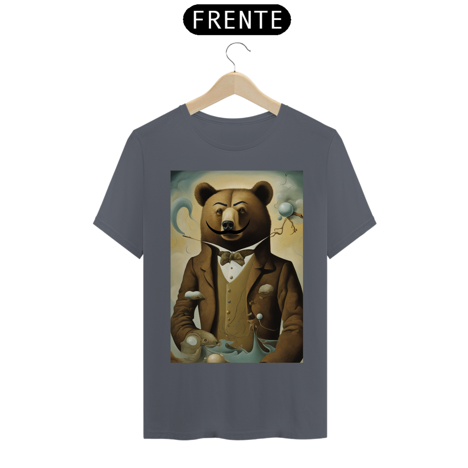 Esta estampa cativante traz uma fusão extraordinária entre a estética ousada do mestre surrealista Salvador Dalí e a expressão única da comunidade Gaybear. O Urso, ostentando o característico bigode e as sobrancelhas extravagantes de Dalí, é imortalizado em um cenário surrealista, elevando a autenticidade e o orgulho LGBTQ+ a novas dimensões. Uma obra de arte vestível que transcende o convencional, esta estampa torna-se um testemunho estilizado da individualidade, convidando os membros da comunidade Gaybear a celebrarem a diversidade de maneira ousada e surreal.