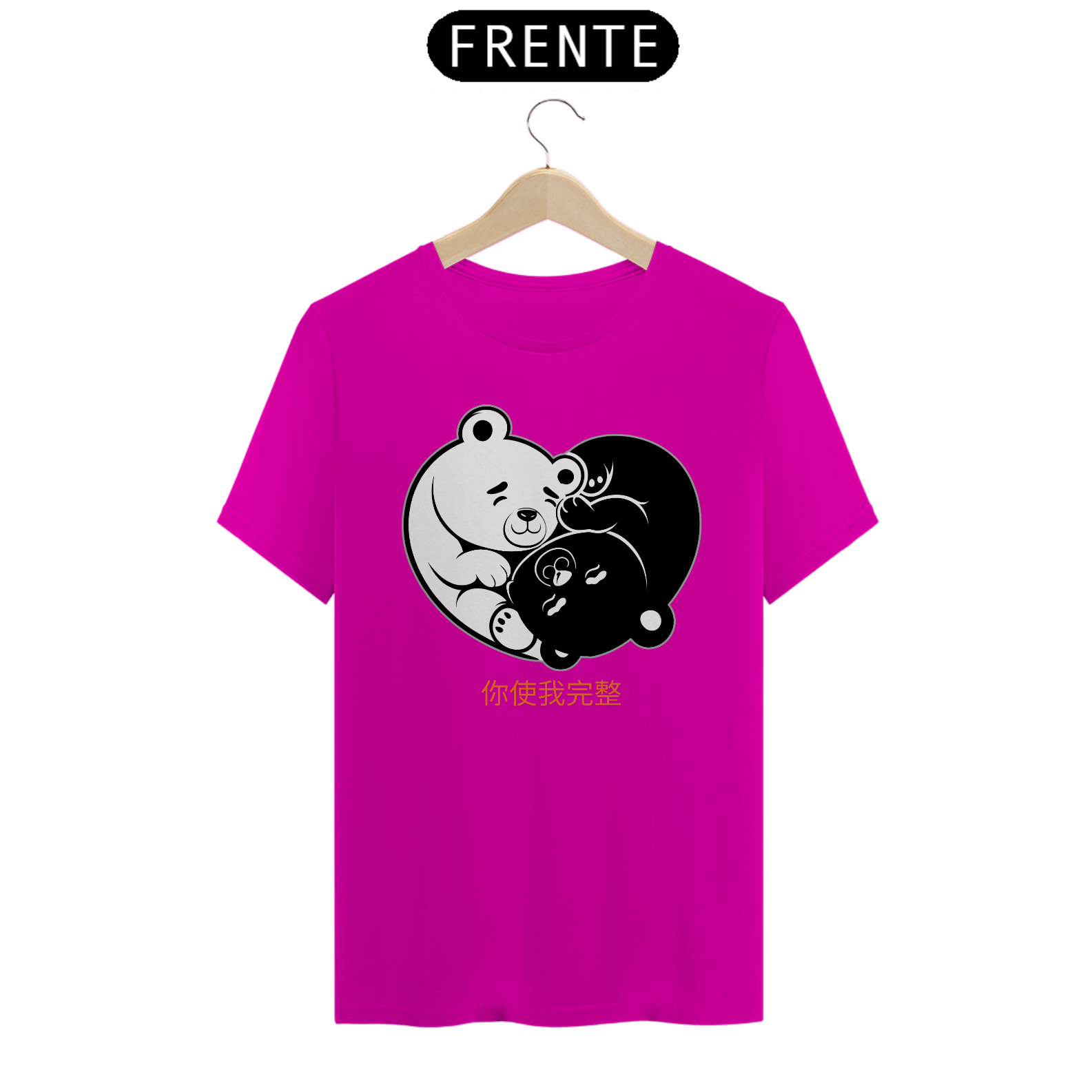 A estampa "Você Me Completa" é uma celebração do amor e da harmonia na comunidade gay Bear, trazendo dois ursos em uma posição que mistura o formato de um coração com o símbolo do Yin Yang. O design em preto e branco simboliza o equilíbrio entre as diferenças, representando como dois opostos podem se complementar perfeitamente. A frase em chinês "你使我完整", que significa "Você me completa", reforça a ideia de conexão e parceria entre os ursos. Perfeita para casais ou qualquer pessoa que valorize a harmonia e o equilíbrio em seus relacionamentos, essa camiseta une romance e simbolismo de maneira única. O visual que combina ternura com a profundidade do Yin Yang torna essa peça especial e representativa dentro da moda Bear, sendo ideal para quem deseja expressar orgulho e amor de forma original e significativa.