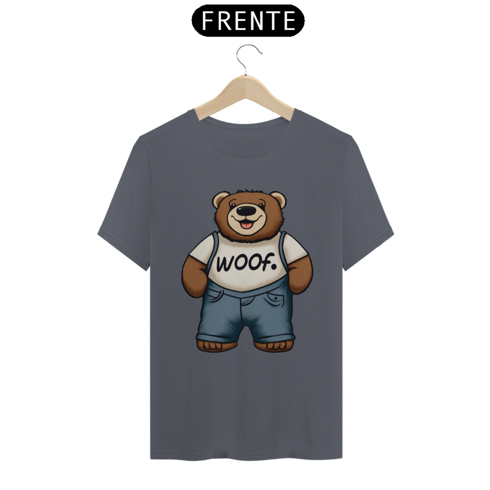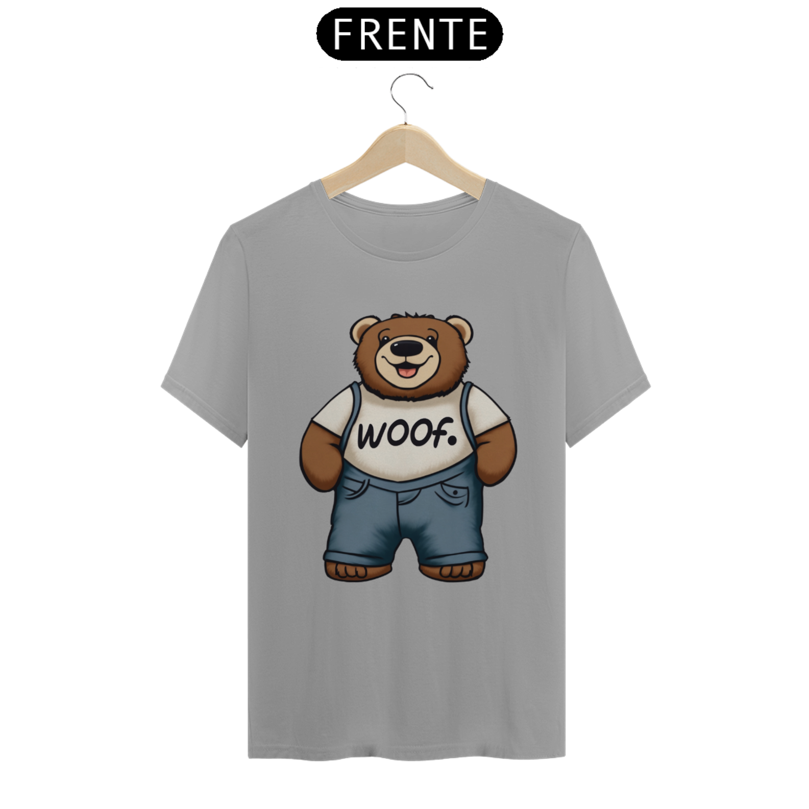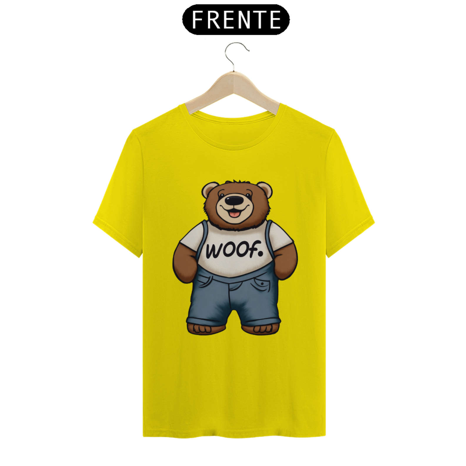 Apresentamos com carinho a nossa camiseta exclusiva que une fofura, estilo e apoio ao movimento LGBT. A estampa traz a imagem encantadora de um Teddy Bear rechonchudo e simpático, usando calças jeans e uma camiseta branca onde se lê a palavra "Woof". No canto superior, o símbolo icônico do movimento LGBT Gaybear está presente, representando a comunidade gay masculina e a celebração da diversidade.