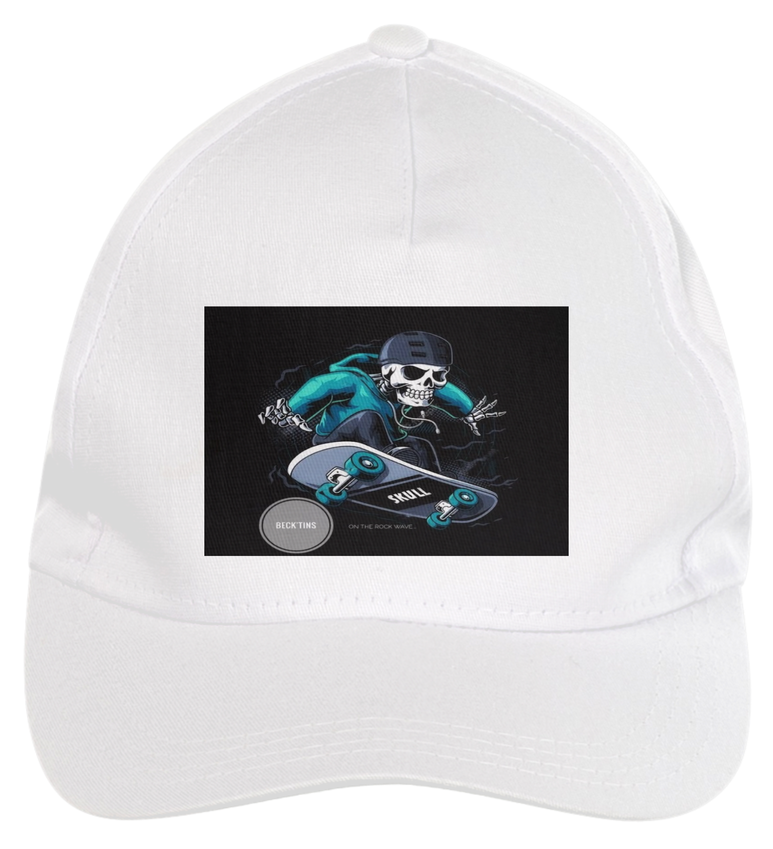 Boné americano com transfer frontal em alta qualidade, aba curva e fecho em tira totalmente regulável com pinos. O modelo veste tamanho "único".