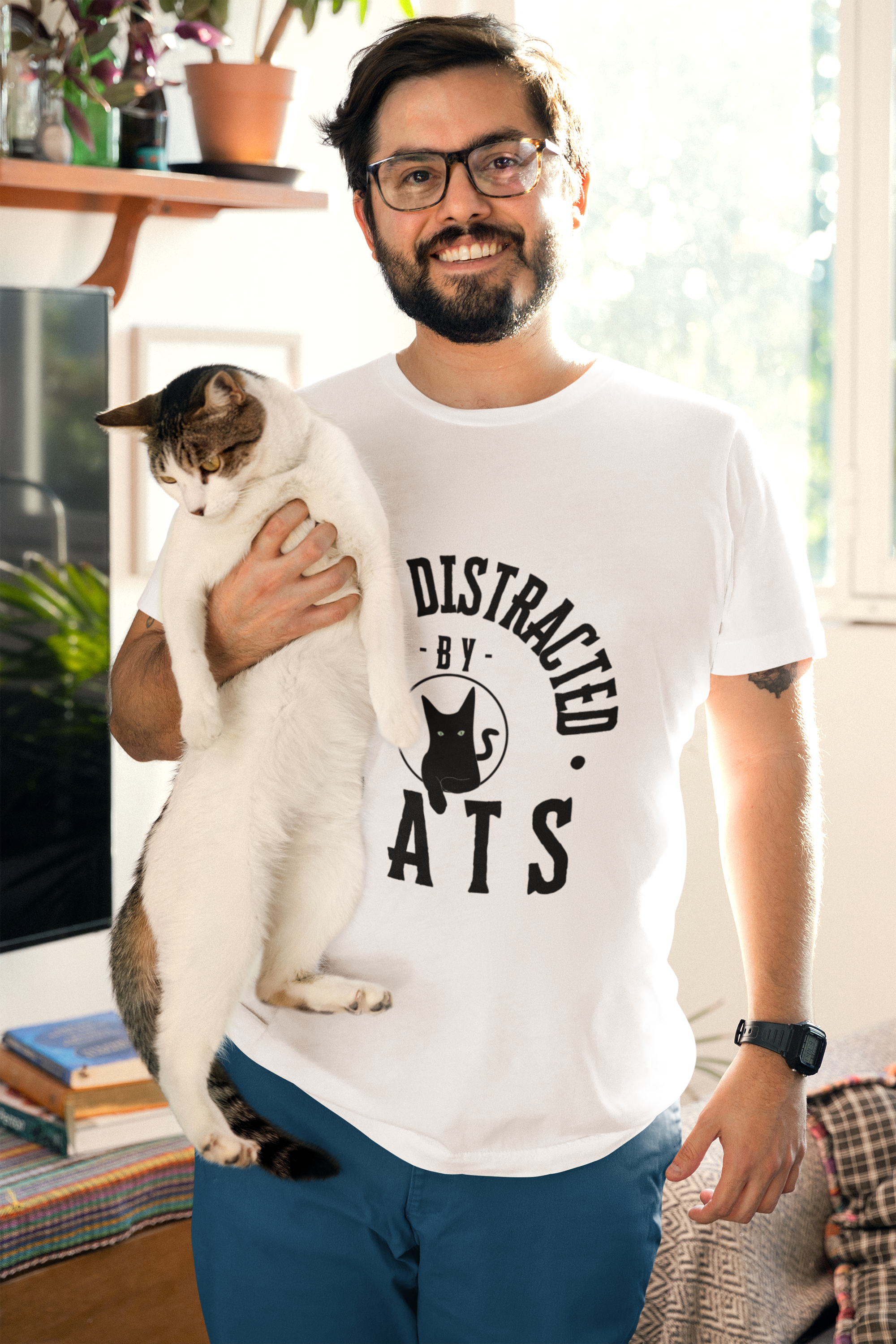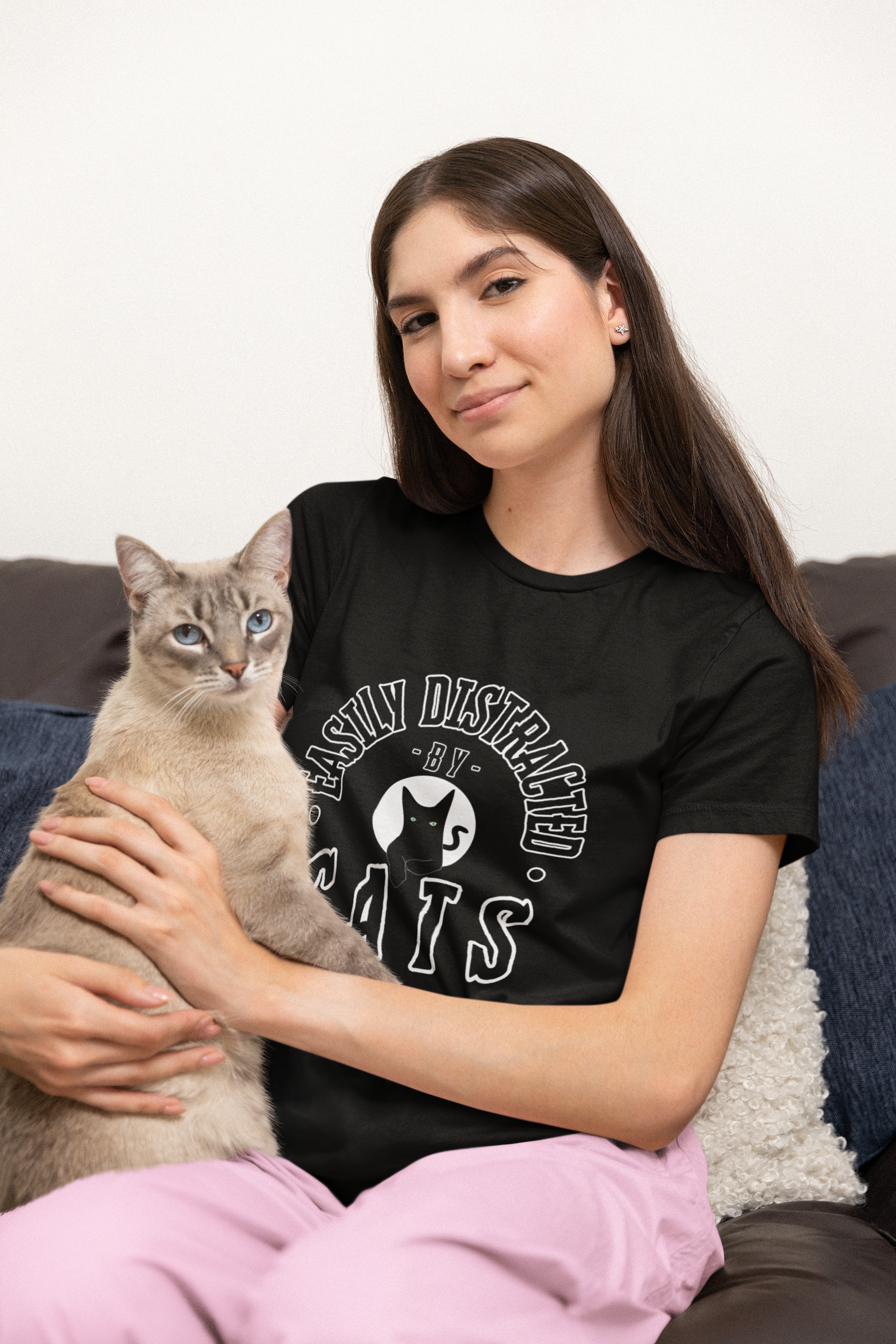 Para os verdadeiros apaixonados por gatos, apresentamos a Camiseta 'Easily Distracted by Cats'.