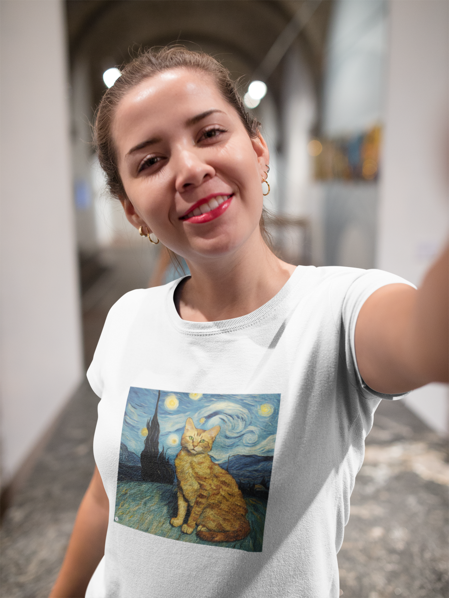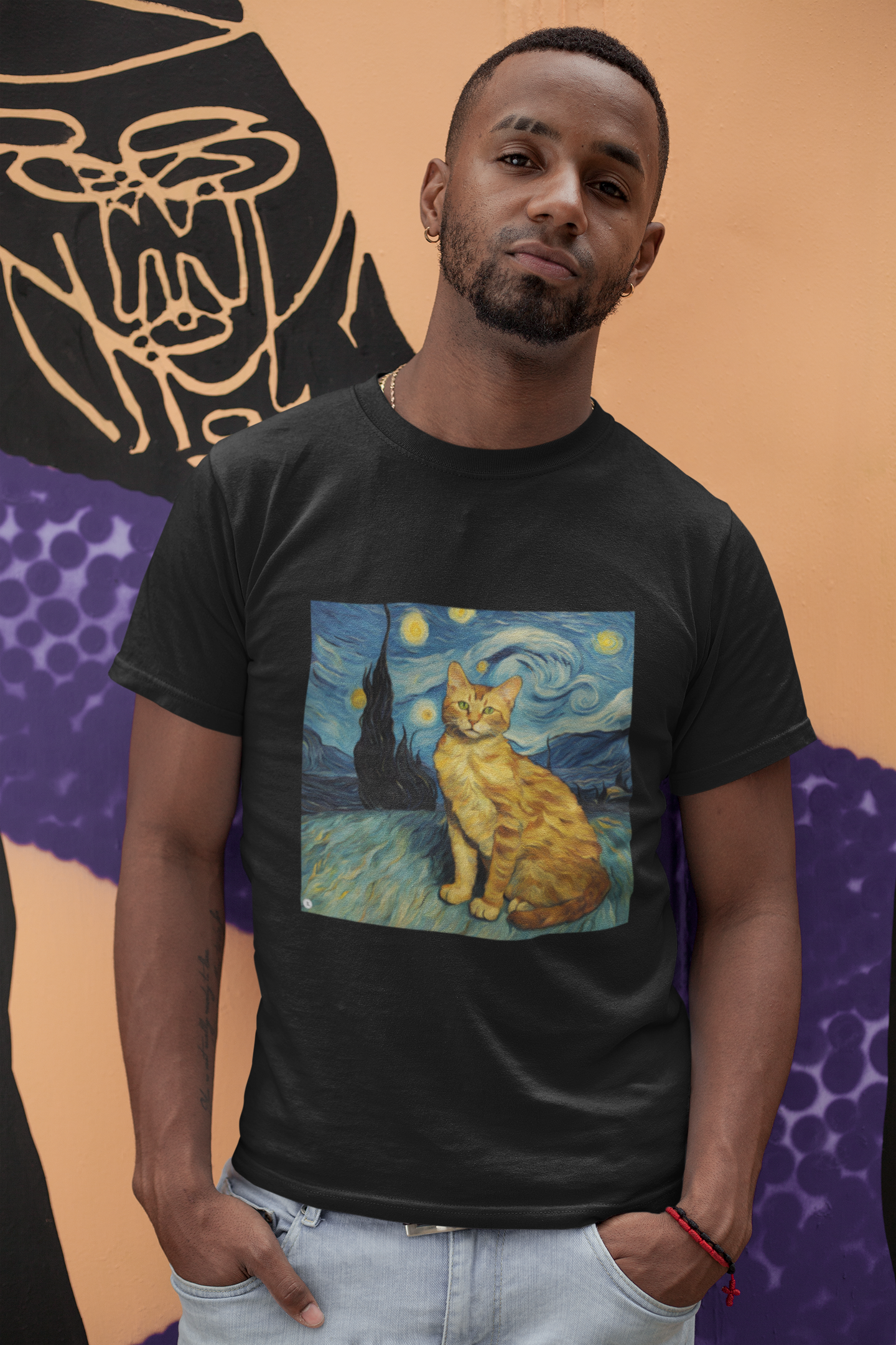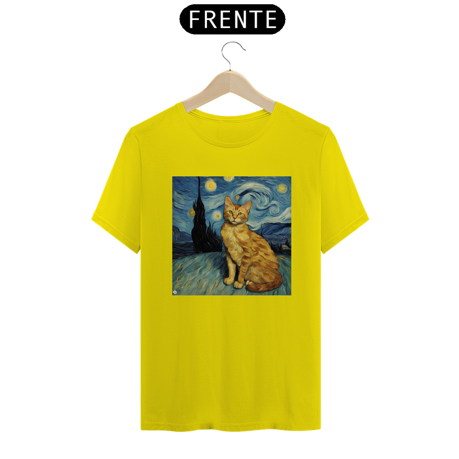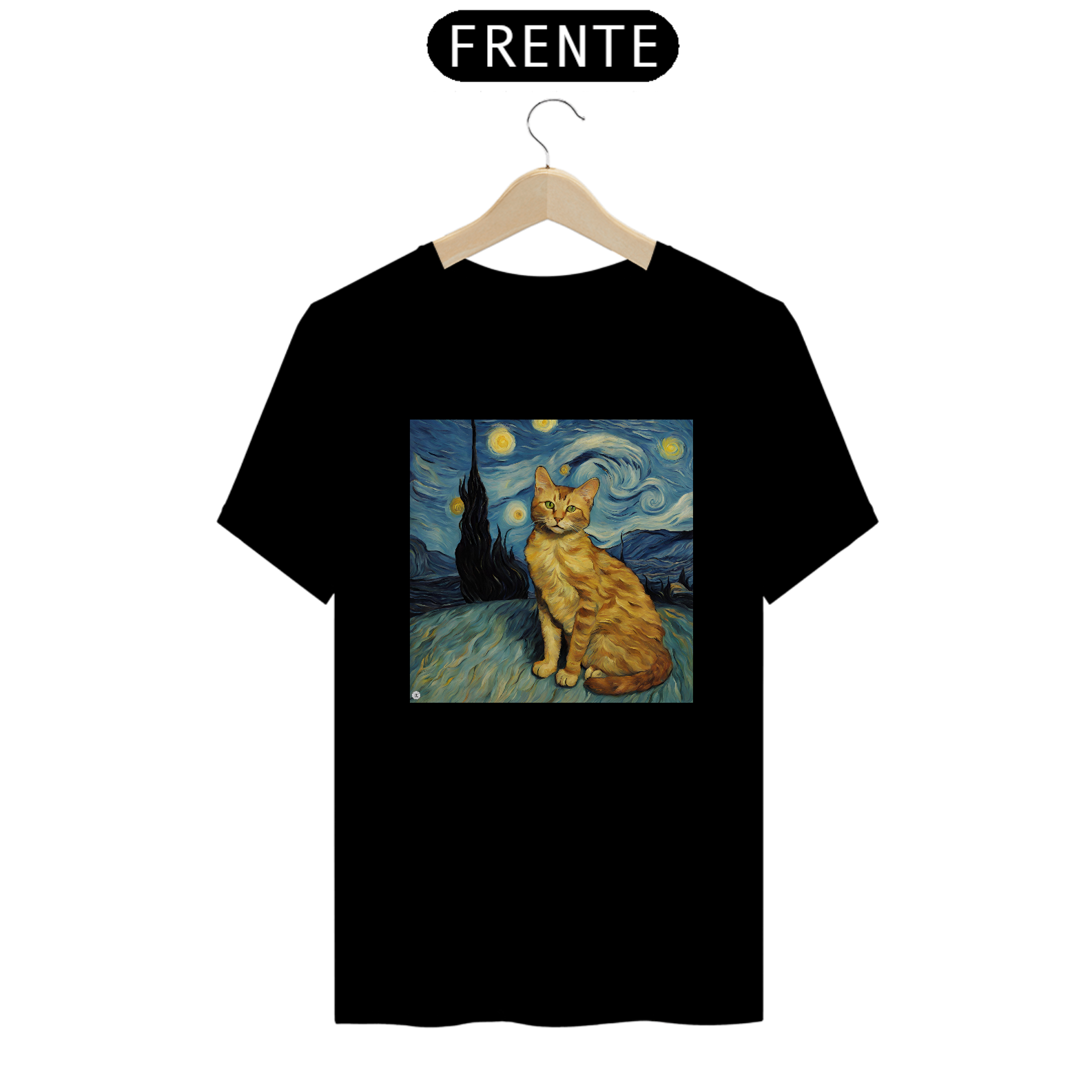 Inspirada na obra-prima de Van Gogh. Se você é um amante da arte ou simplesmente adora gatos, esta camiseta é uma escolha perfeita para expressar sua paixão.