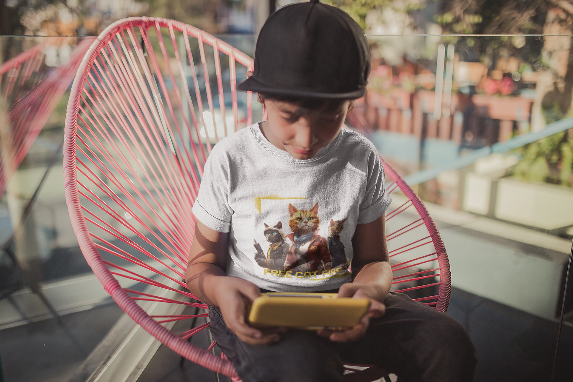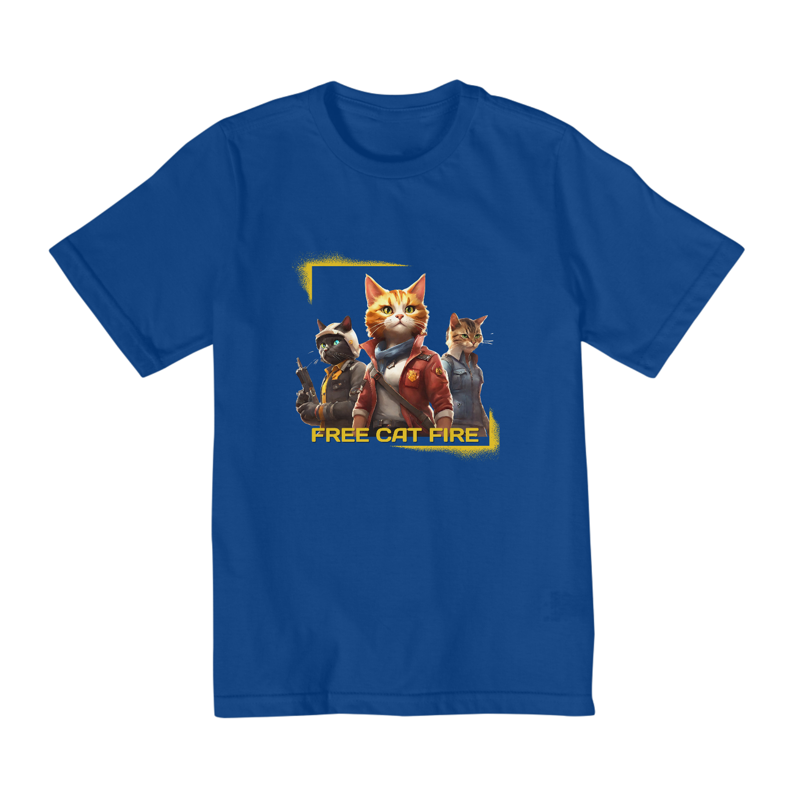Apresentamos a nossa incrível camiseta 'Free Cat Fire', uma fusão única entre a adrenalina do Free Fire e o carisma dos nossos amigos felinos!