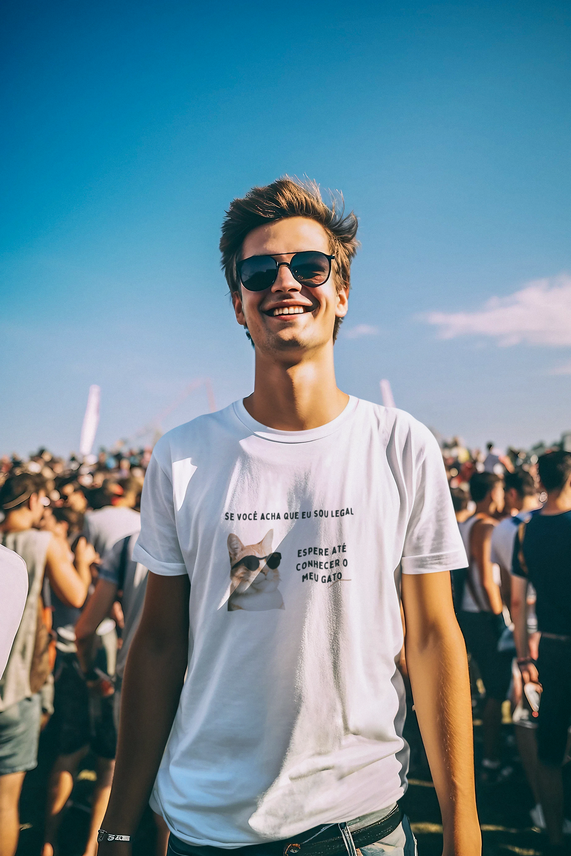 Prepare-se para uma revolução no estilo com nossa camiseta exclusiva "Se você me acha legal, espere até conhecer o meu gato"!