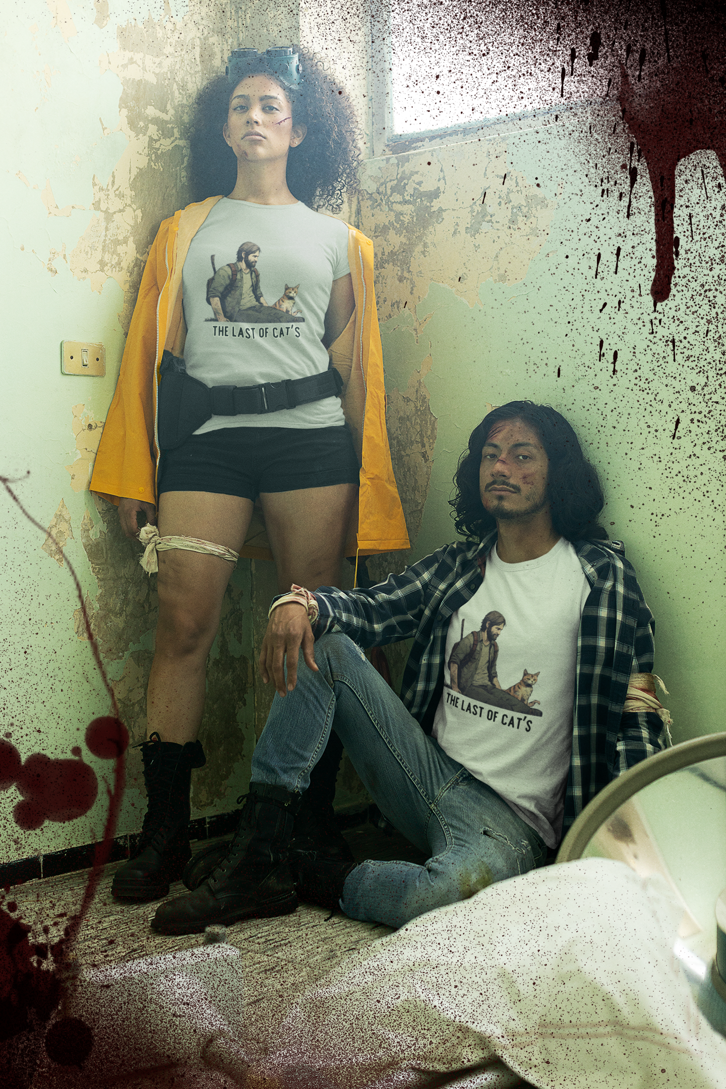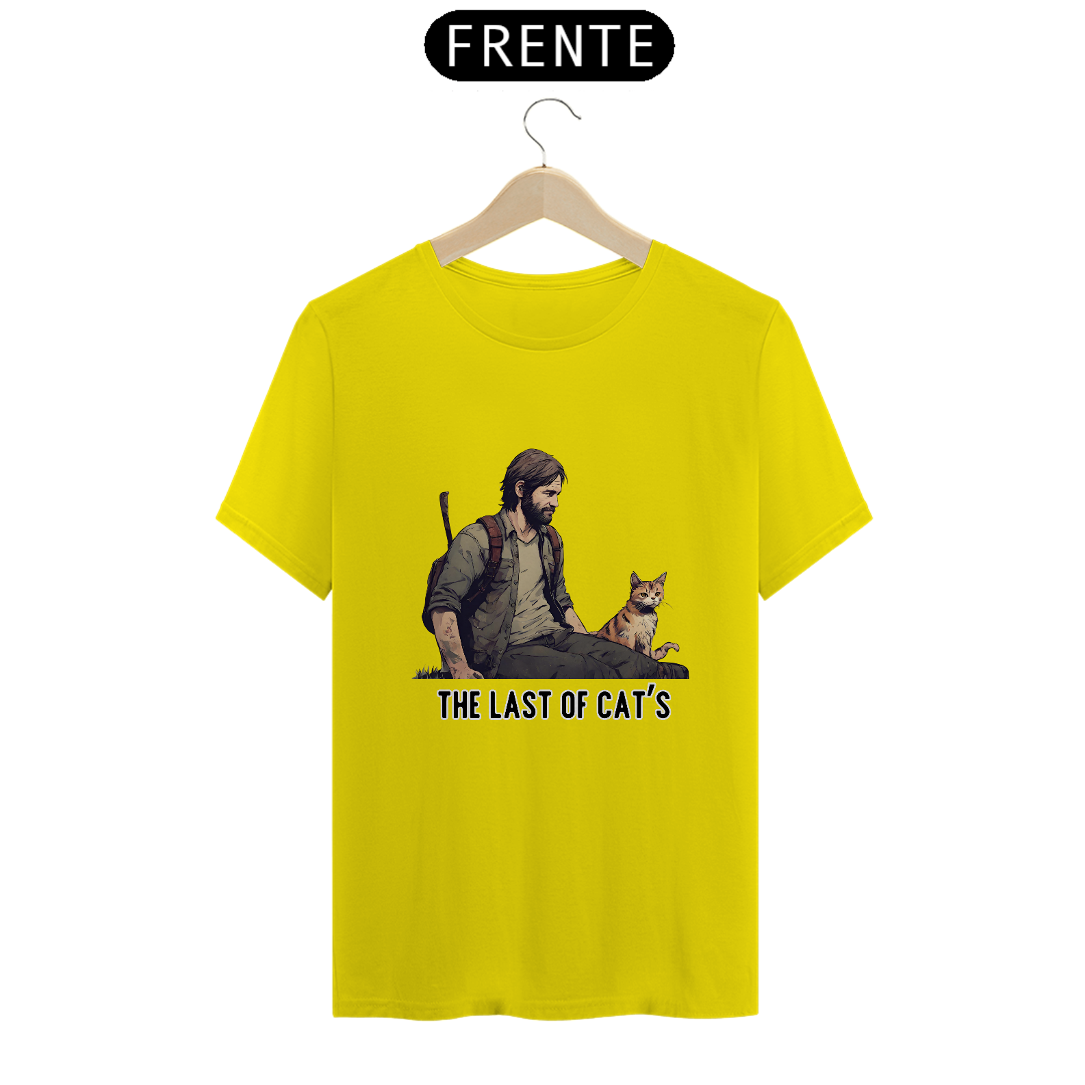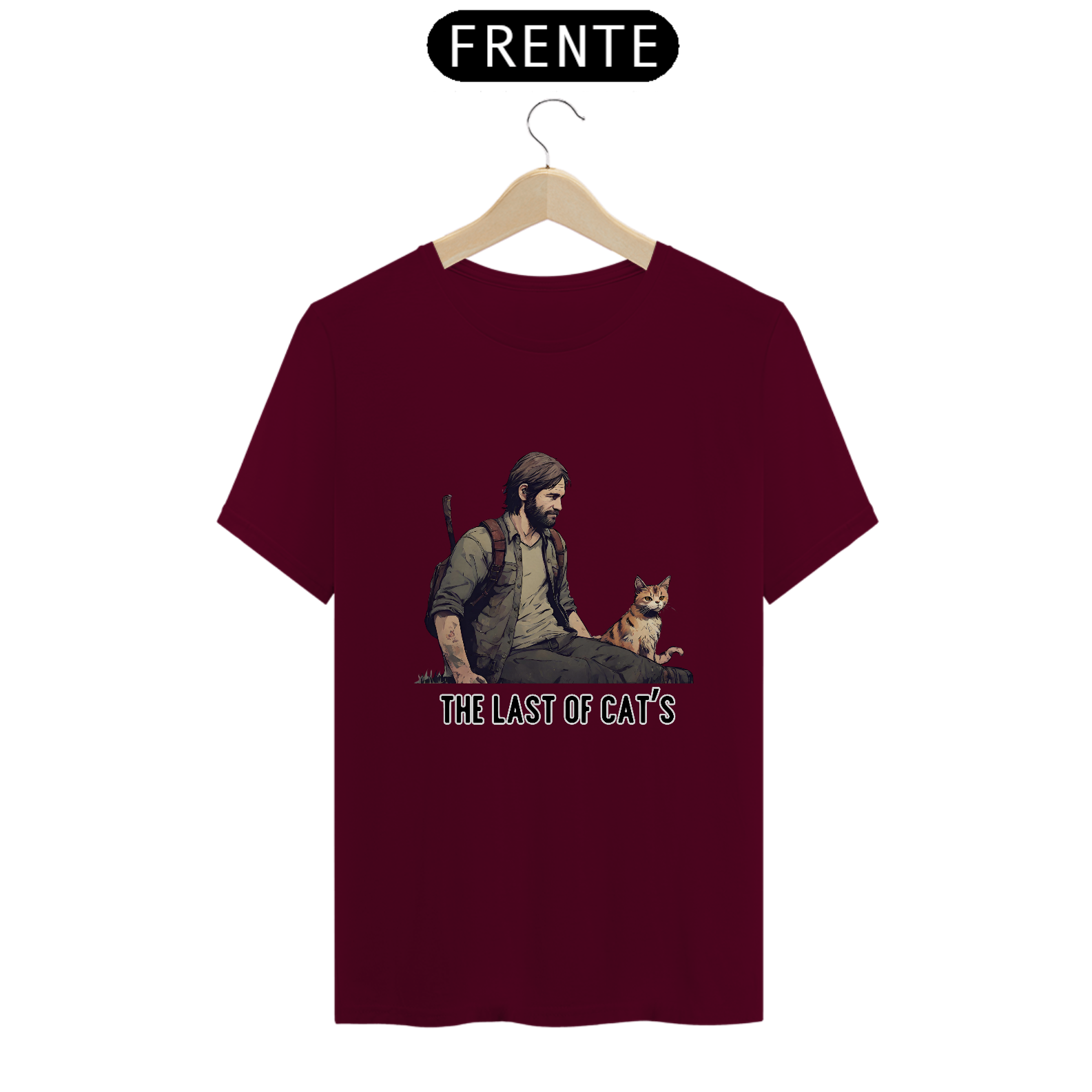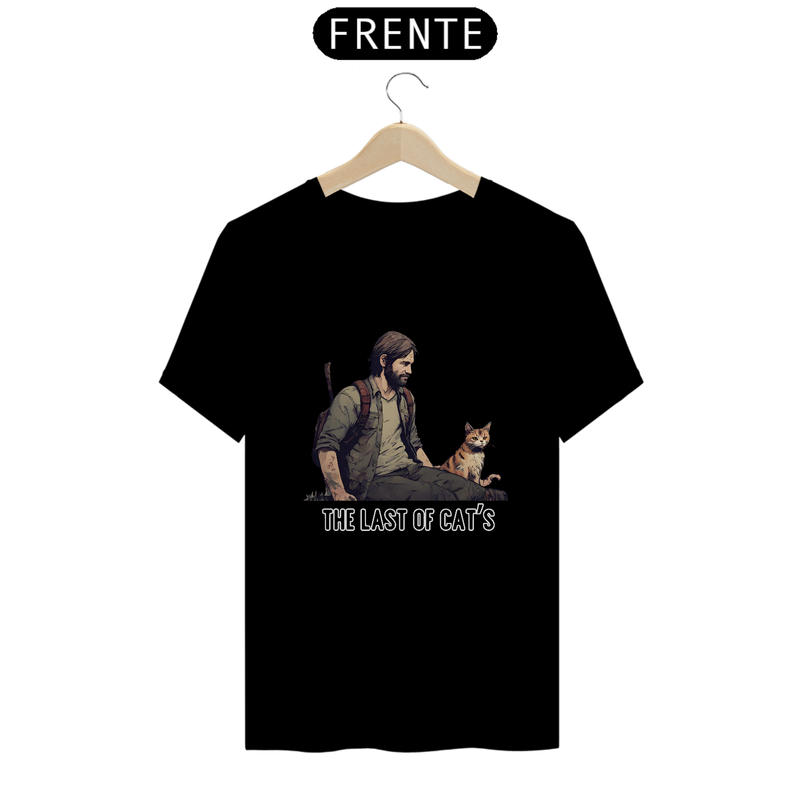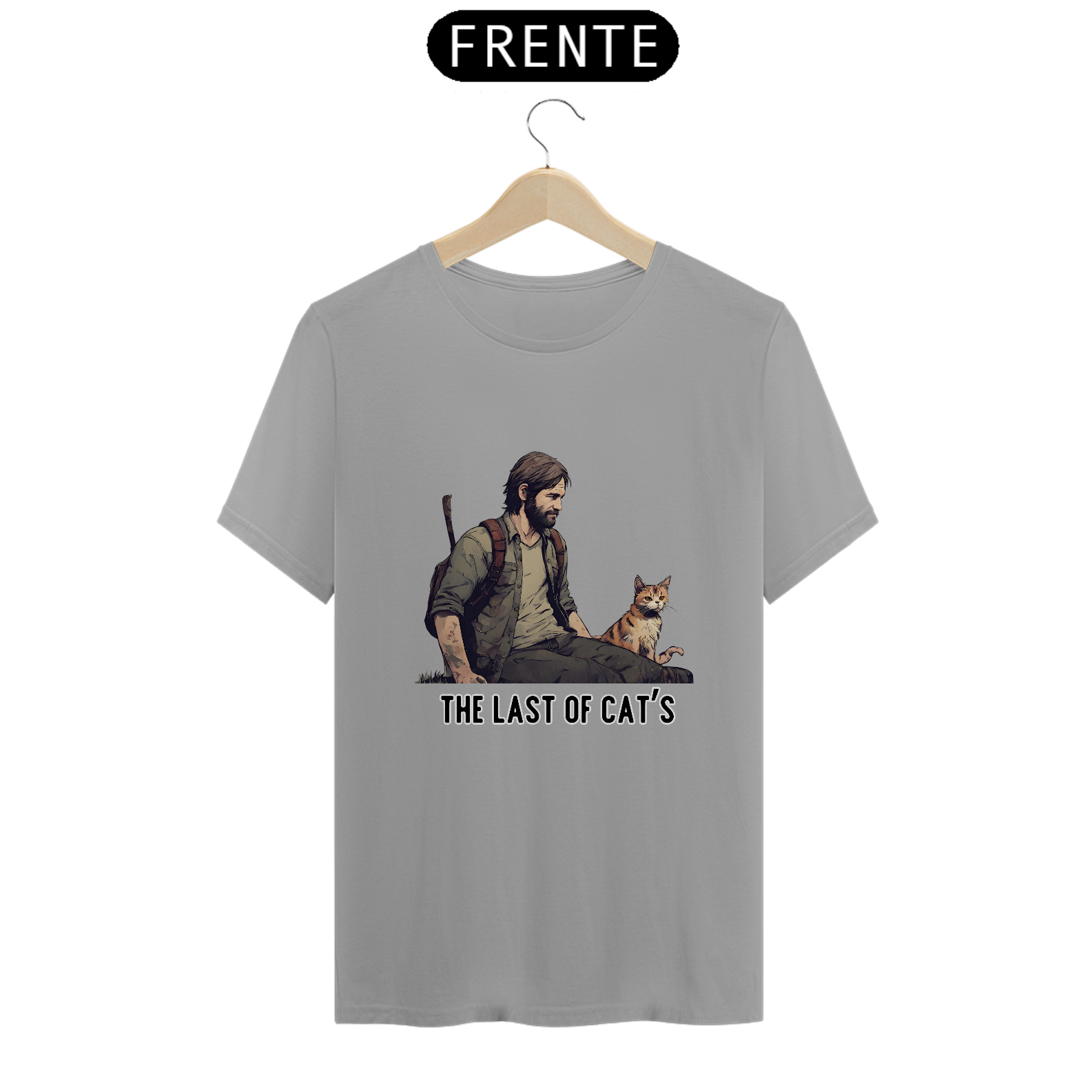 Seja você um sobrevivente habilidoso ou um protetor de felinos, esta camiseta é uma escolha essencial para seu guarda-roupa.