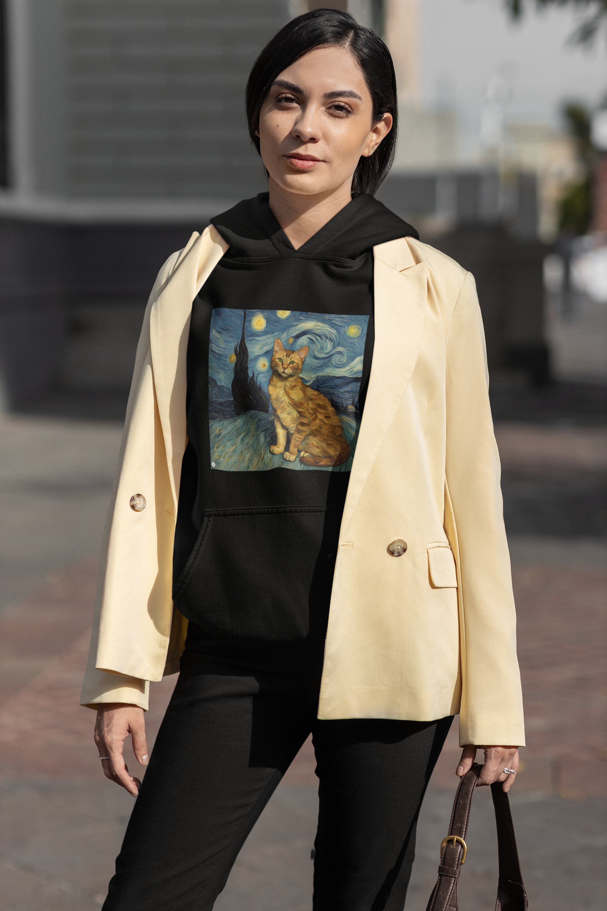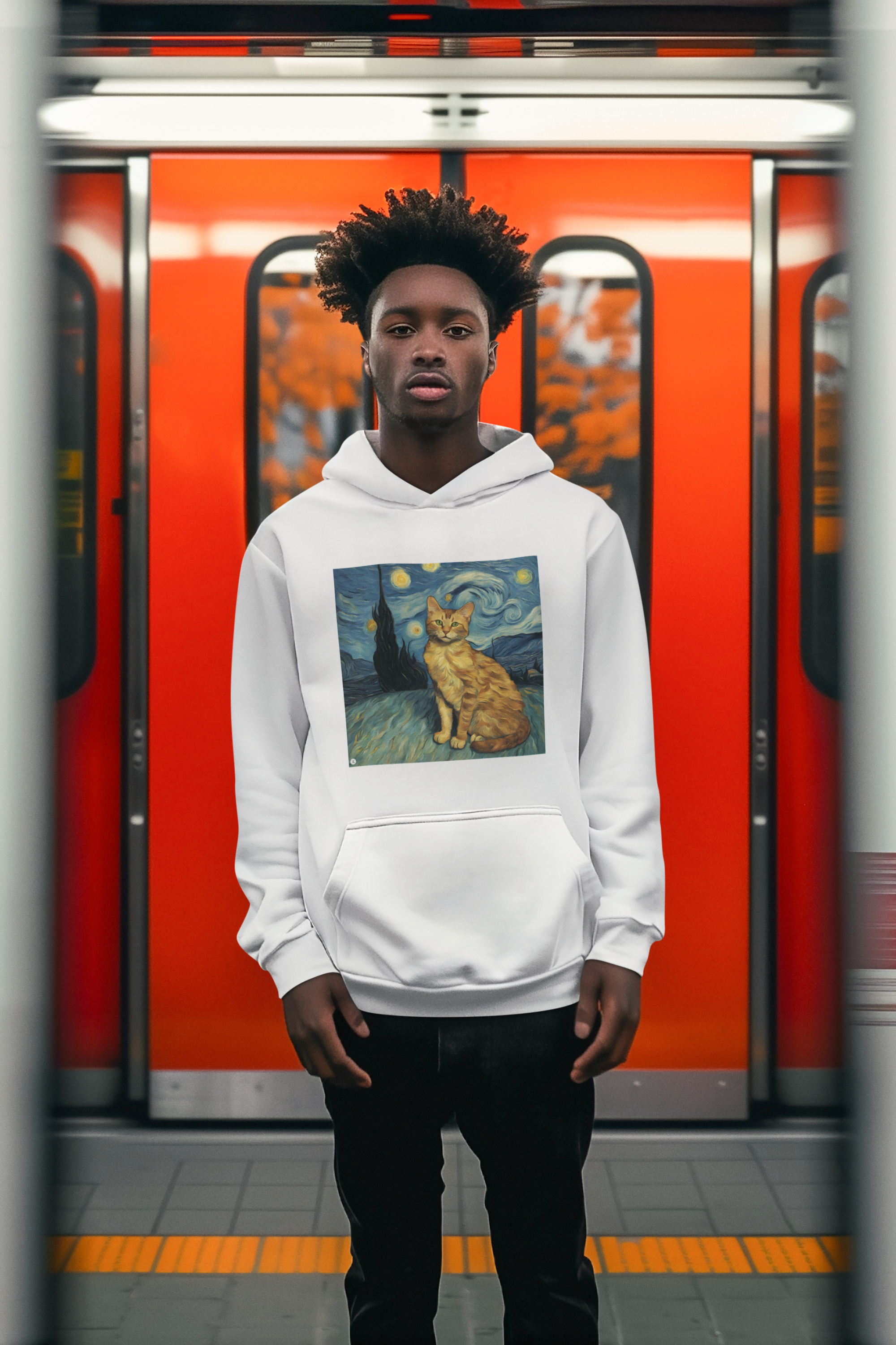 Inspirado na icônica obra de Vincent van Gogh, este moletom combina o talento artístico do mestre com a adorável presença felina.