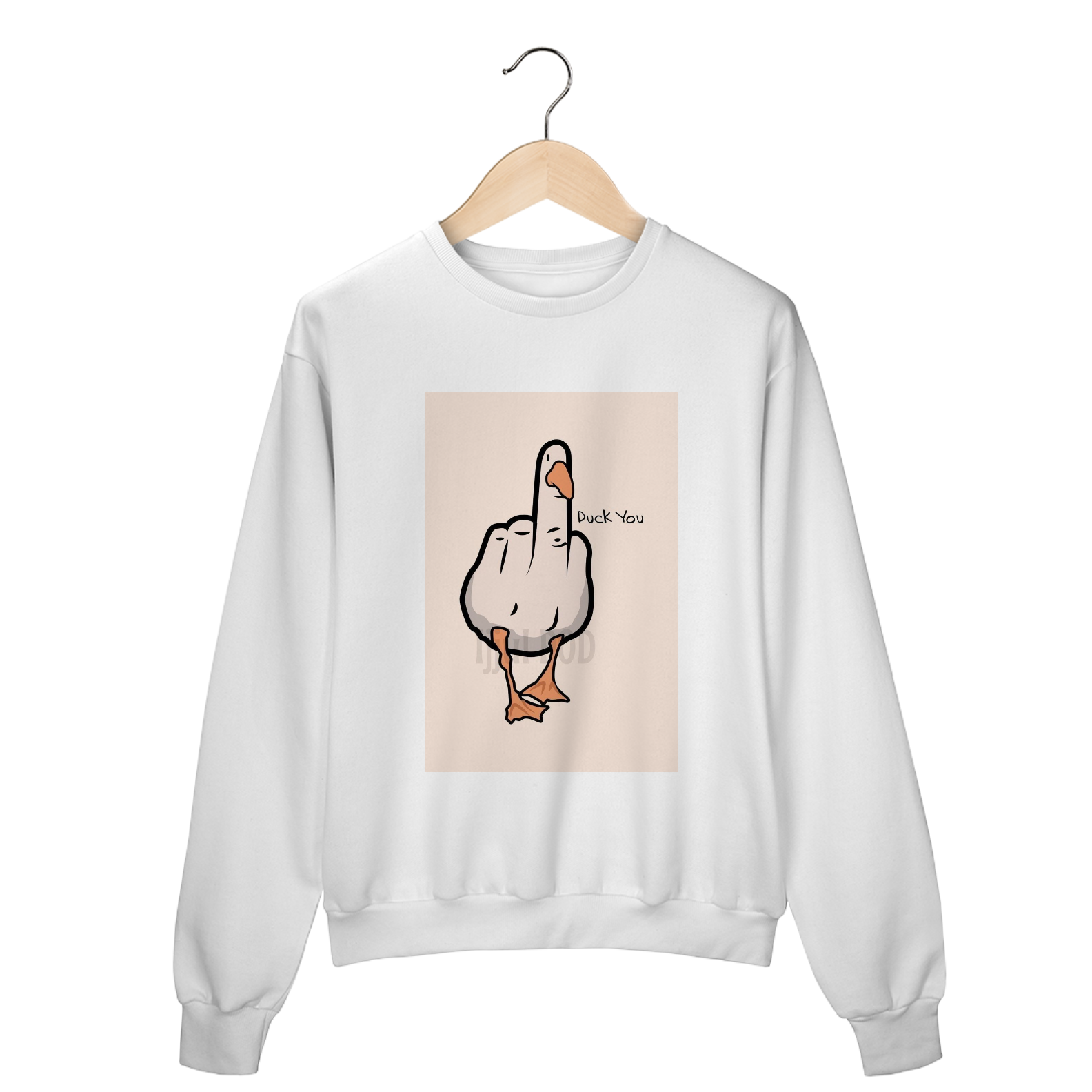 Confeccionado com material de alta qualidade (45% algodão e 55% poliéster), o moletom fechado possui interior flanelado, punho e barra em retilínea, garantindo aquecimento e durabilidade. A estampa irreverente e exclusiva, centralizada na frente, apresenta um pato estilizado em forma de mão fazendo um gesto ousado, com a frase "DUCK YOU" ao lado. Um design único que simboliza resiliência, autoconfiança e a coragem de enfrentar qualquer desafio com humor e autenticidade.