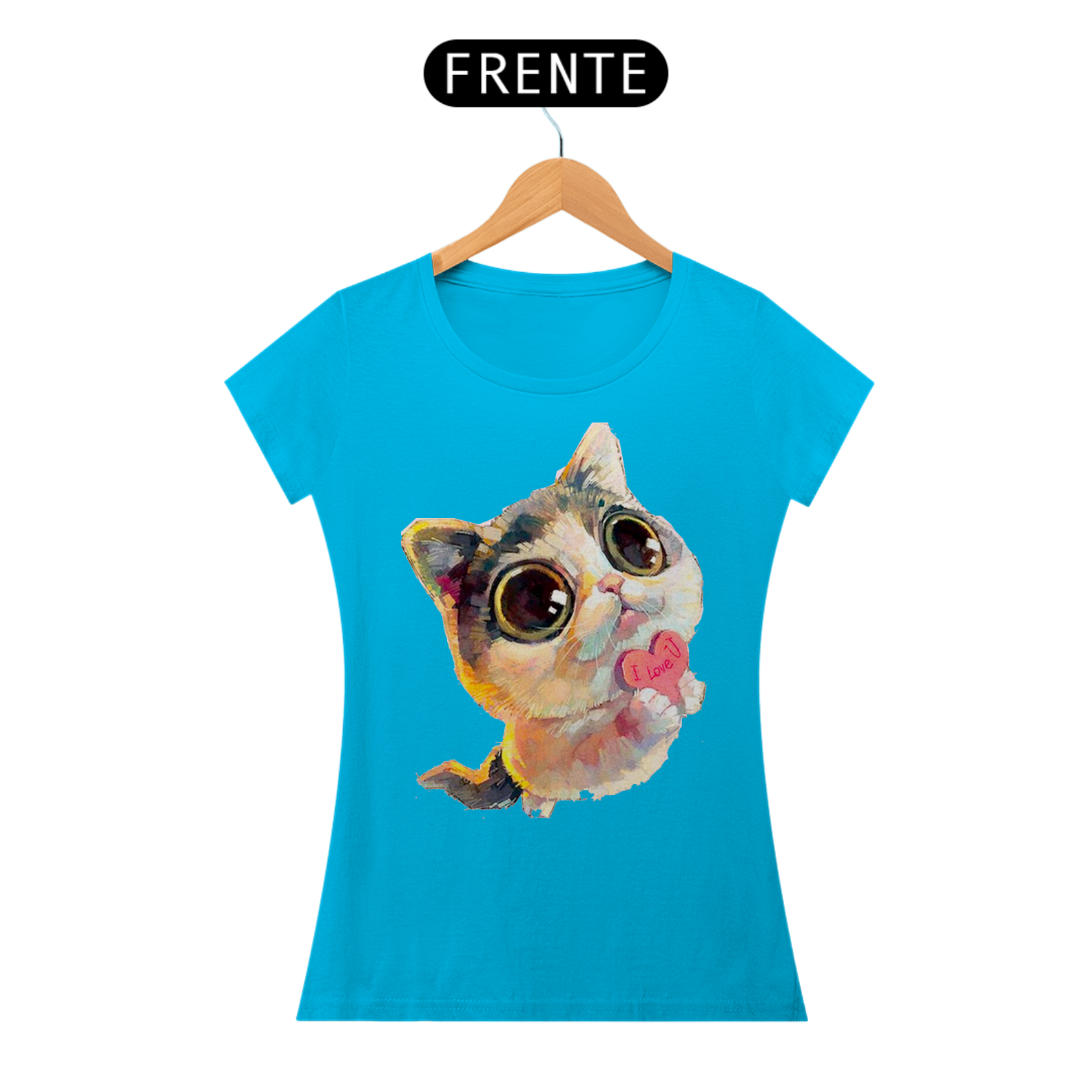 Esta camiseta feminina traz um toque de charme e fofura com a adorável presença de um gato na estampa. O felino é representado de forma delicada e cativante, com seus olhos brilhantes e uma expressão curiosa. Perfeita para quem ama esses animais encantadores.