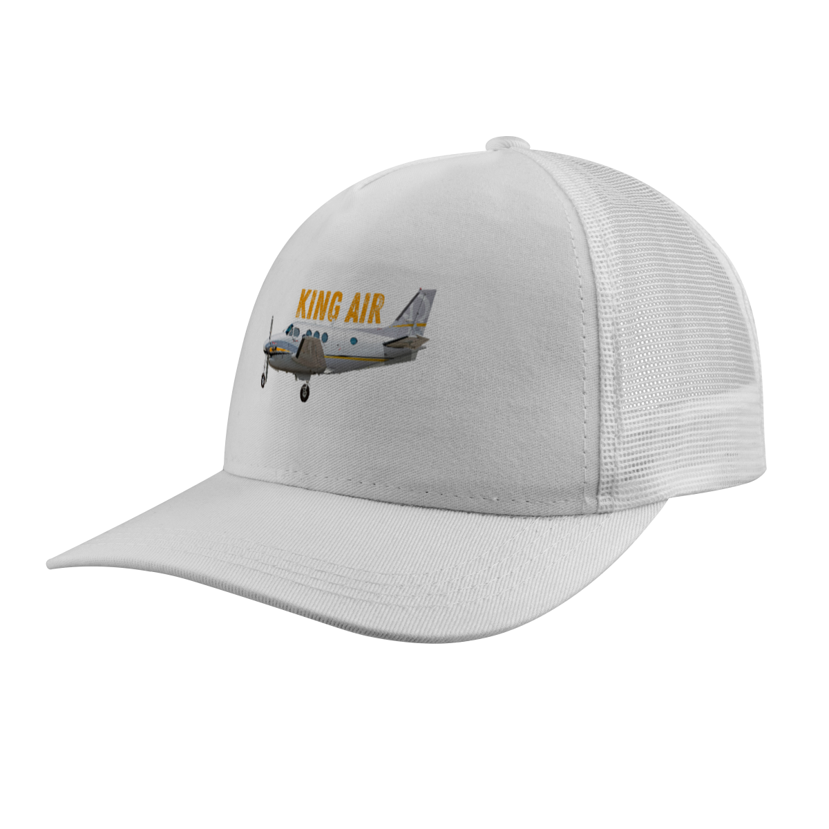 Boné modelo trucker com tela com estampa inspirada na aviação.