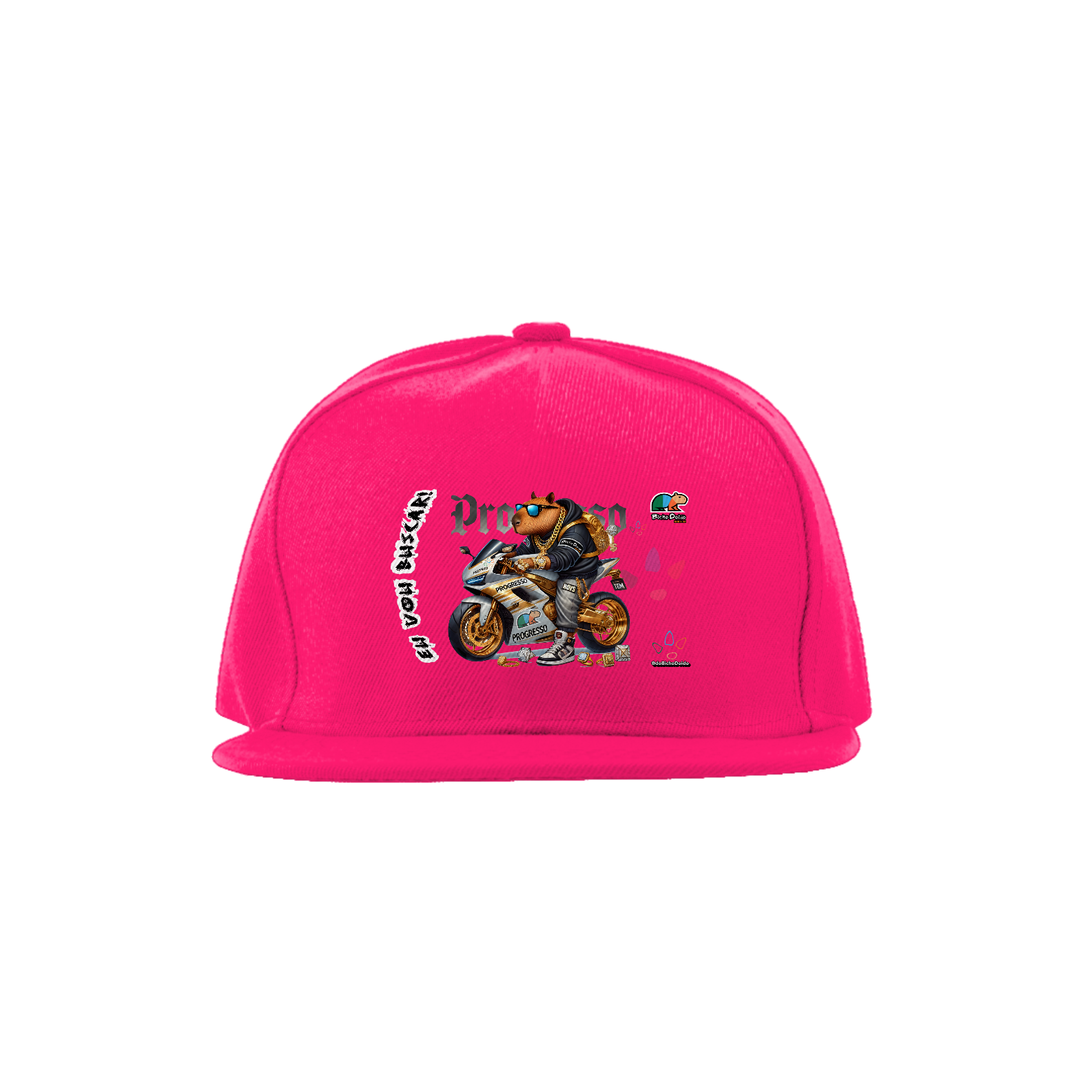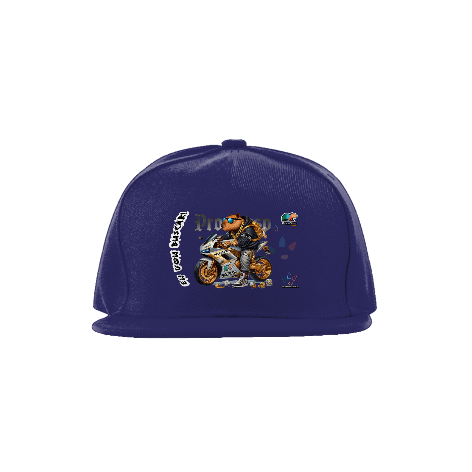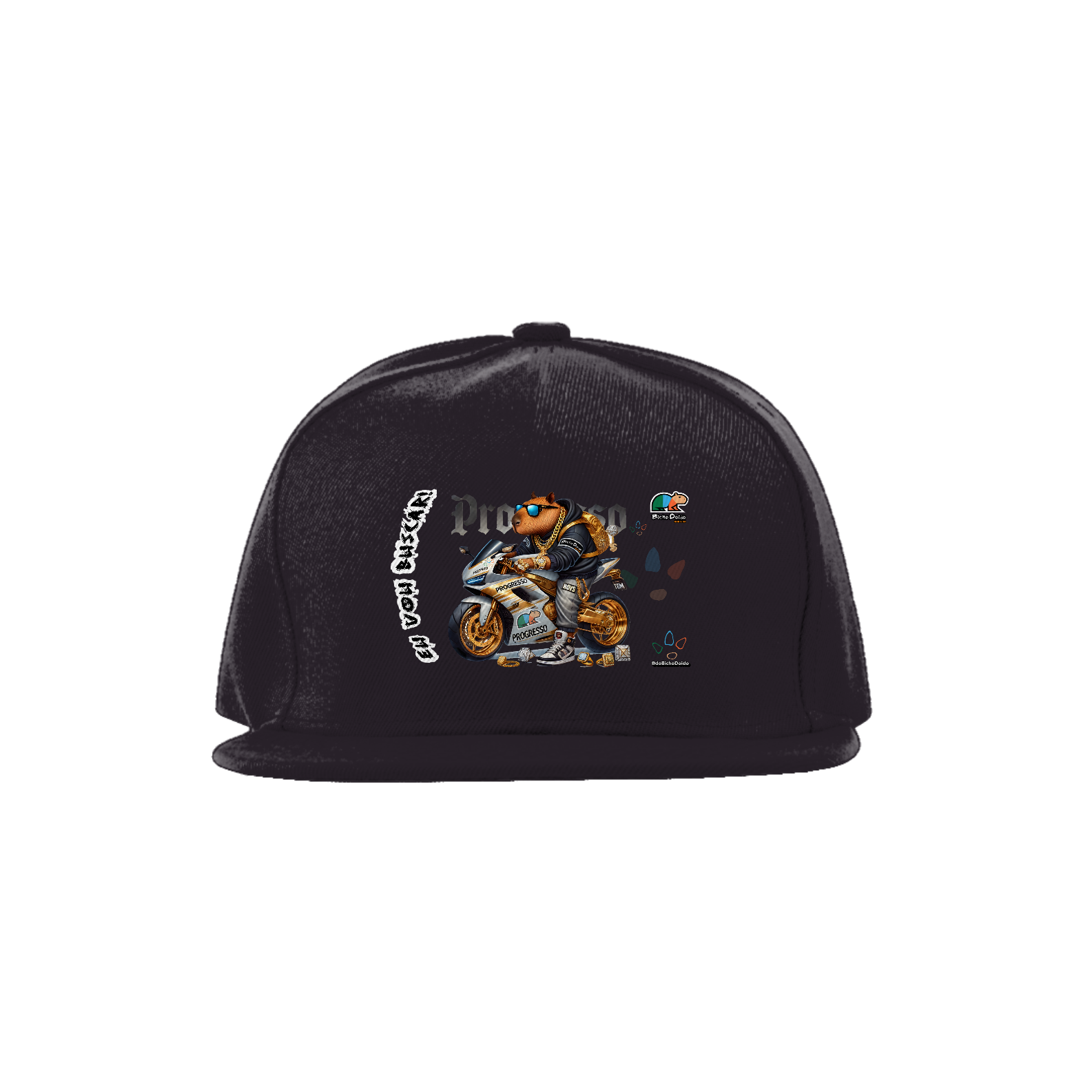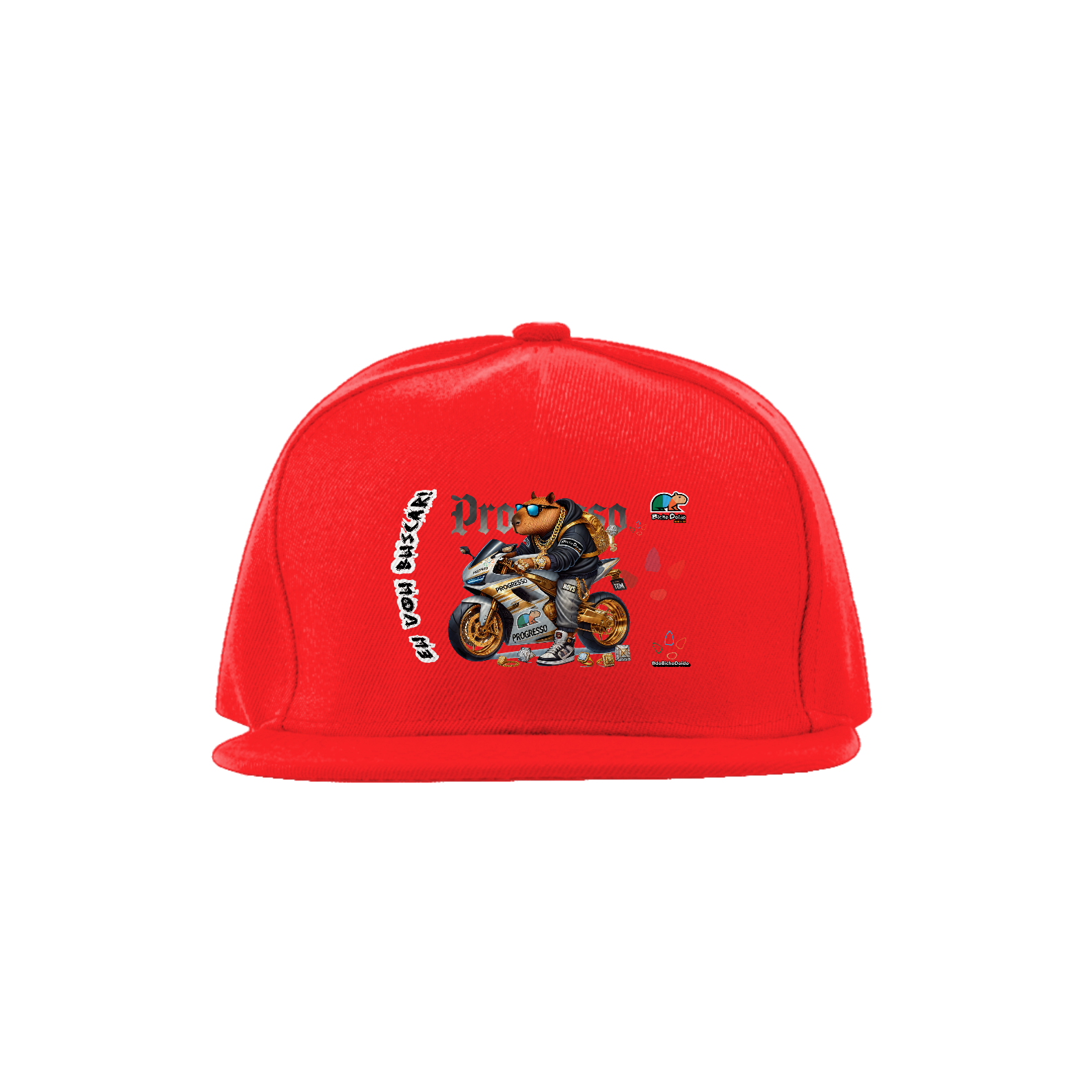 Chega mais na missão com estilo! O Bone Aba Reta da coleção "Eu Vou Buscar" traz a vibe da quebrada com a estampa "De Foguetão Prateado", que representa a capivara mais braba, acelerando no foguetão prateado. Perfeito pra quem curte um rolê com aquele visual chavoso e quer dar aquele salve nas ruas. A aba reta garante aquele fit certinho, enquanto o ajuste perfeito na parte de trás vai te deixar na moral no corre. Feito com material de qualidade, esse boné é na pegada, ideal pra quem não deixa de mostrar a visão e seguir com muita atitude.