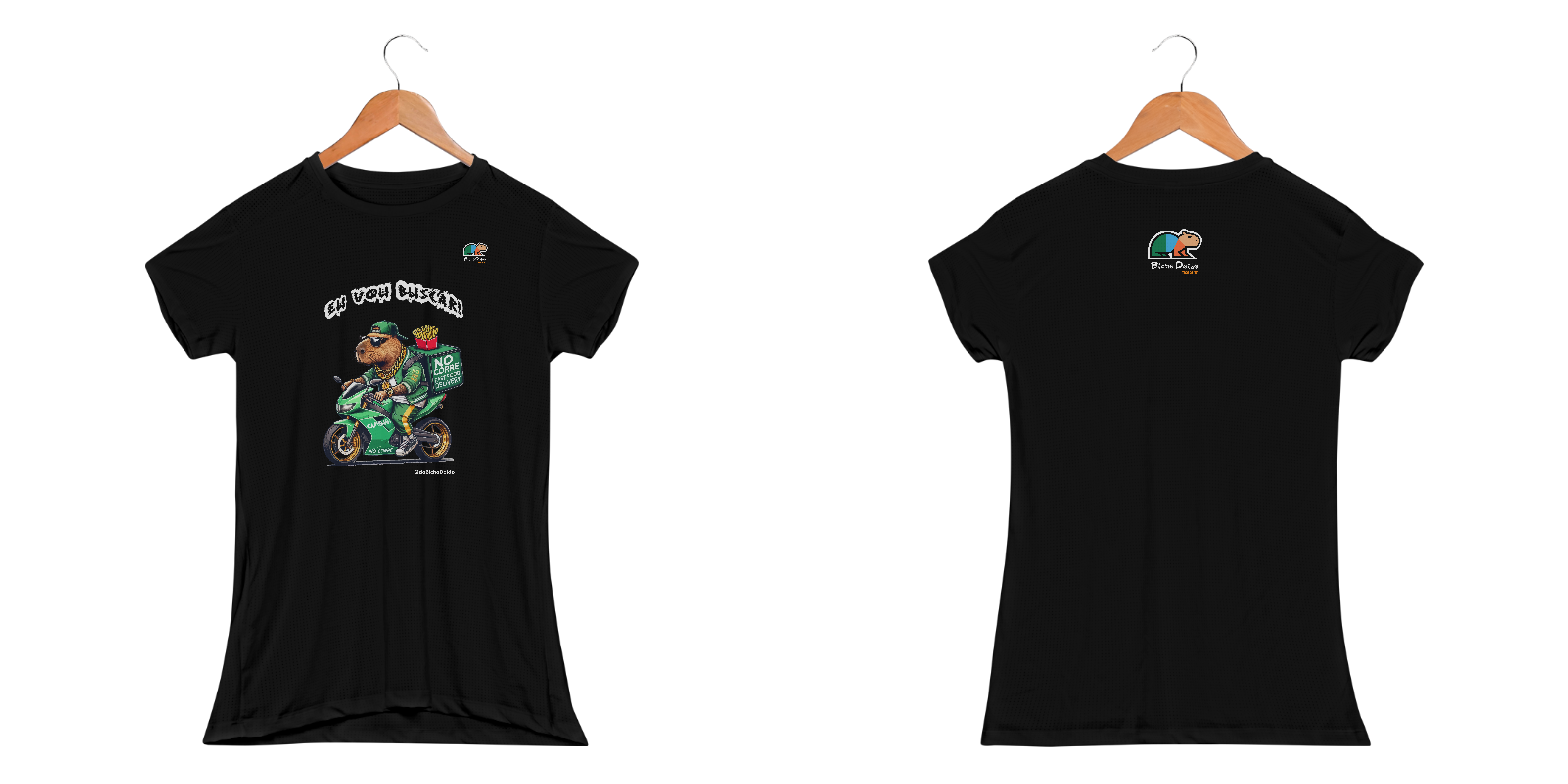 A estampa com a capivara no grau, motorizada, mostra que o trampo é firme e a vibe é quebrada pura.