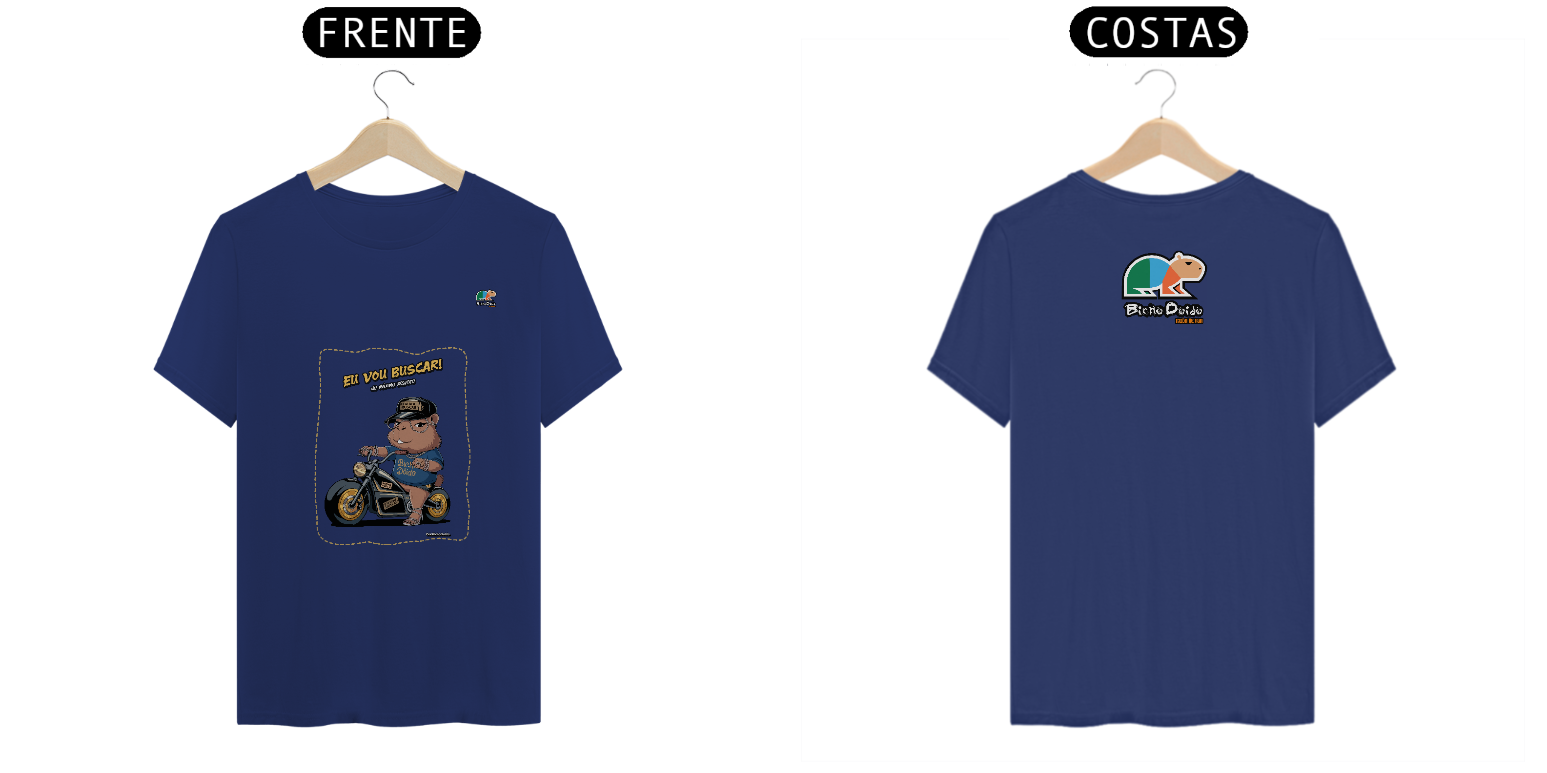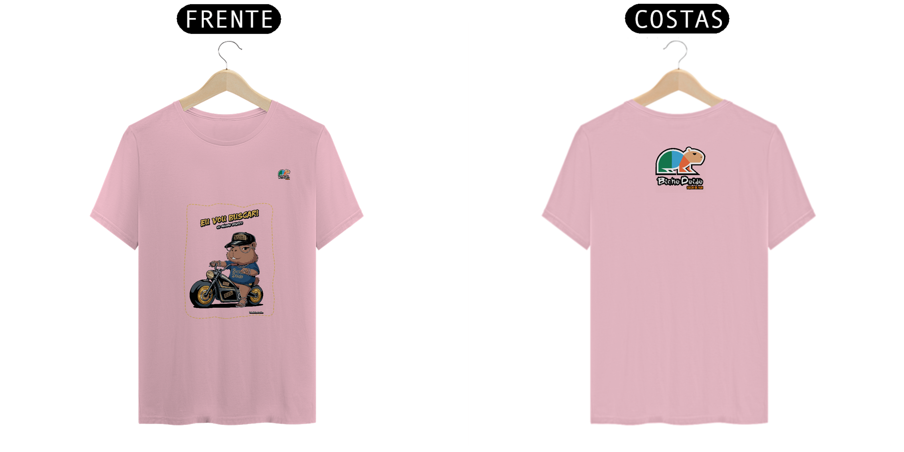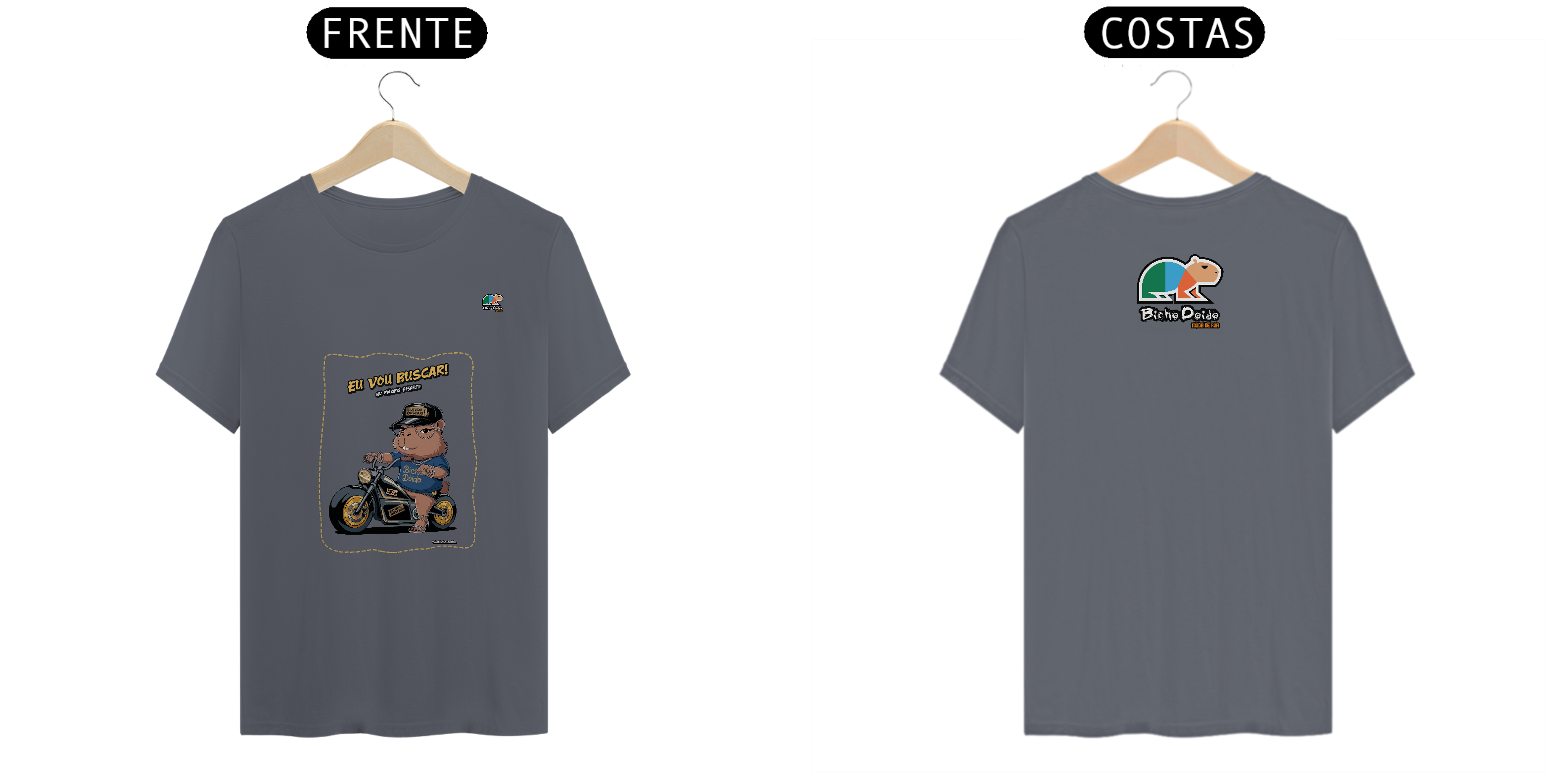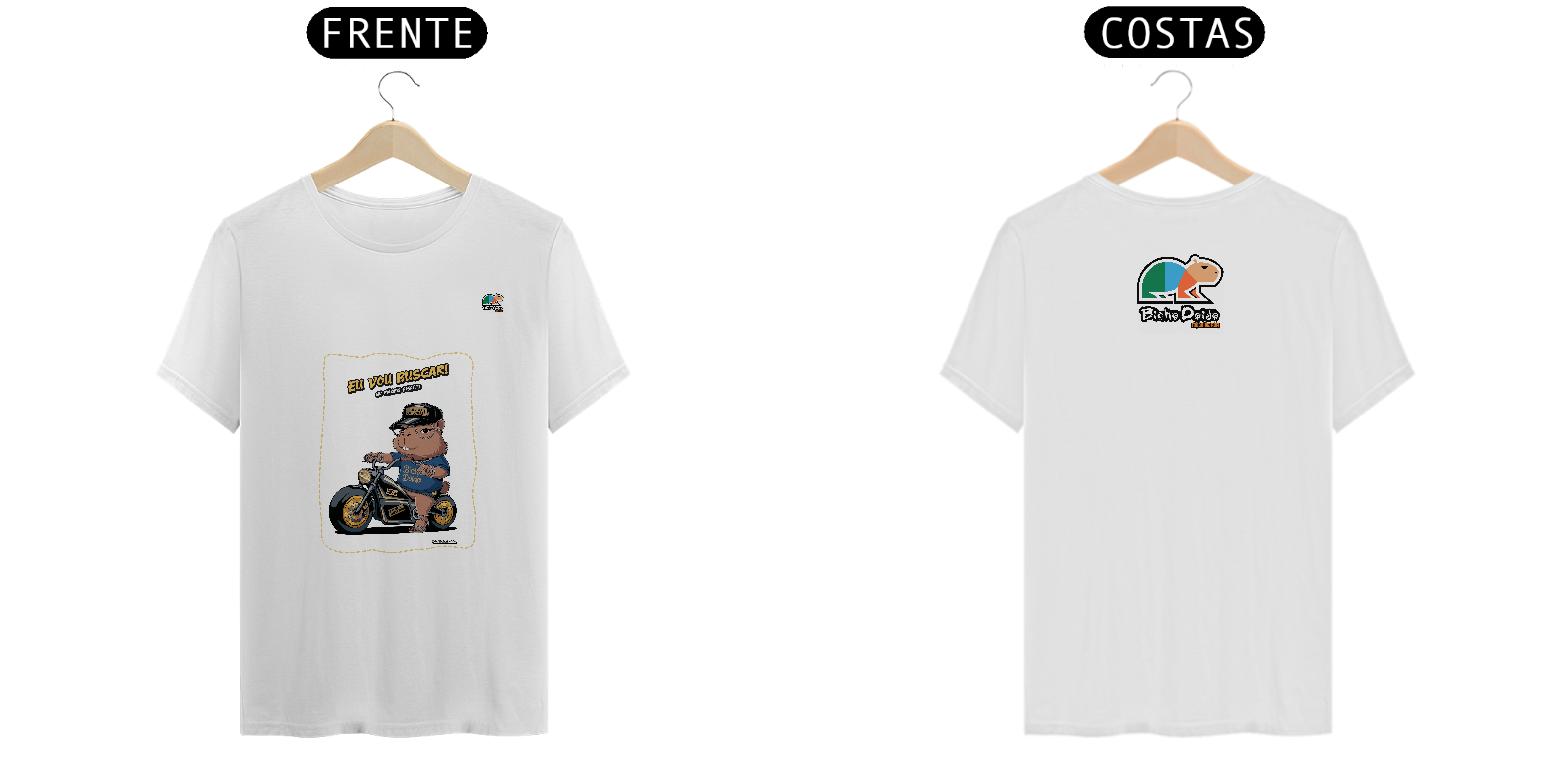 Camiseta Pima “No Pique da Estradeira” da Bicho Doido traz nossa capivara estilosa, montada na motoca cromada, pronta pra qualquer corre.