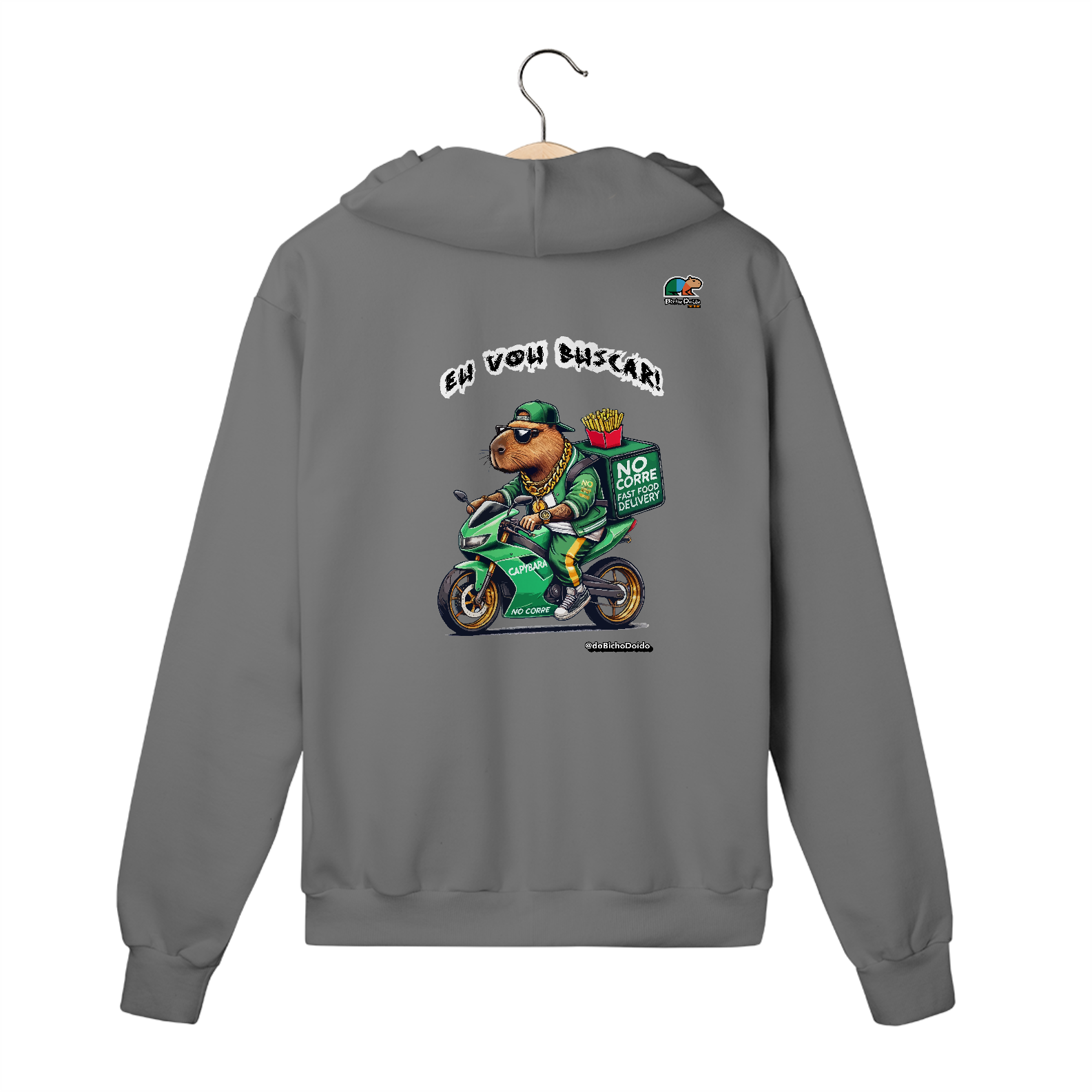 Moletom com Zíper "Eu Vou Buscar" - No Corre do Delivery | Bicho Doido