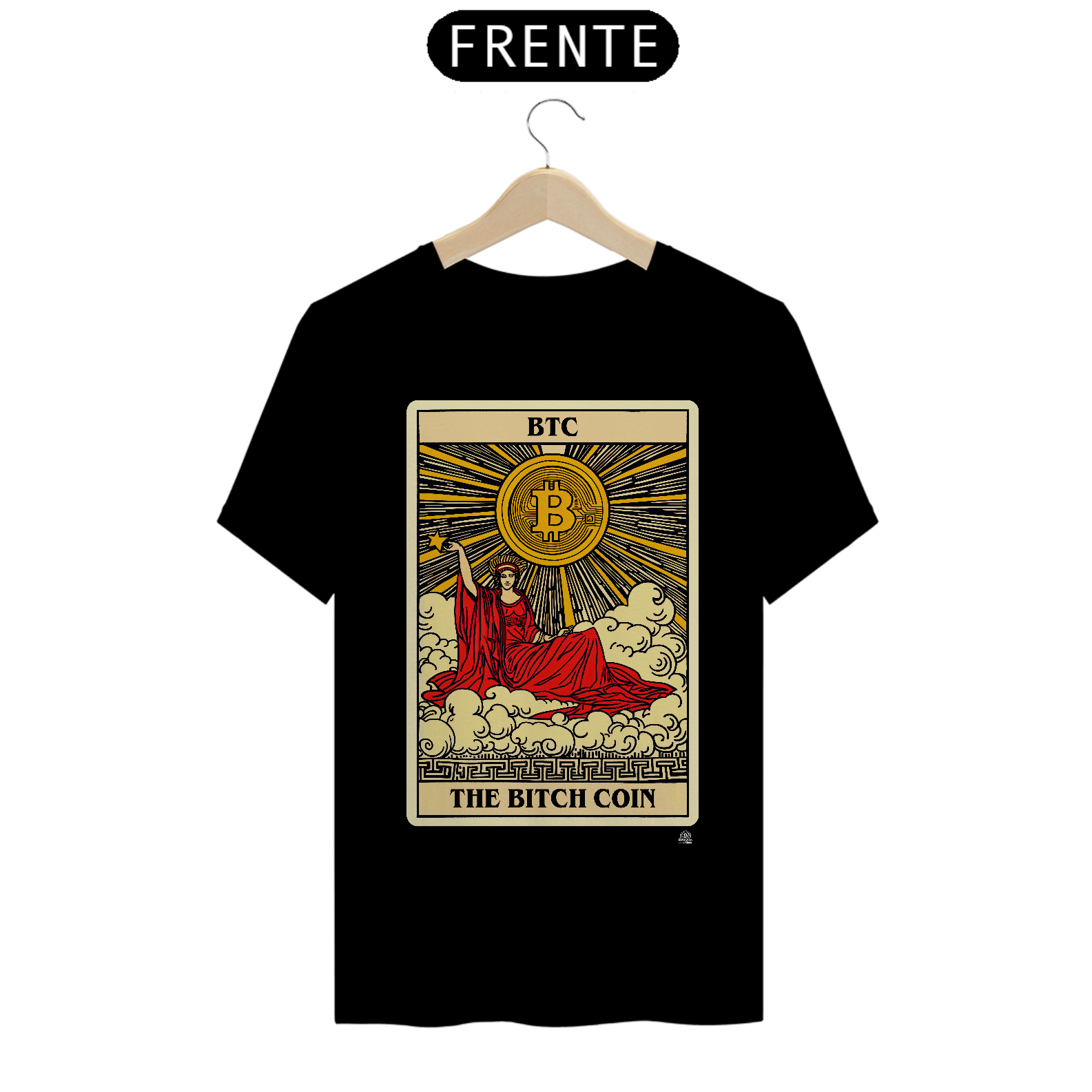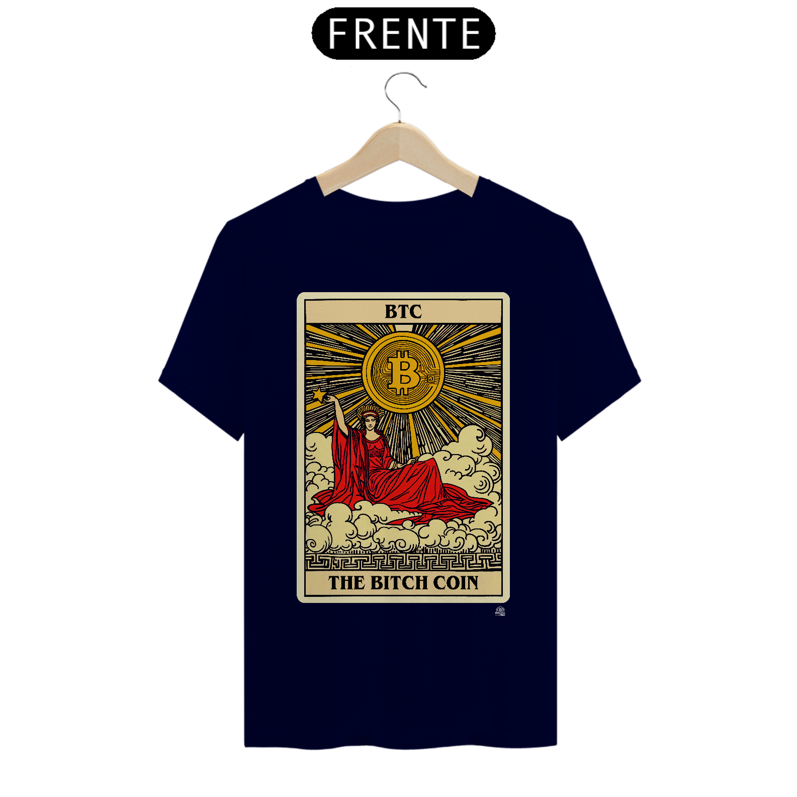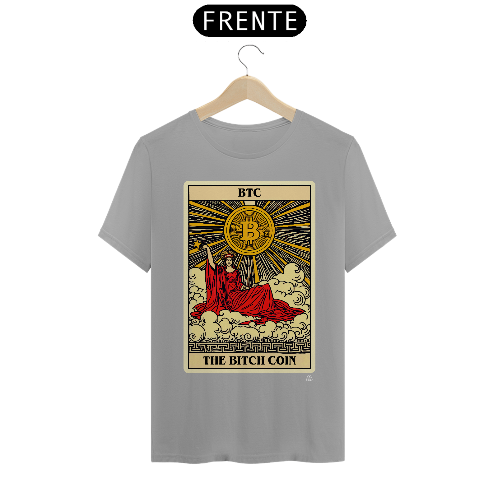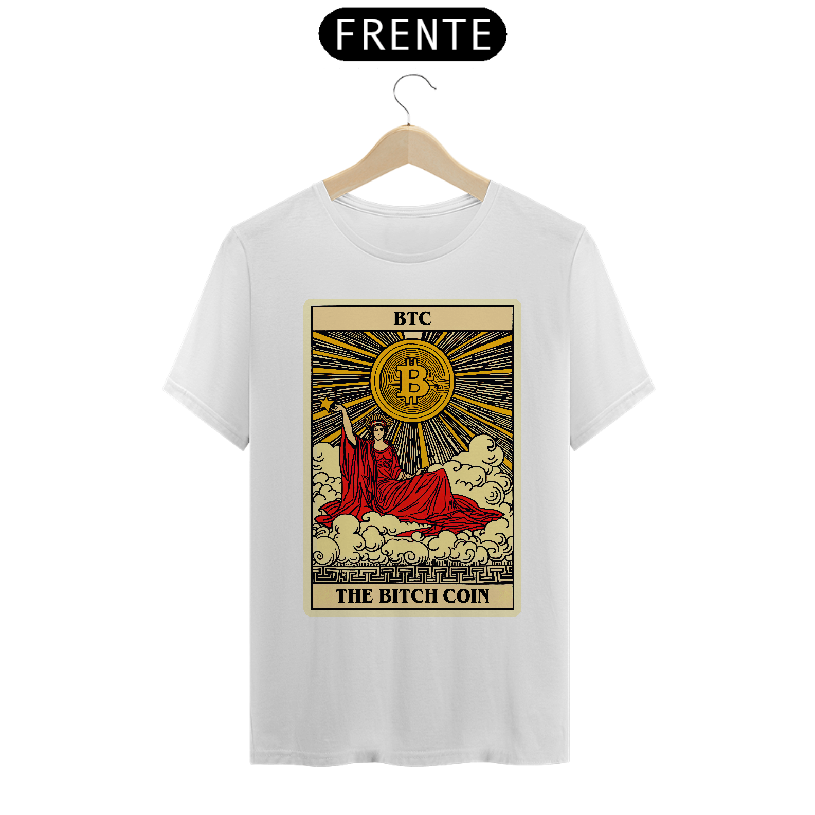 Feita para entusiastas que apreciam uma abordagem artística e irônica, a camiseta 'The Bitch Coin' combina iconografia clássica com a modernidade do mundo das moedas digitais. Destaque-se na multidão com esta camiseta vibrante, um símbolo de inovação e irreverência. Ideal para quem acompanha o mercado de criptomoedas e deseja expressar seu estilo de vida cripto com confiança e originalidade.