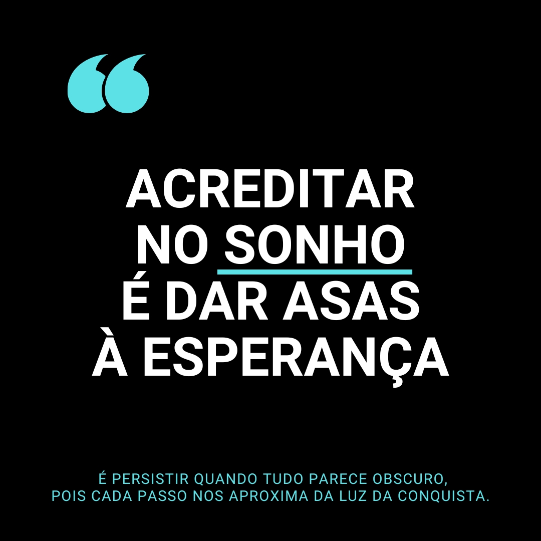 Vista a Camiseta Black. Acreditar no Sonho é Dar Asas à Esperança e lembre-se de que seus sonhos são o combustível da sua esperança.